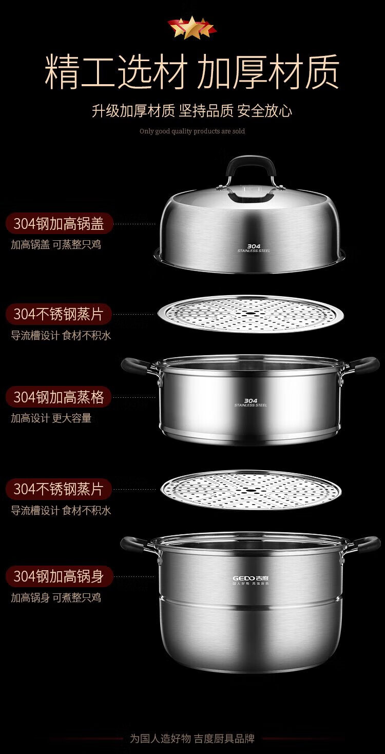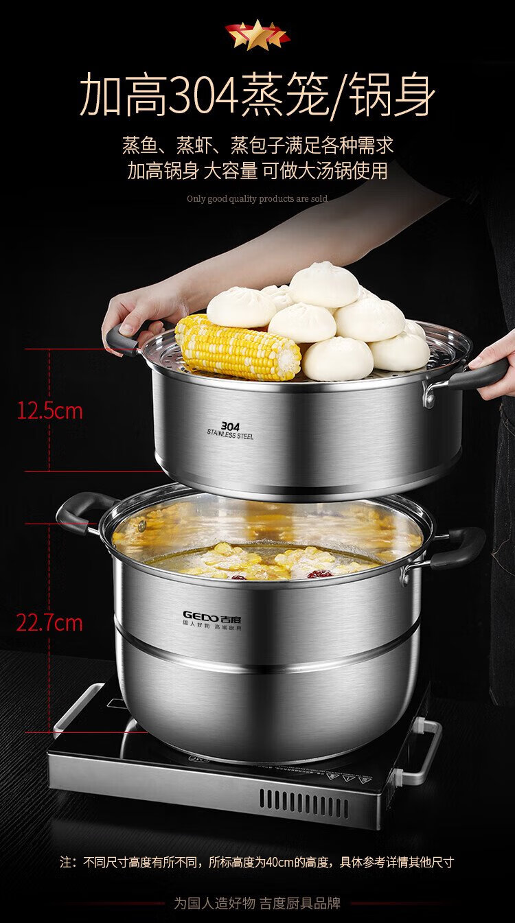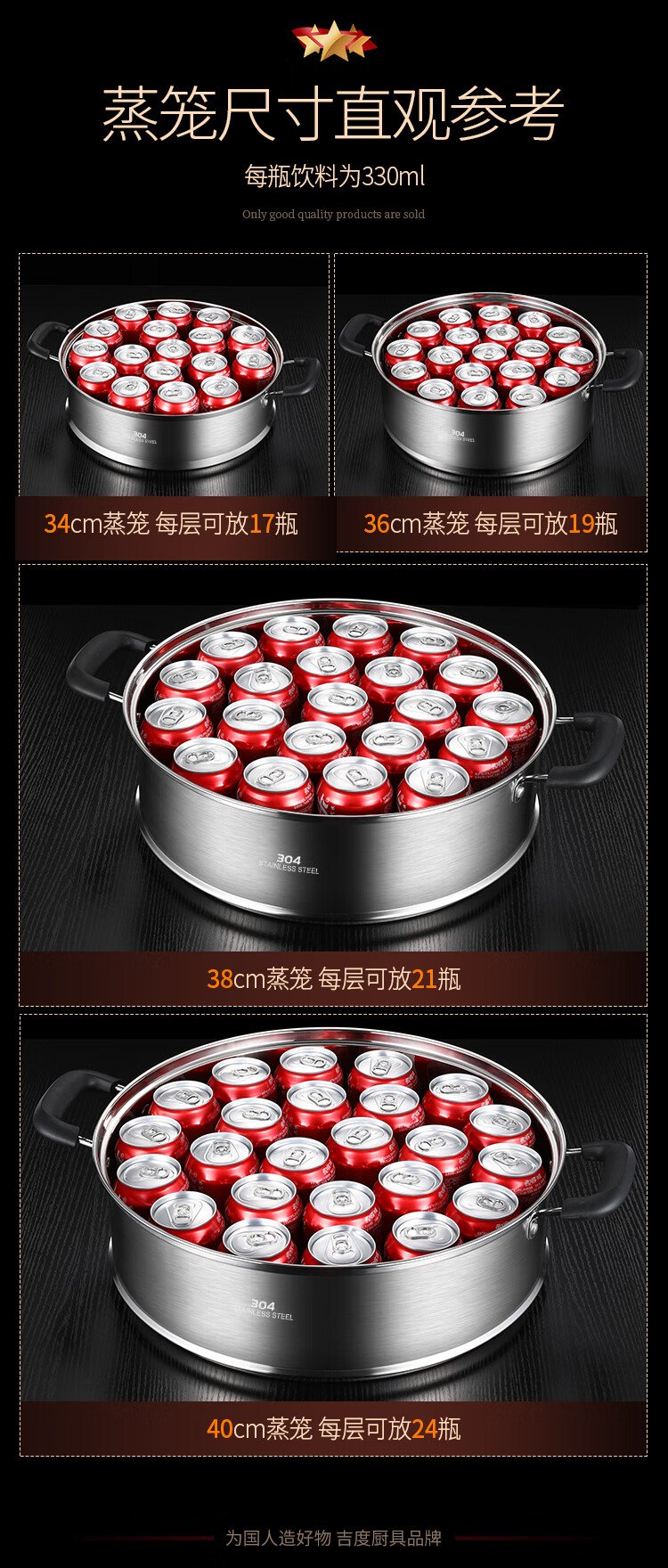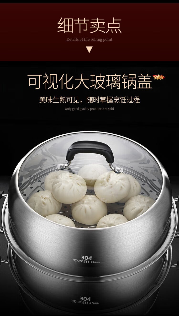 Jidu steamer 304 stainless steel household thickened three-layer multi-layer large capacity commercial steamer drawer induction cooker gas universal Tang-304 steamer double layer (for 6-8 people) 32cm