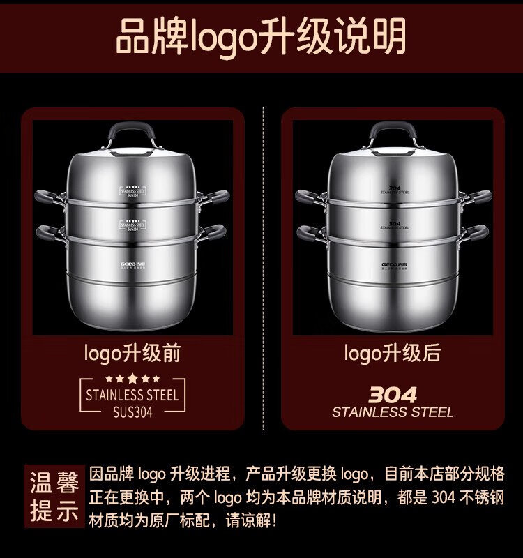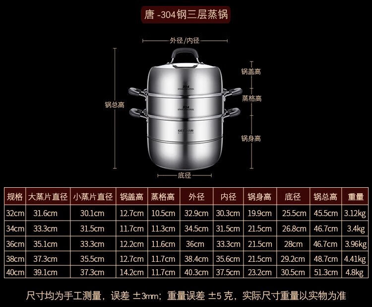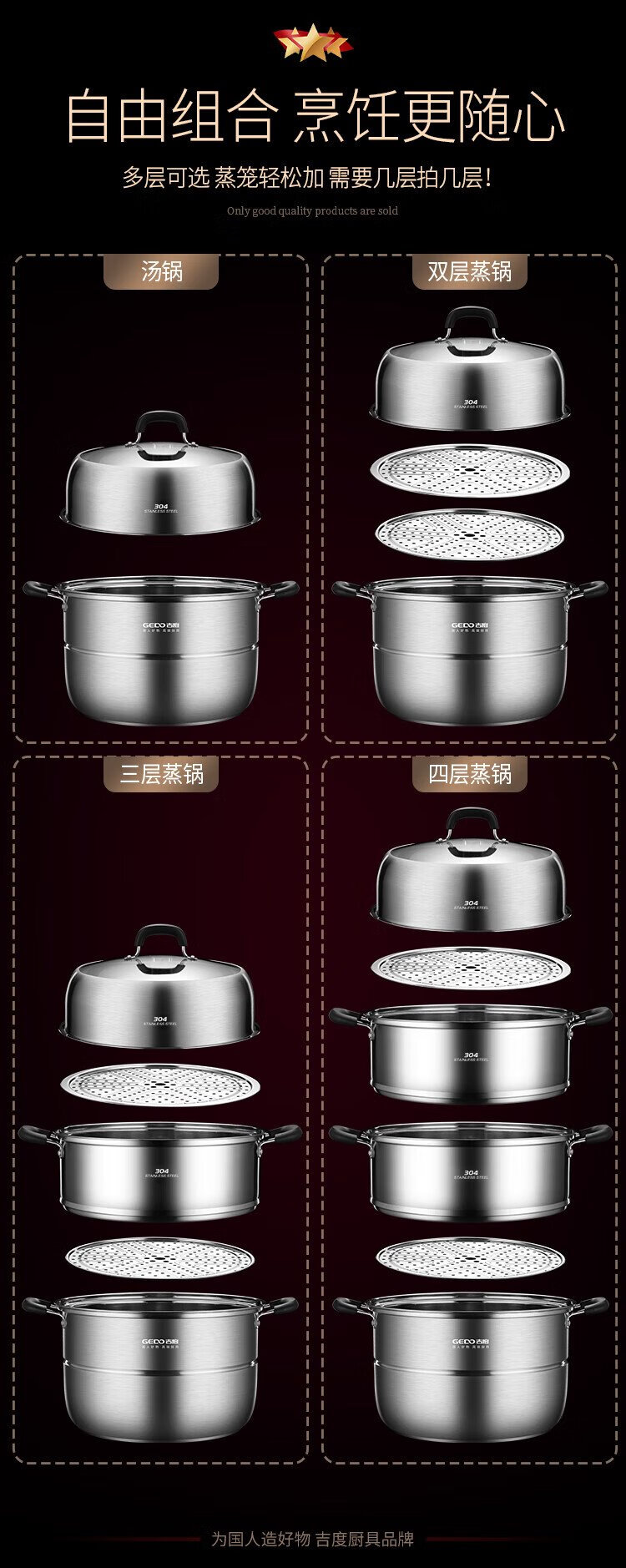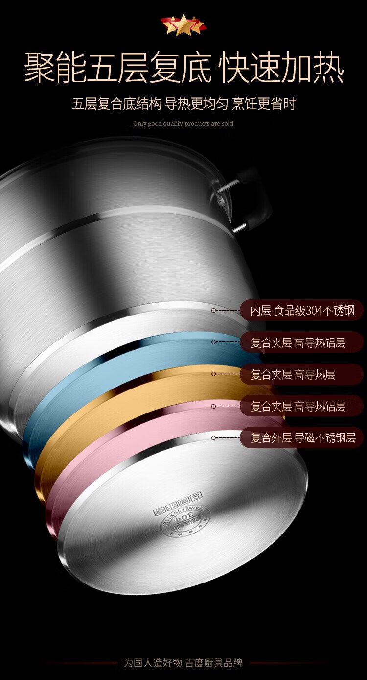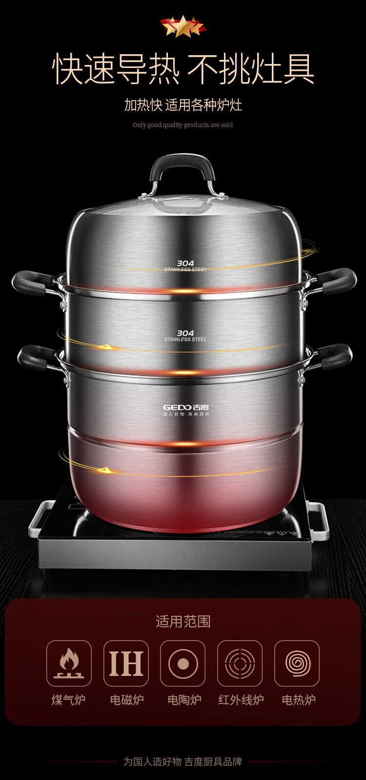 Jidu steamer 304 stainless steel household thickened three-layer multi-layer large capacity commercial steamer drawer induction cooker gas universal Tang-304 steamer double layer (for 6-8 people) 32cm
