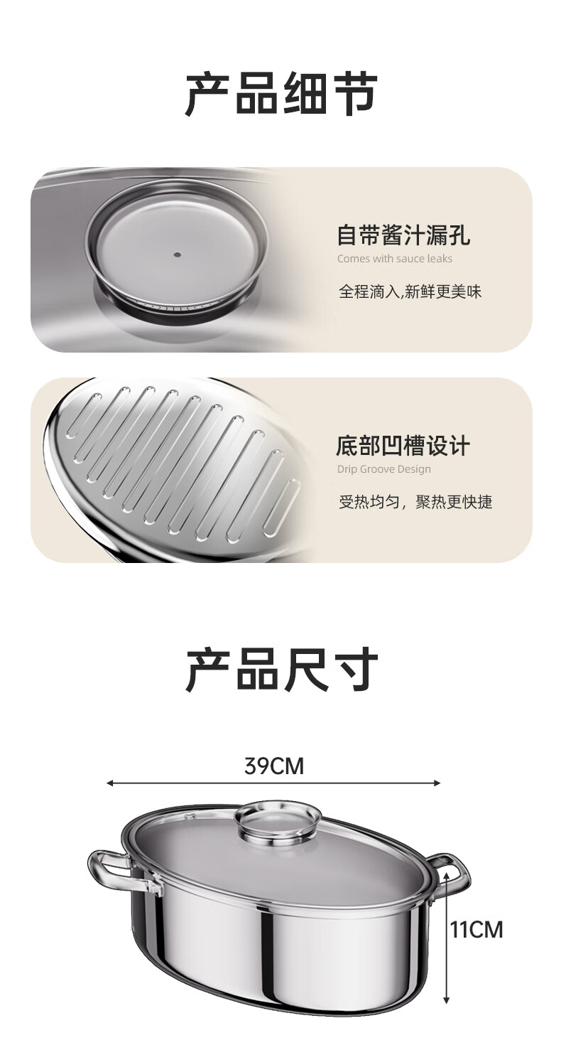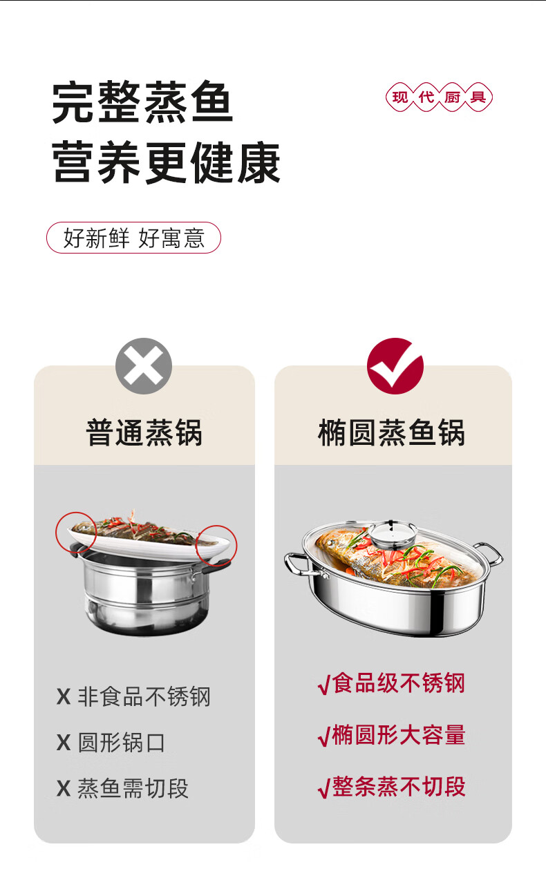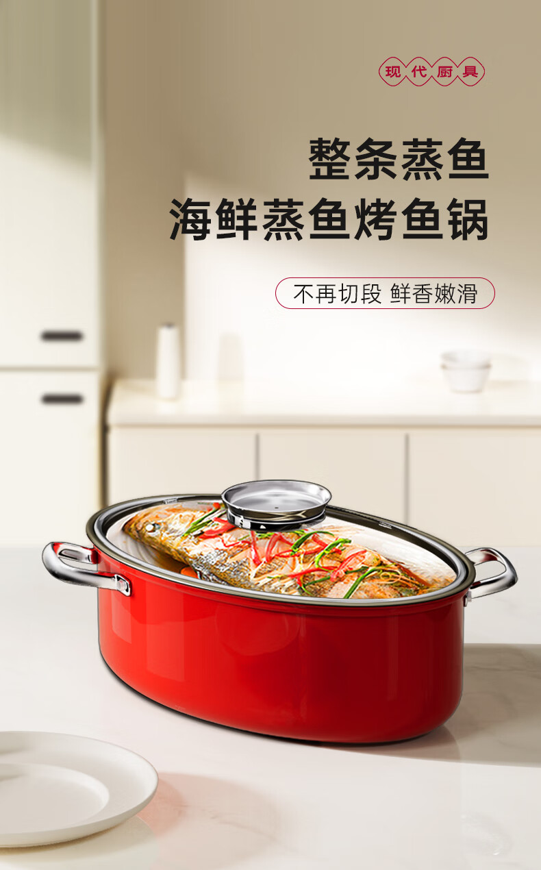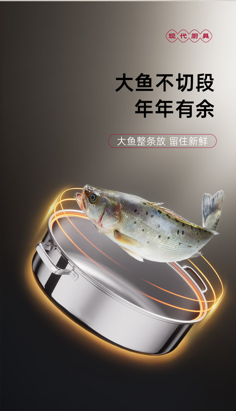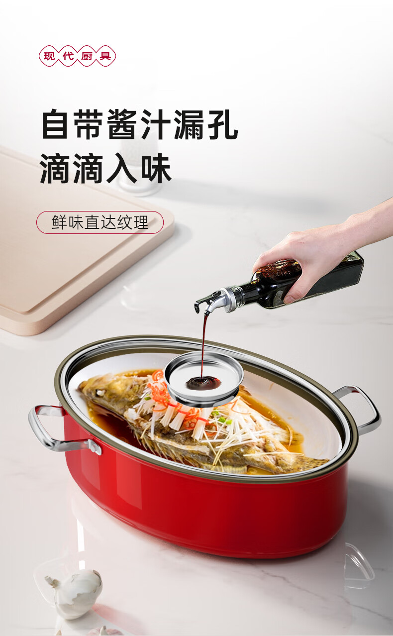 Spicy Girl Steamed Fish Pot 304 Stainless Steel Fish Steaming Artifact Large Elongated Oval Steamer Induction Cooker Gas Stove Seafood Pot Chinese Red Steam Rack + Clamp + Plate 1 Layer 39cm
