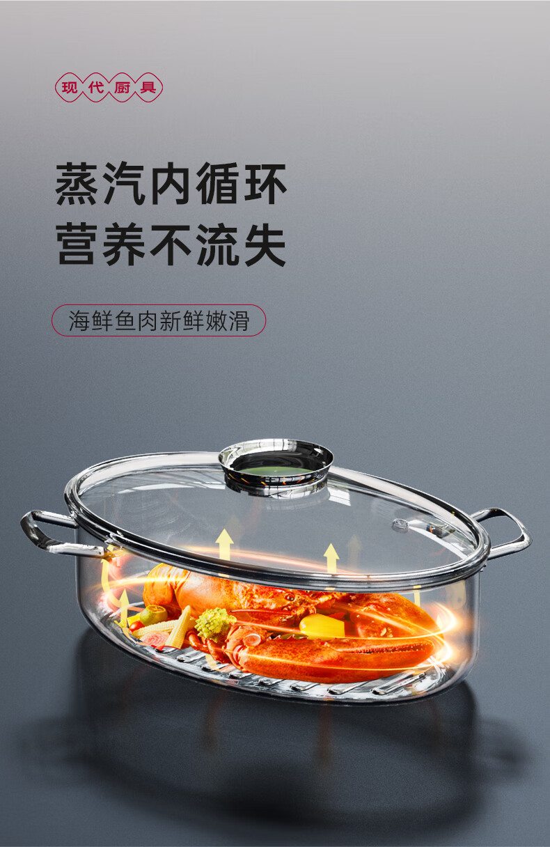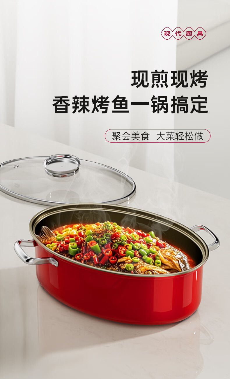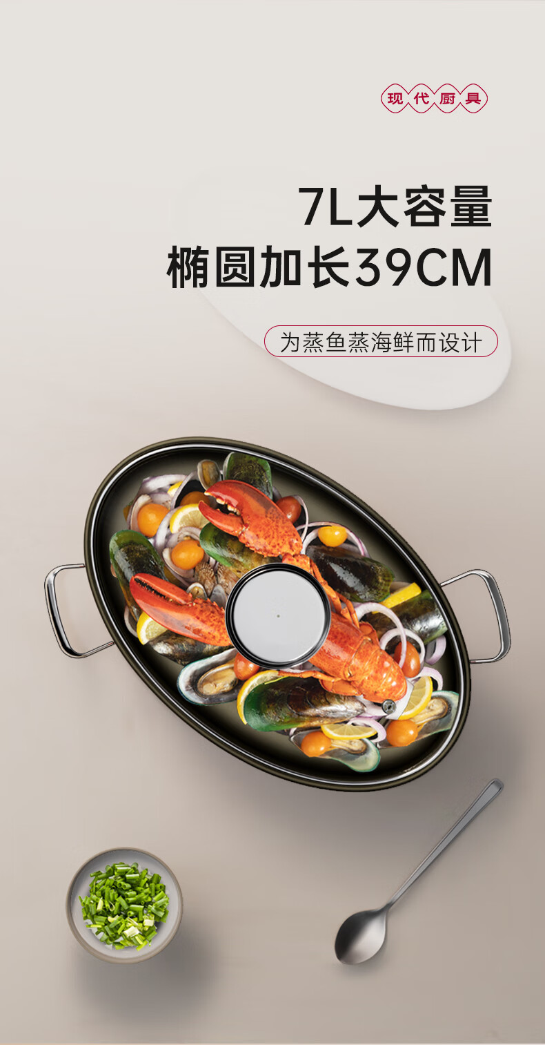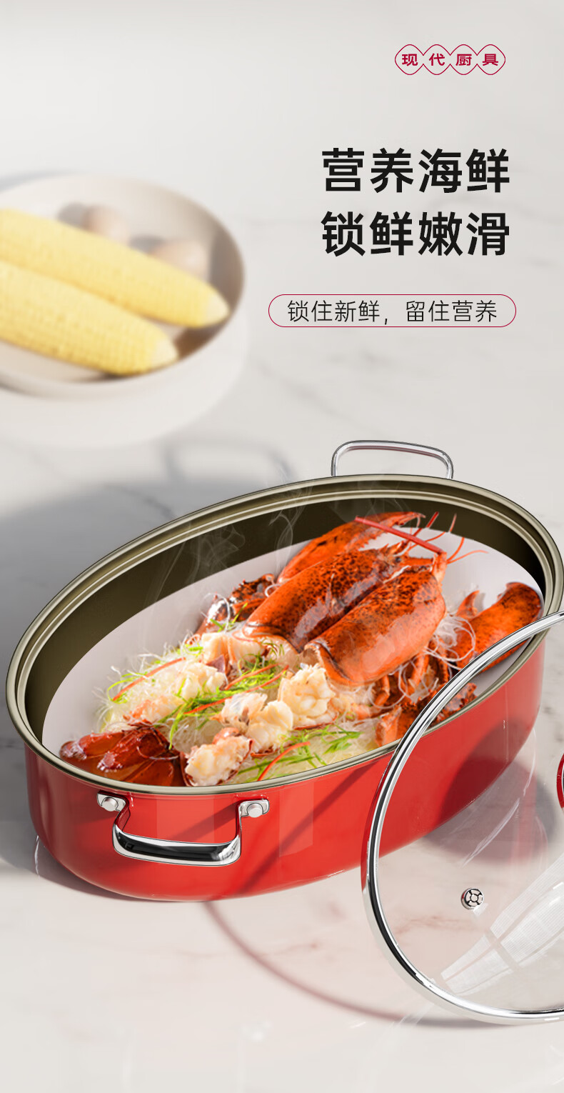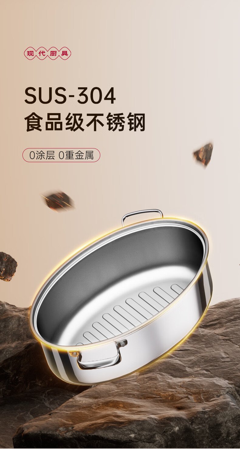 Spicy Girl Steamed Fish Pot 304 Stainless Steel Fish Steaming Artifact Large Elongated Oval Steamer Induction Cooker Gas Stove Seafood Pot Chinese Red Steam Rack + Clamp + Plate 1 Layer 39cm
