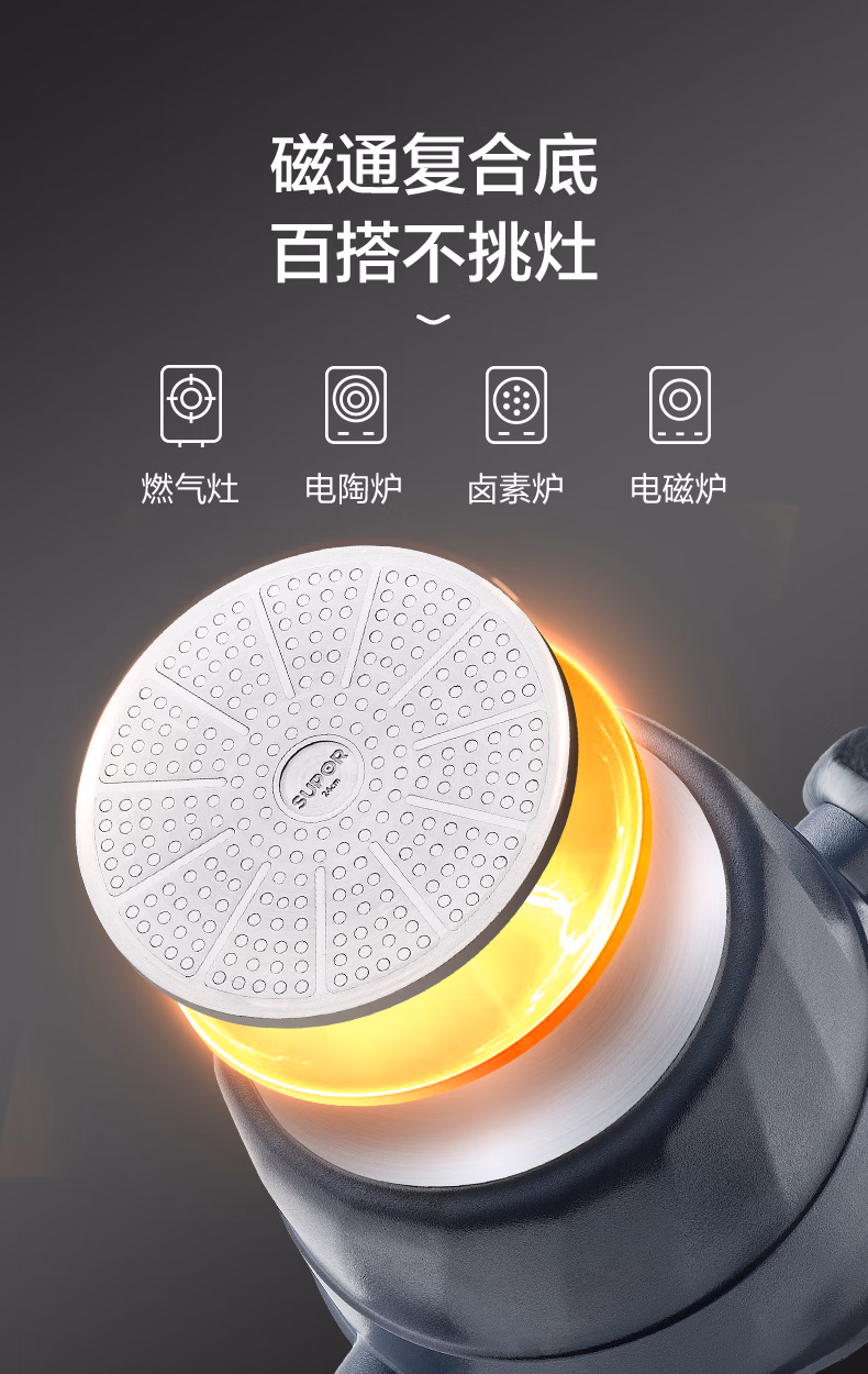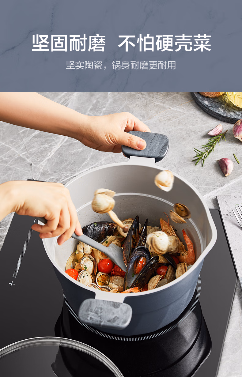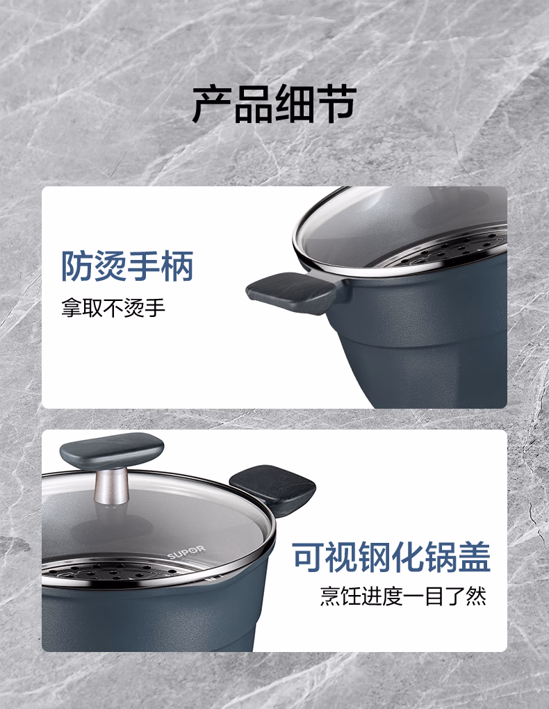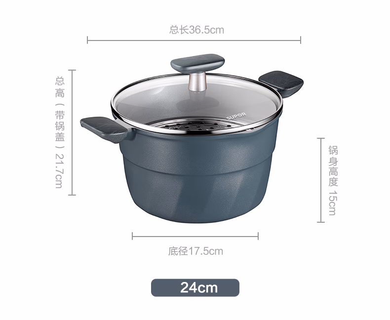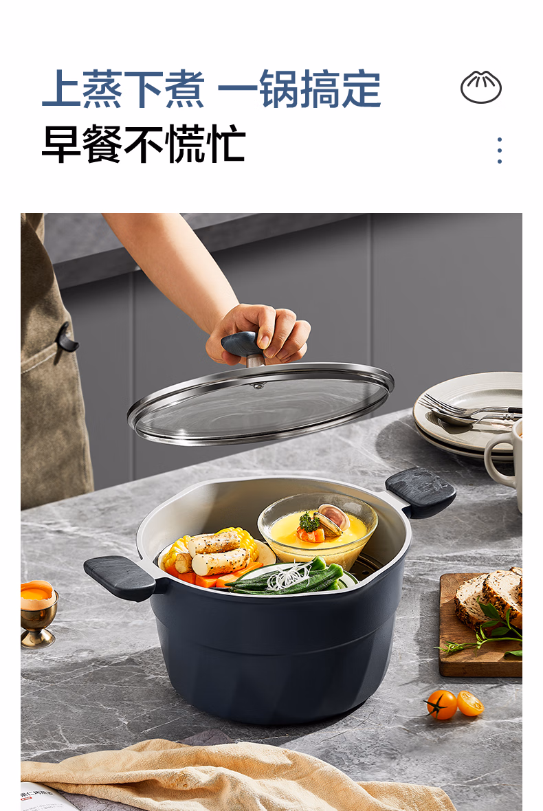 Supor steamer ceramic non-stick pot soup pot household cooking pot stew pot binaural stew pot star stone non-stick ceramic crystal multi-purpose soup pot 22CM with steaming grate