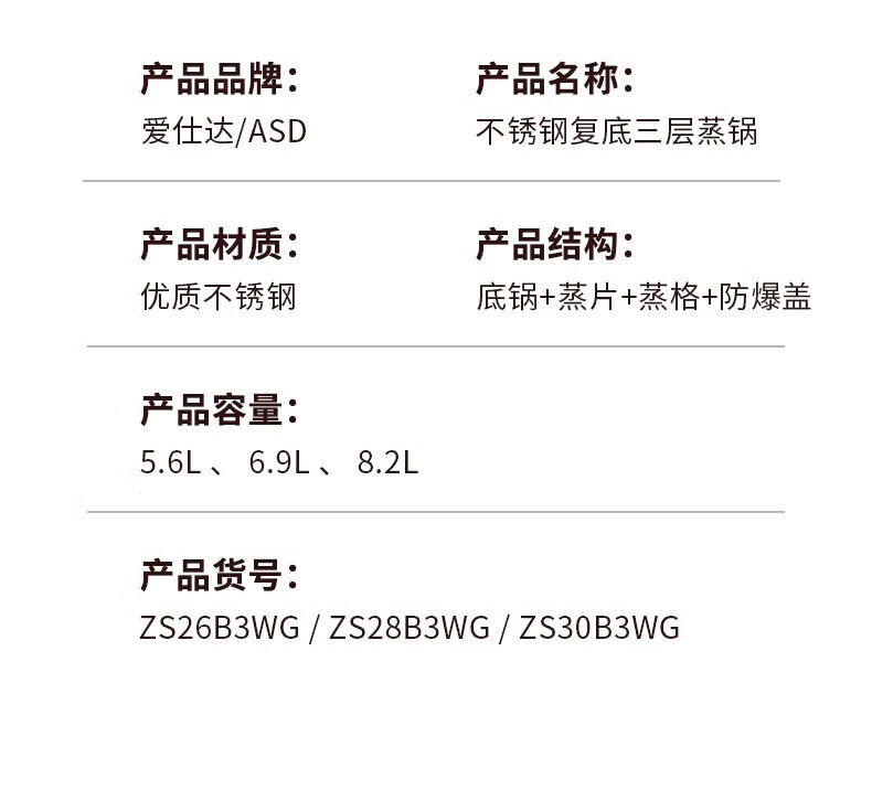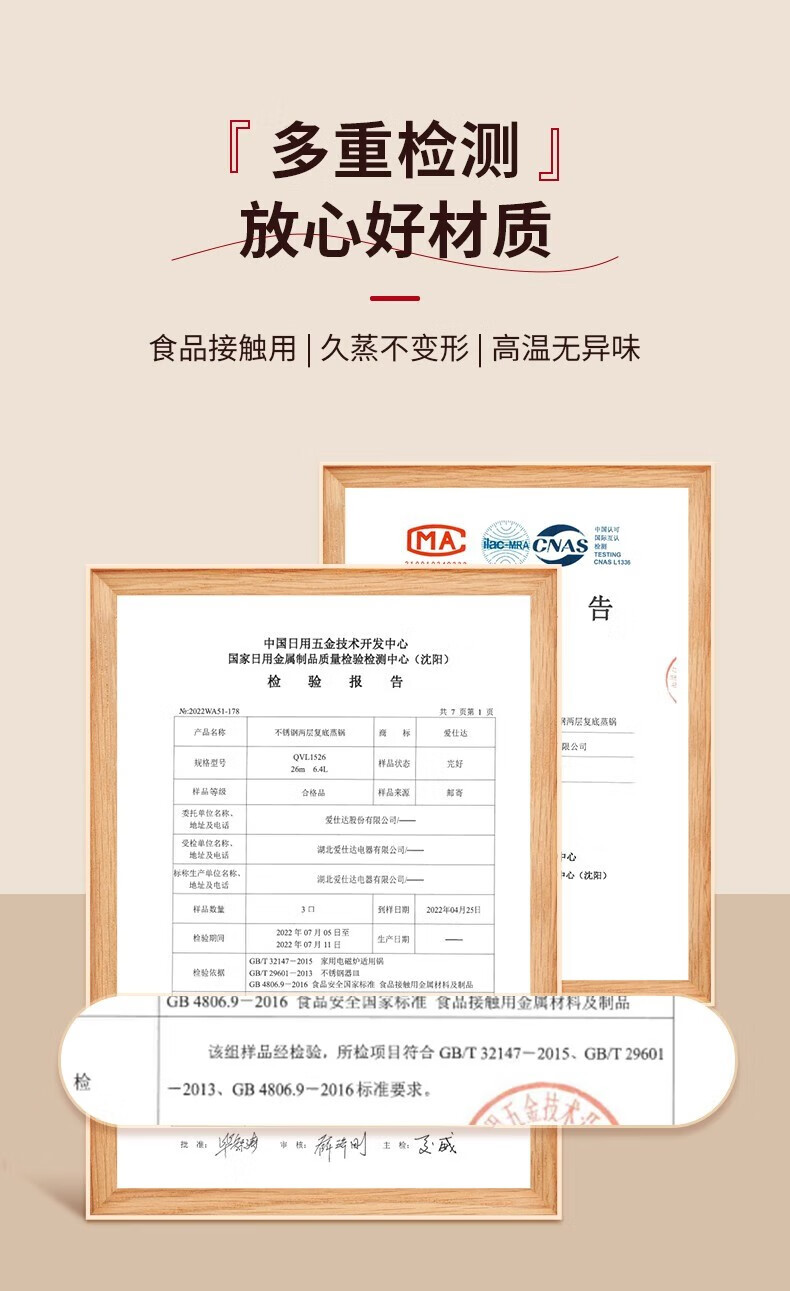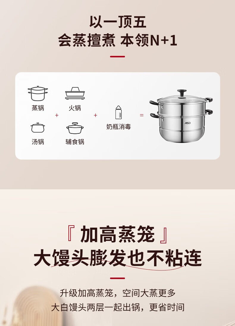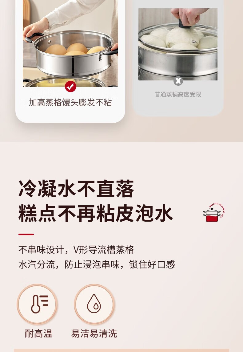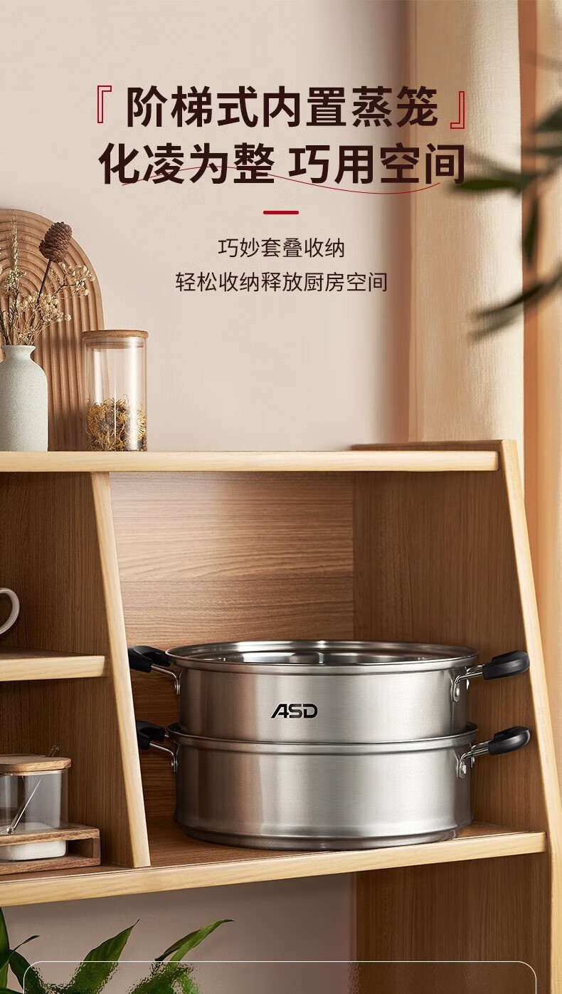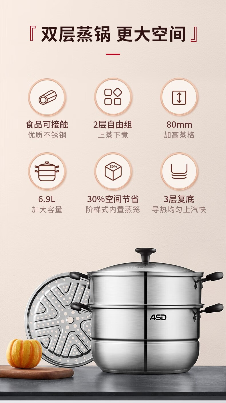 ASD Steamer Stainless Steel Steamer Thickened Bottom with Steamer Grate Universal Induction Cooker Gas Open Flame Three-layer Steamer (Half Glass Cover) 26cm