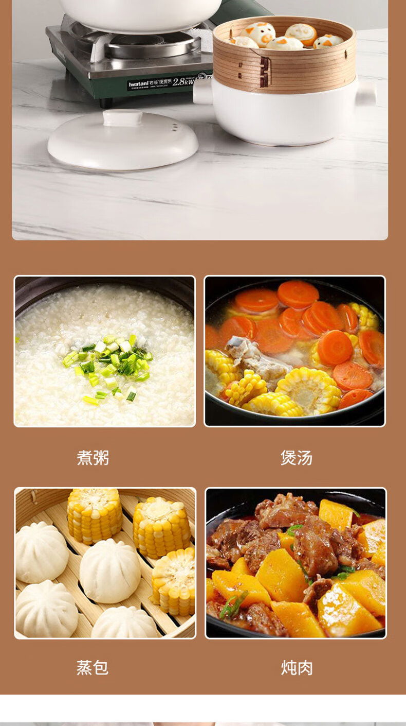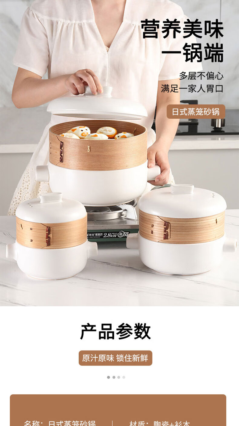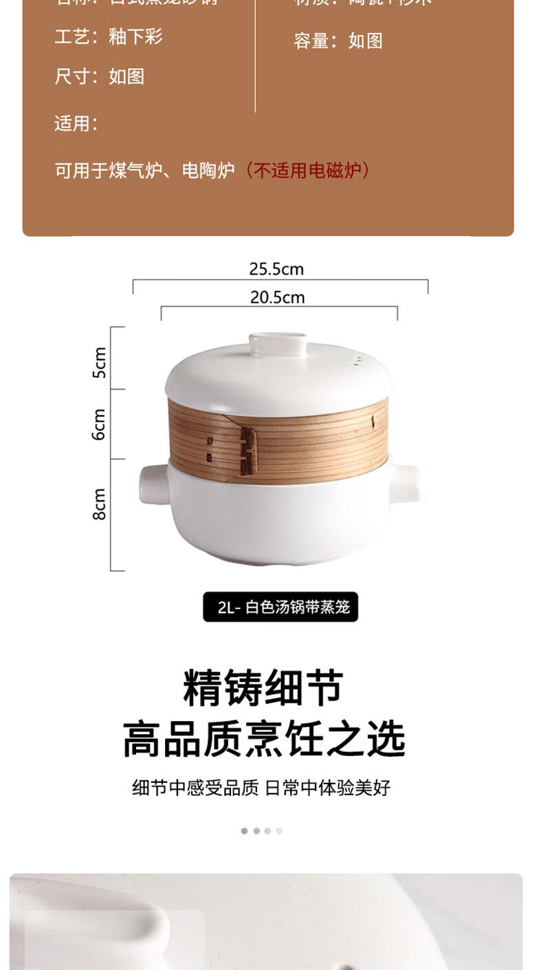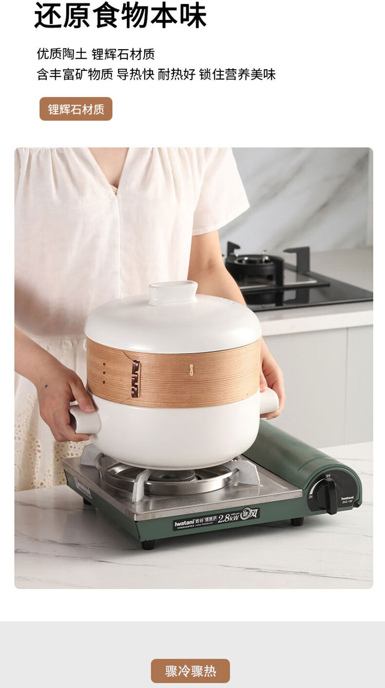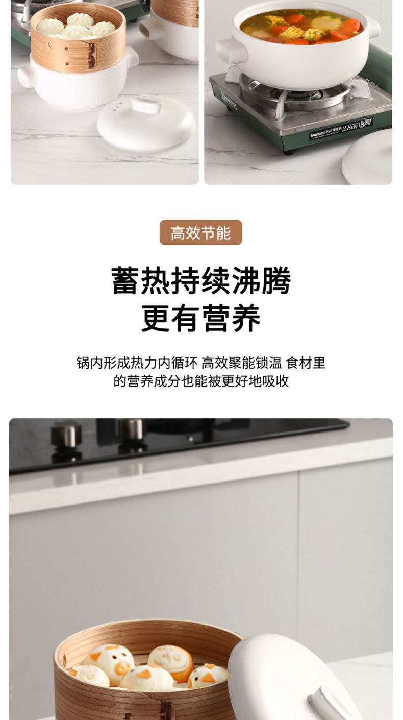 Fengshang Steamer Pot Ceramic Pot Steamer Integrated Multifunctional Pot Steamer Home Breakfast Steamed Egg Soup Double Layer 2L White + Steamer 2 Layers 20.5cm