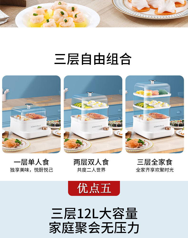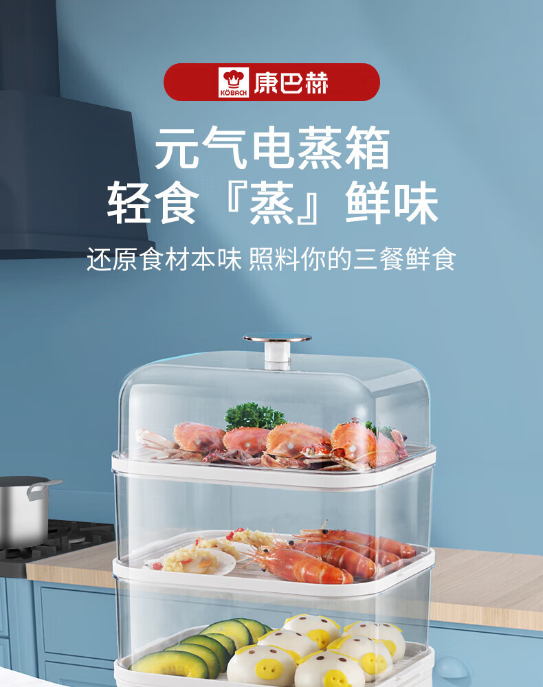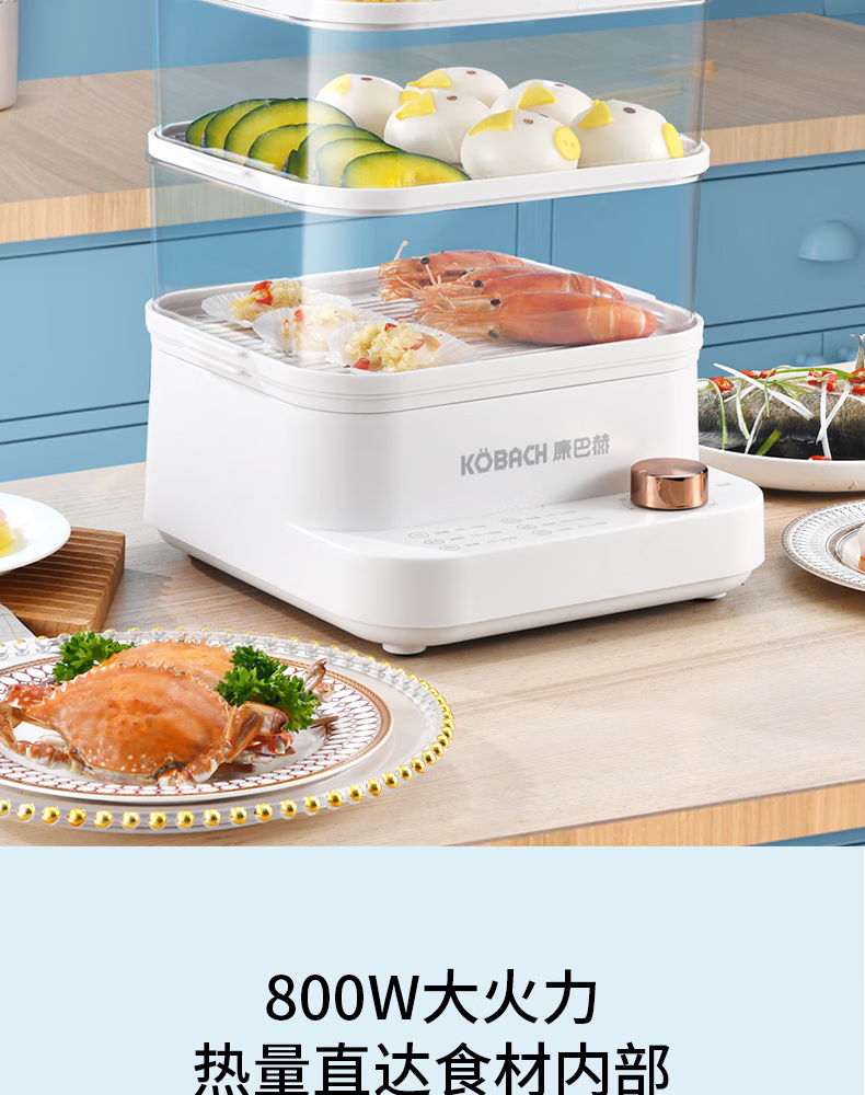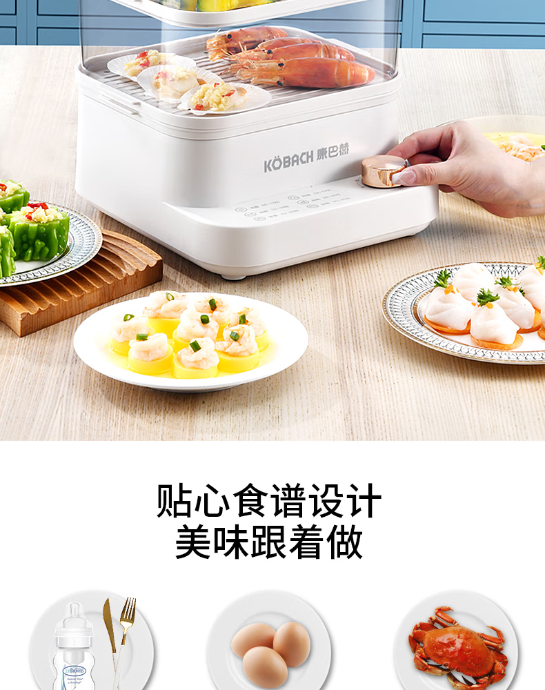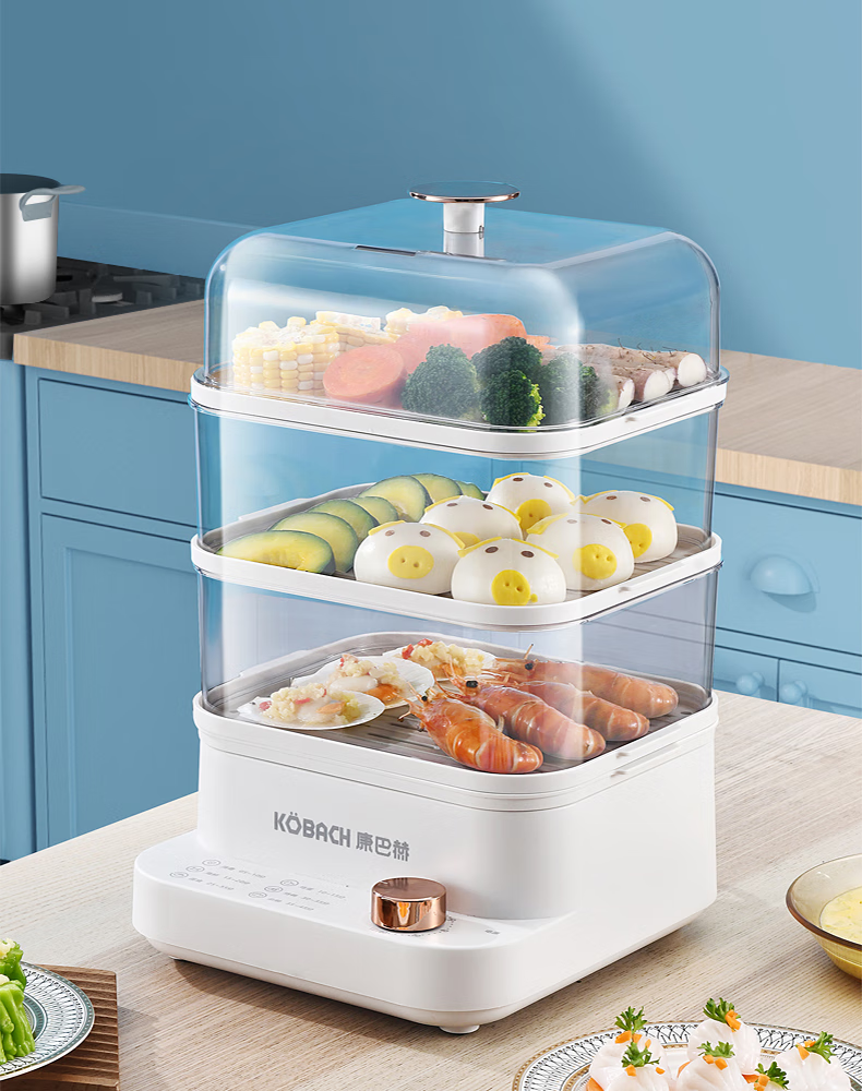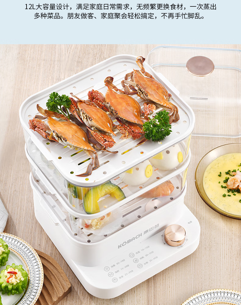 Konbach electric steamer 12L large capacity anti-dry design food grade material separated anti-odor pot second heat anti-dry electric steamer beige 25cm