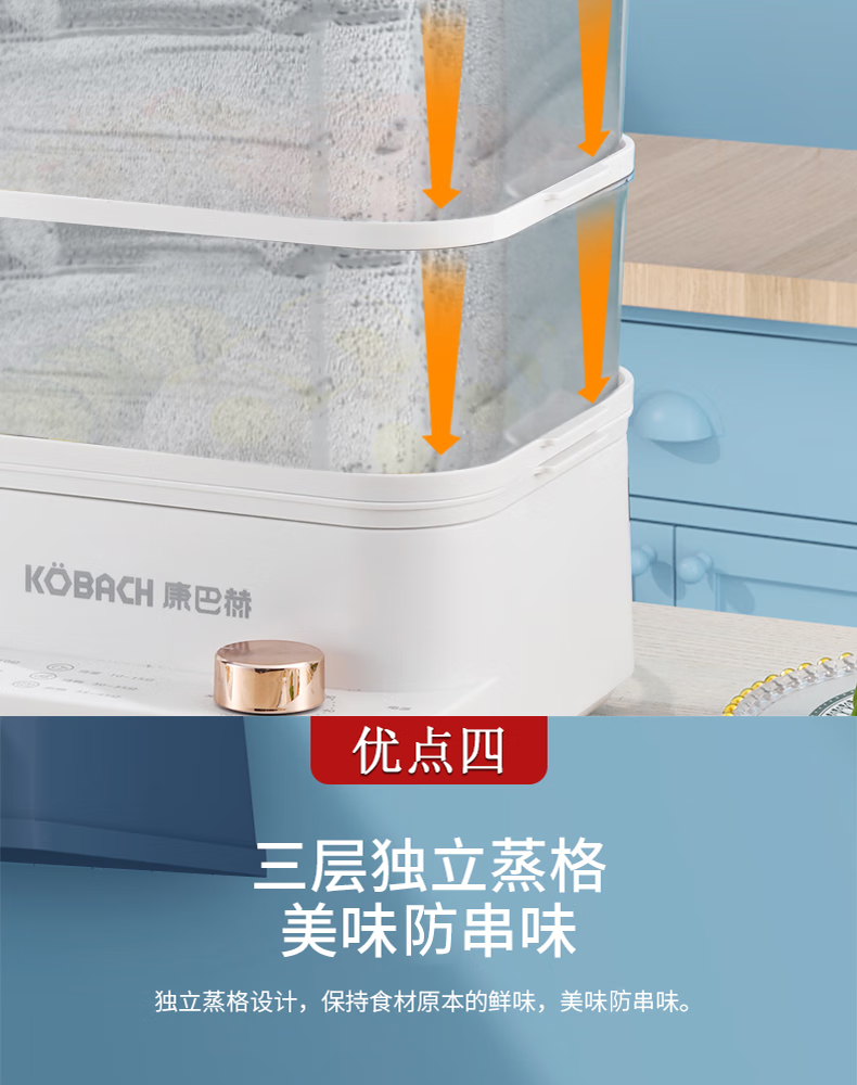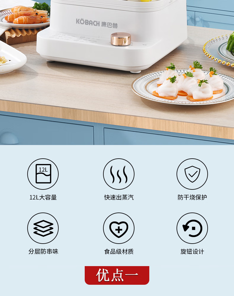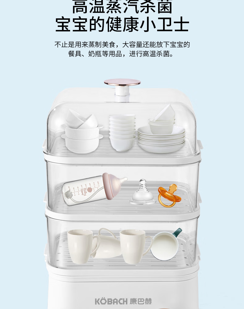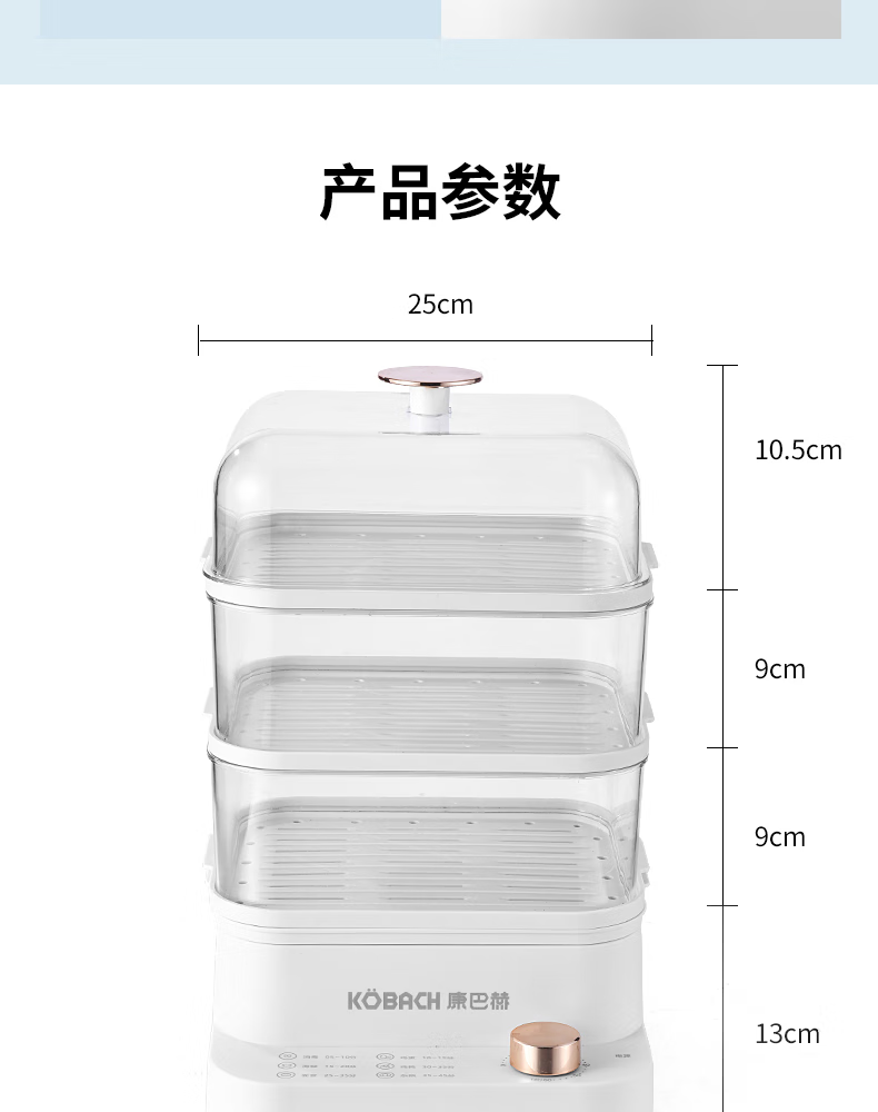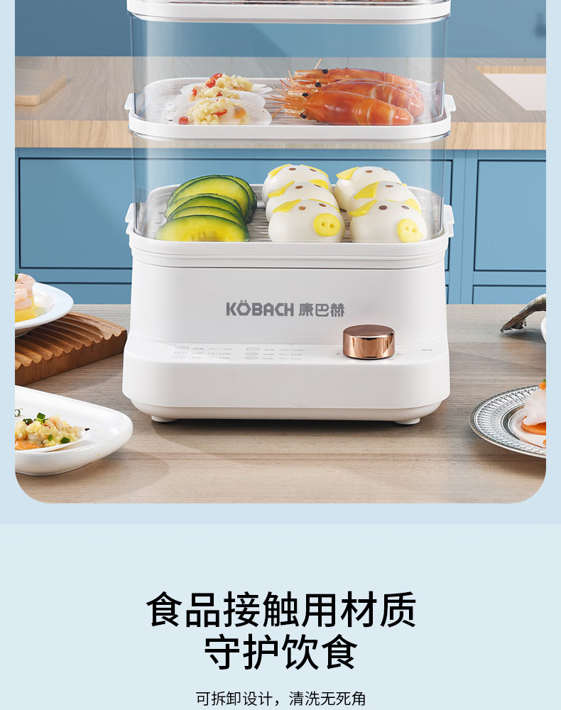 Konbach electric steamer 12L large capacity anti-dry design food grade material separated anti-odor pot second heat anti-dry electric steamer beige 25cm