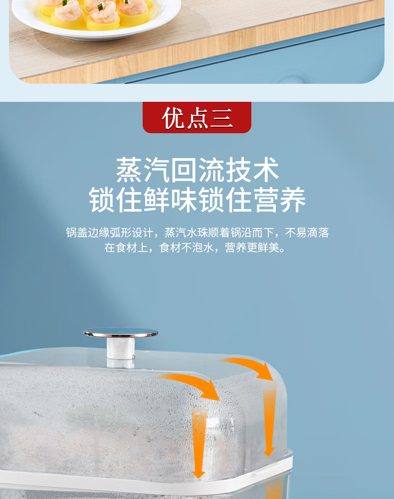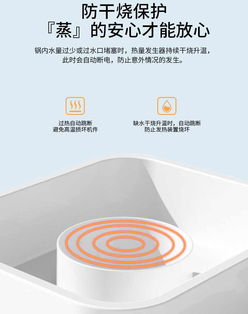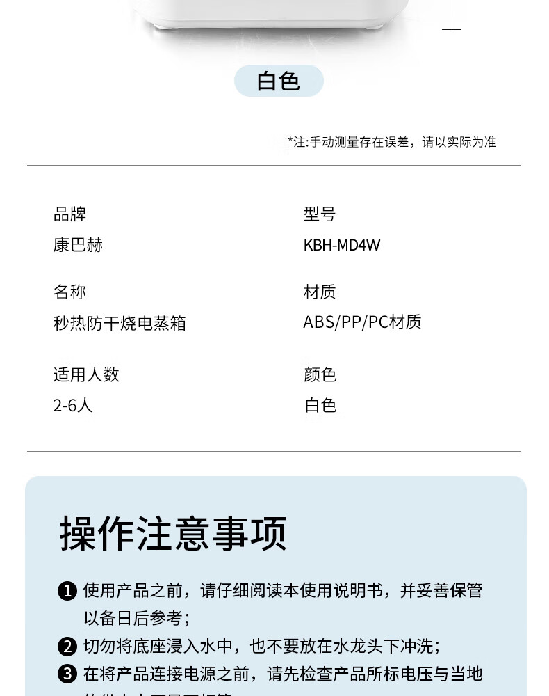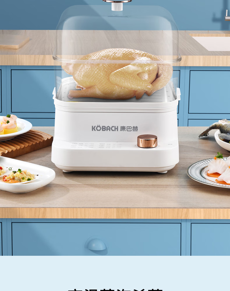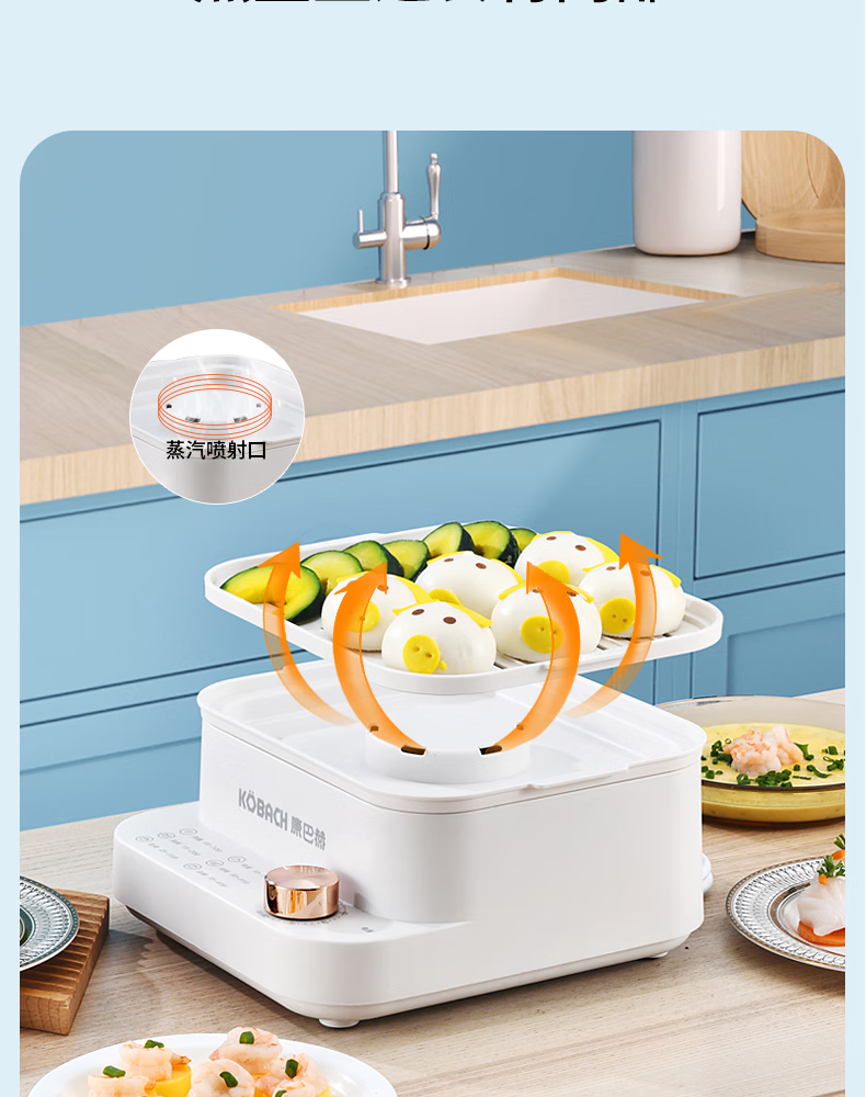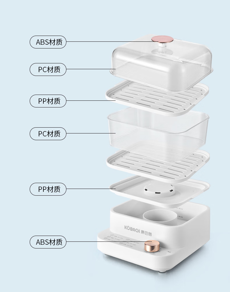 Konbach electric steamer 12L large capacity anti-dry design food grade material separated anti-odor pot second heat anti-dry electric steamer beige 25cm