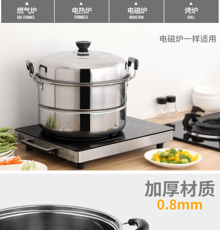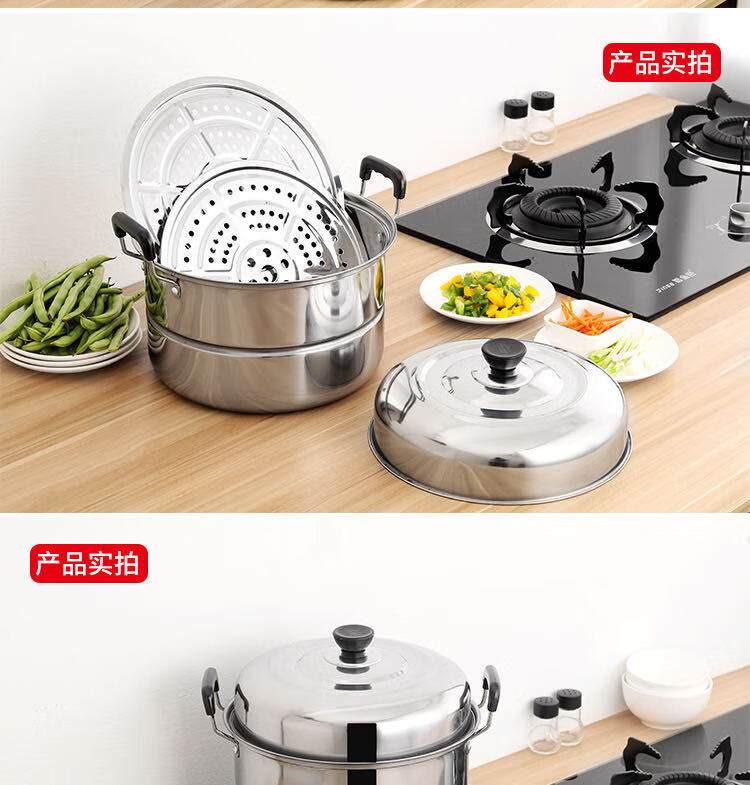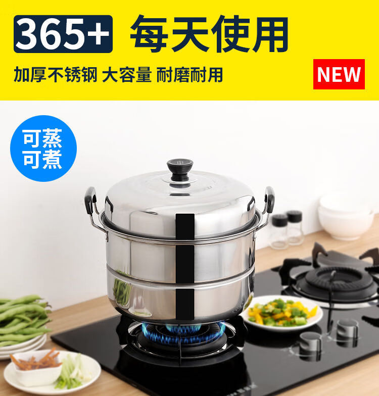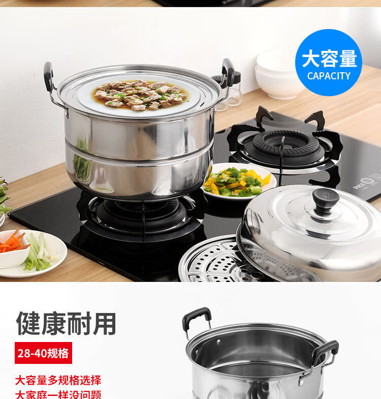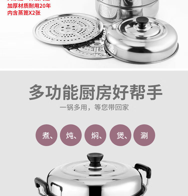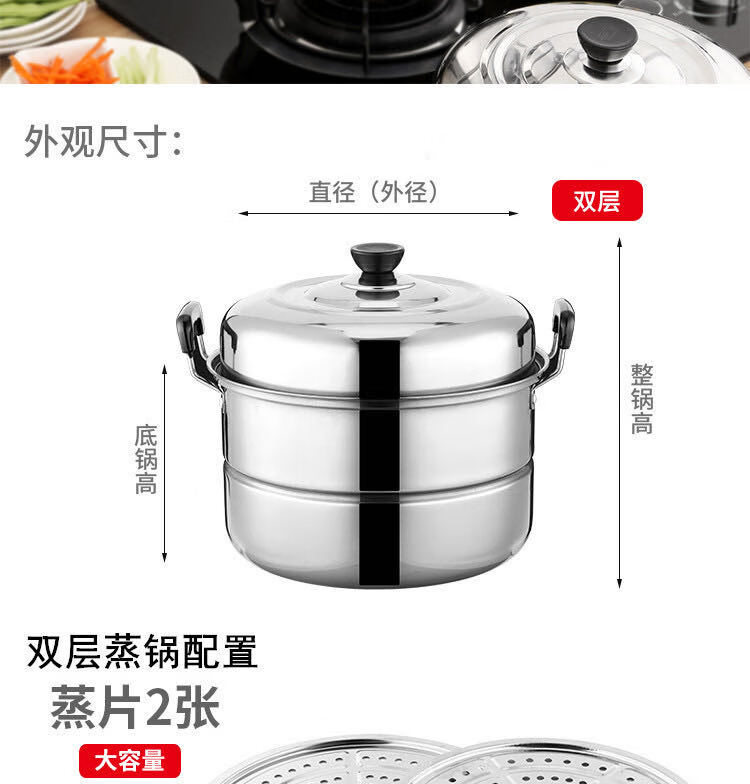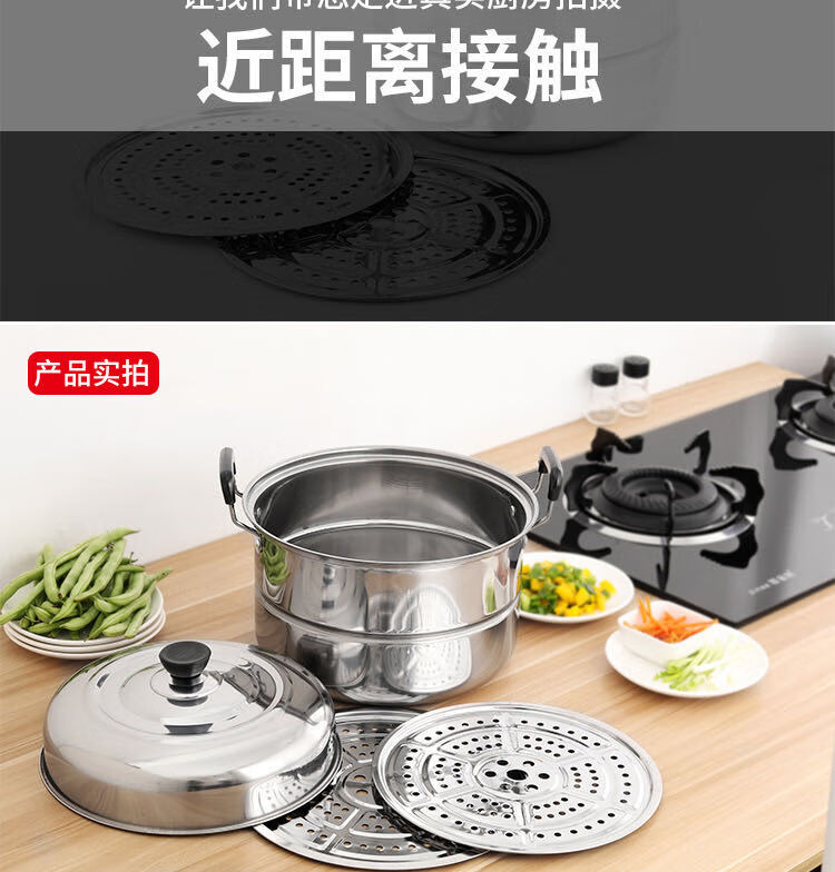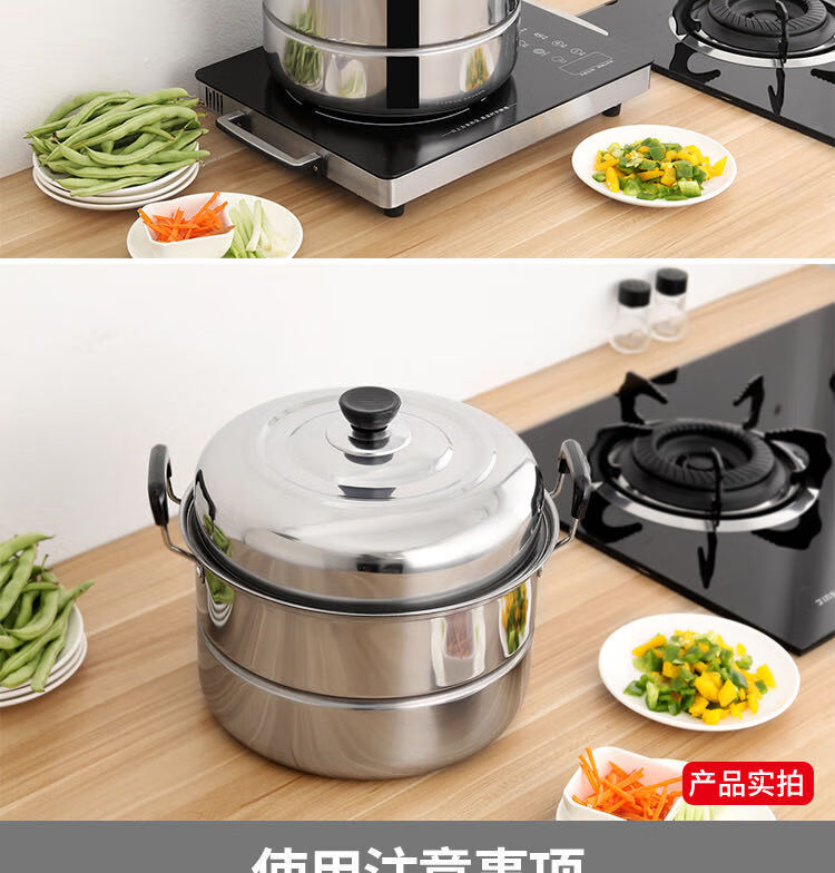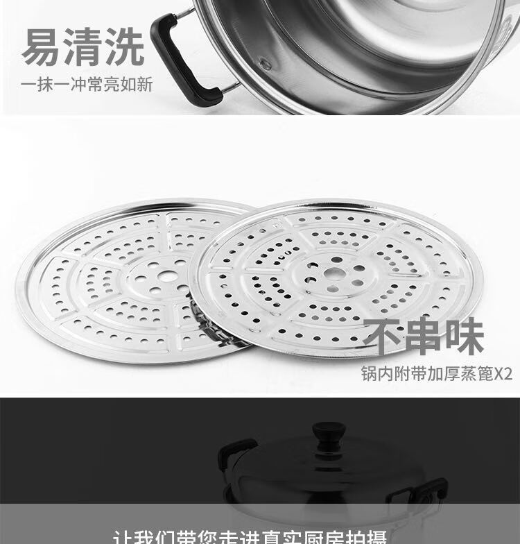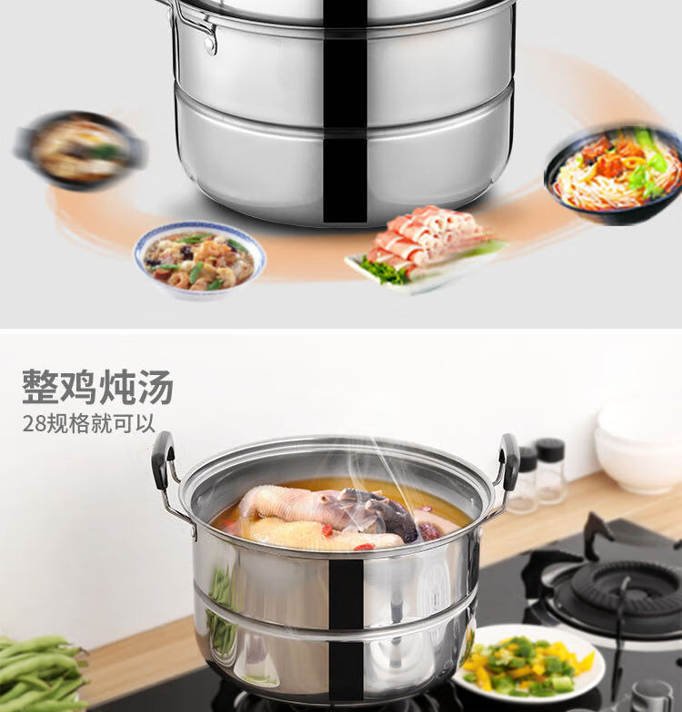 Zhe series thickened stainless steel steamer household multi-layer steaming multi-purpose steamed buns steel pot induction cooker gas stove special 28cm double layer with two grates (for 2-3 people 28cm one year warranty comes with steaming cloth