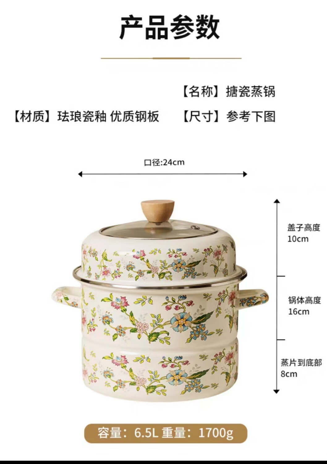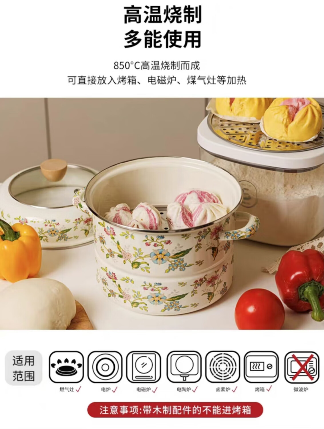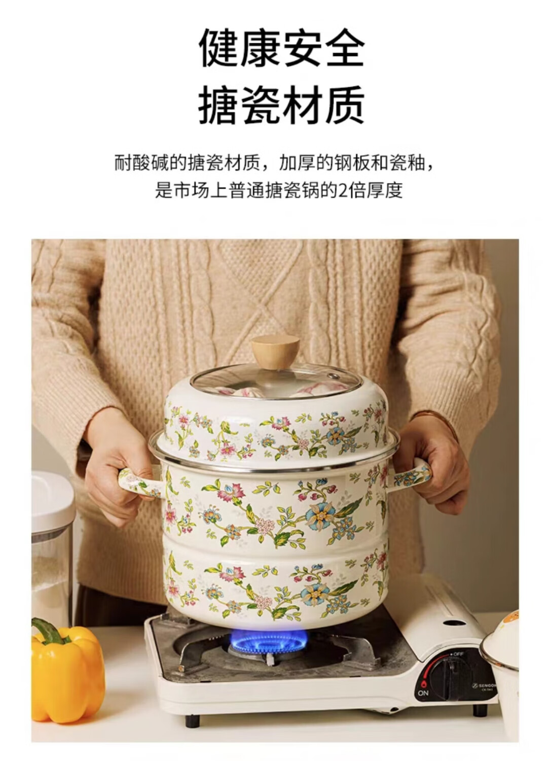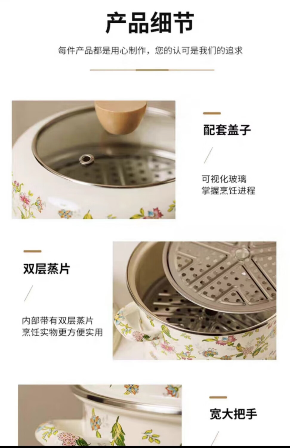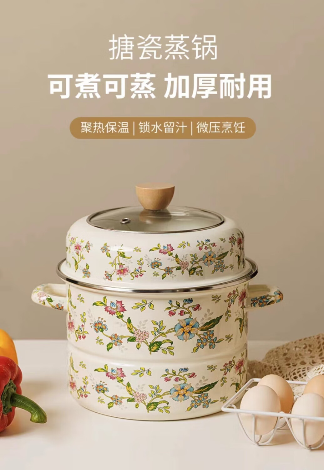 Mincheng's new thickened 24 cm double-layer steamer household enamel soup pot enamel two-layer steamer induction cooker gas stove cake flower double-layer steamer 2 layers 24cm