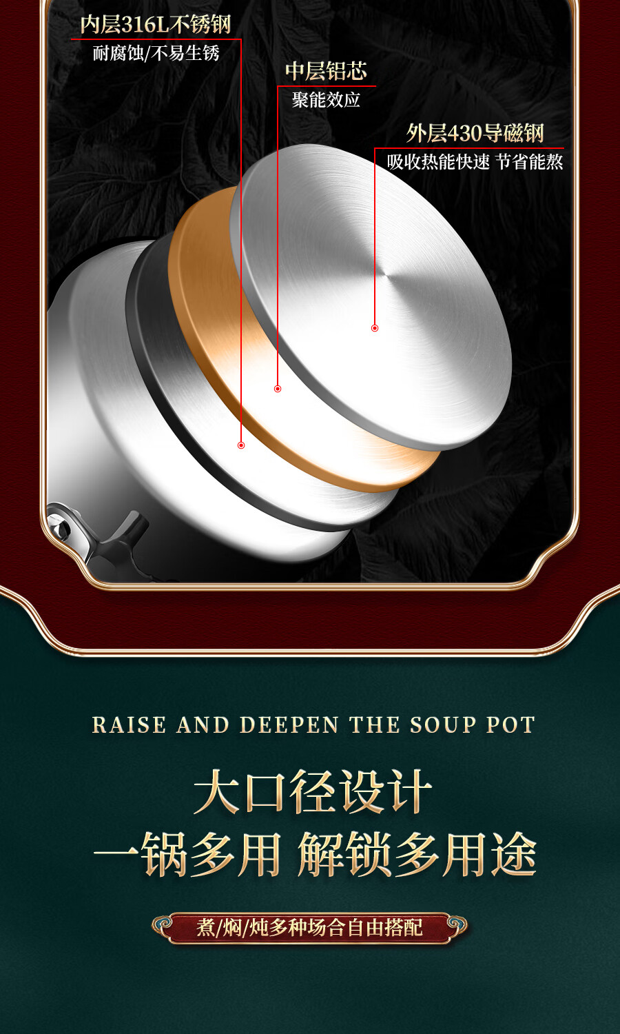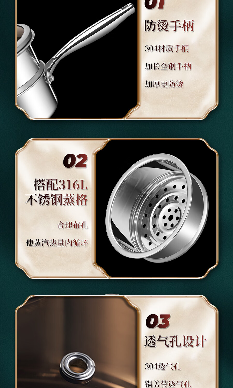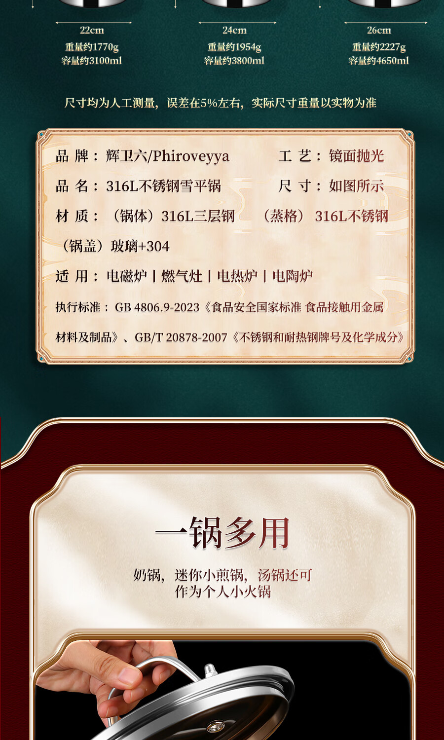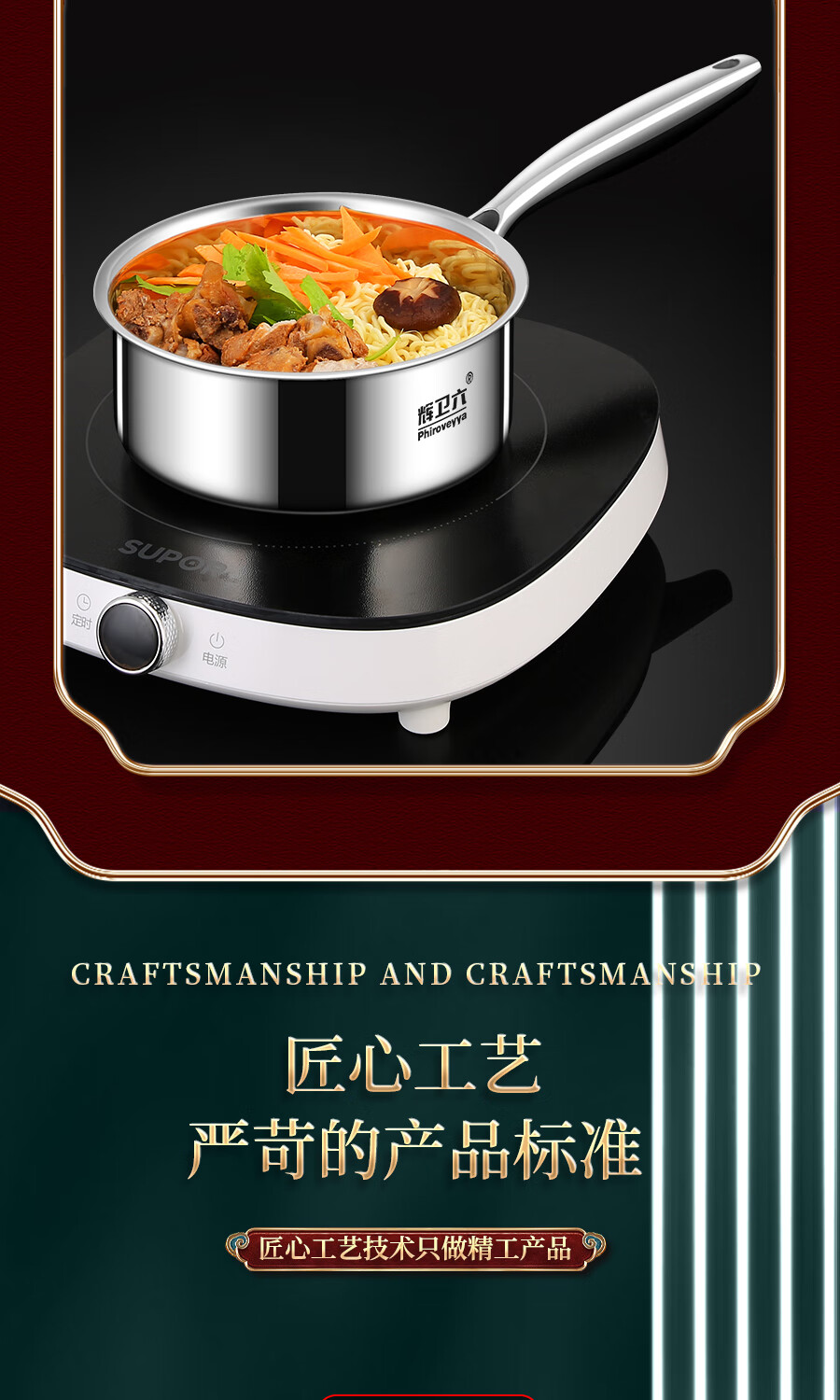 Huiweiliu 316L stainless steel milk pot, snow flat pot, cooking noodles, household uncoated food supplement pot with cage, small soup pot, single handle, single pot + steaming grid 18cm