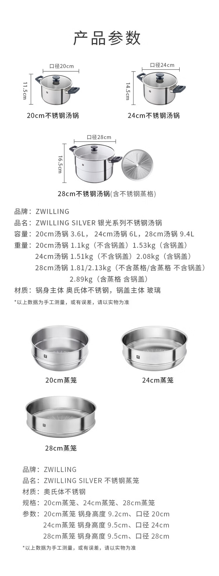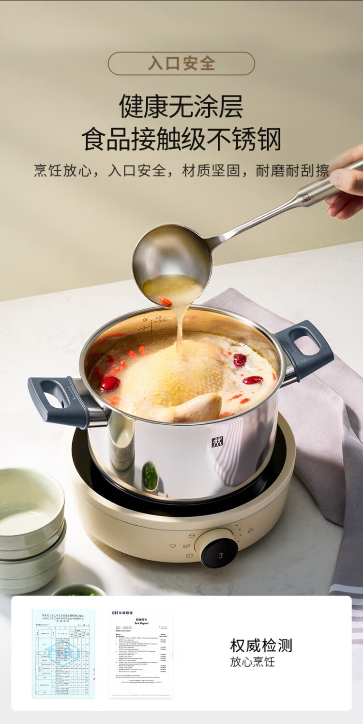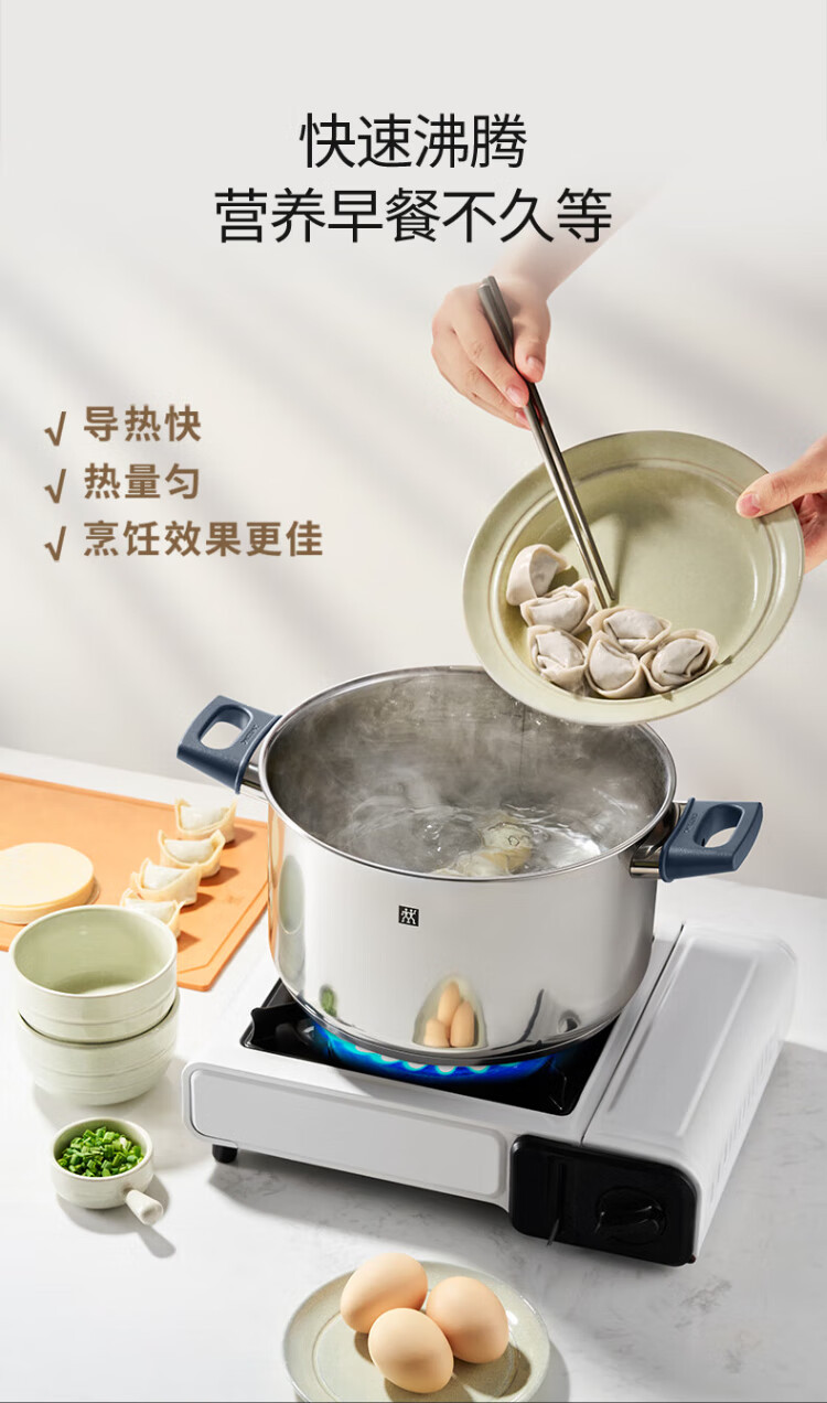 ZWILLING stainless steel soup pot steamer 0 coating household double-ear stew pot anti-yellowing noodles and porridge Silver series SILVER series soup pot + steamer 2 layers 20cm