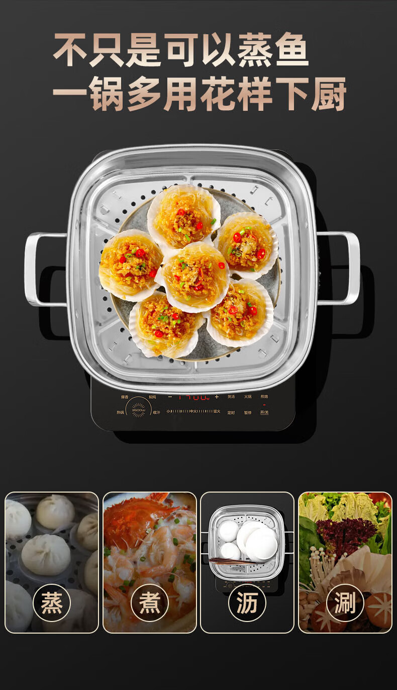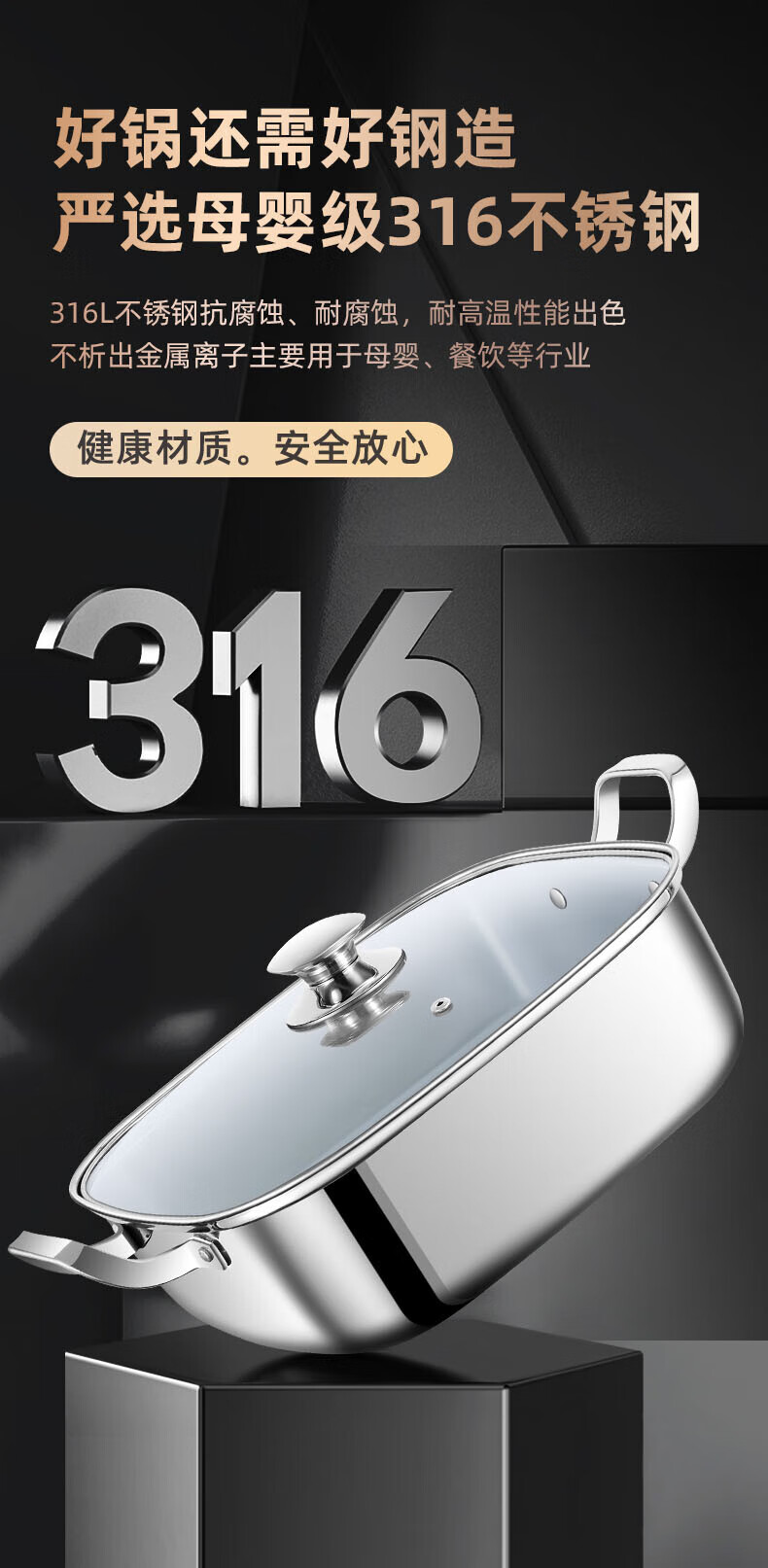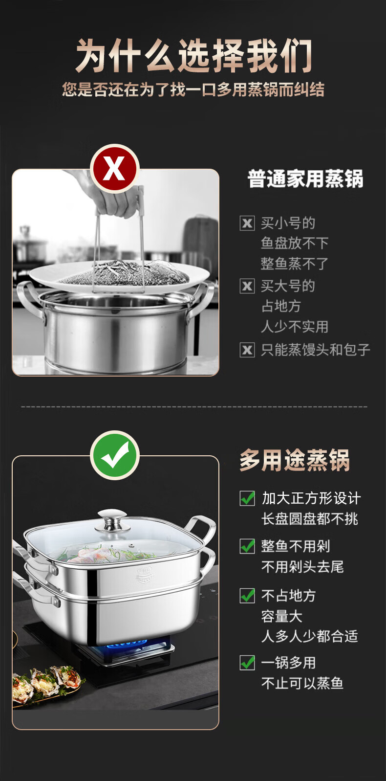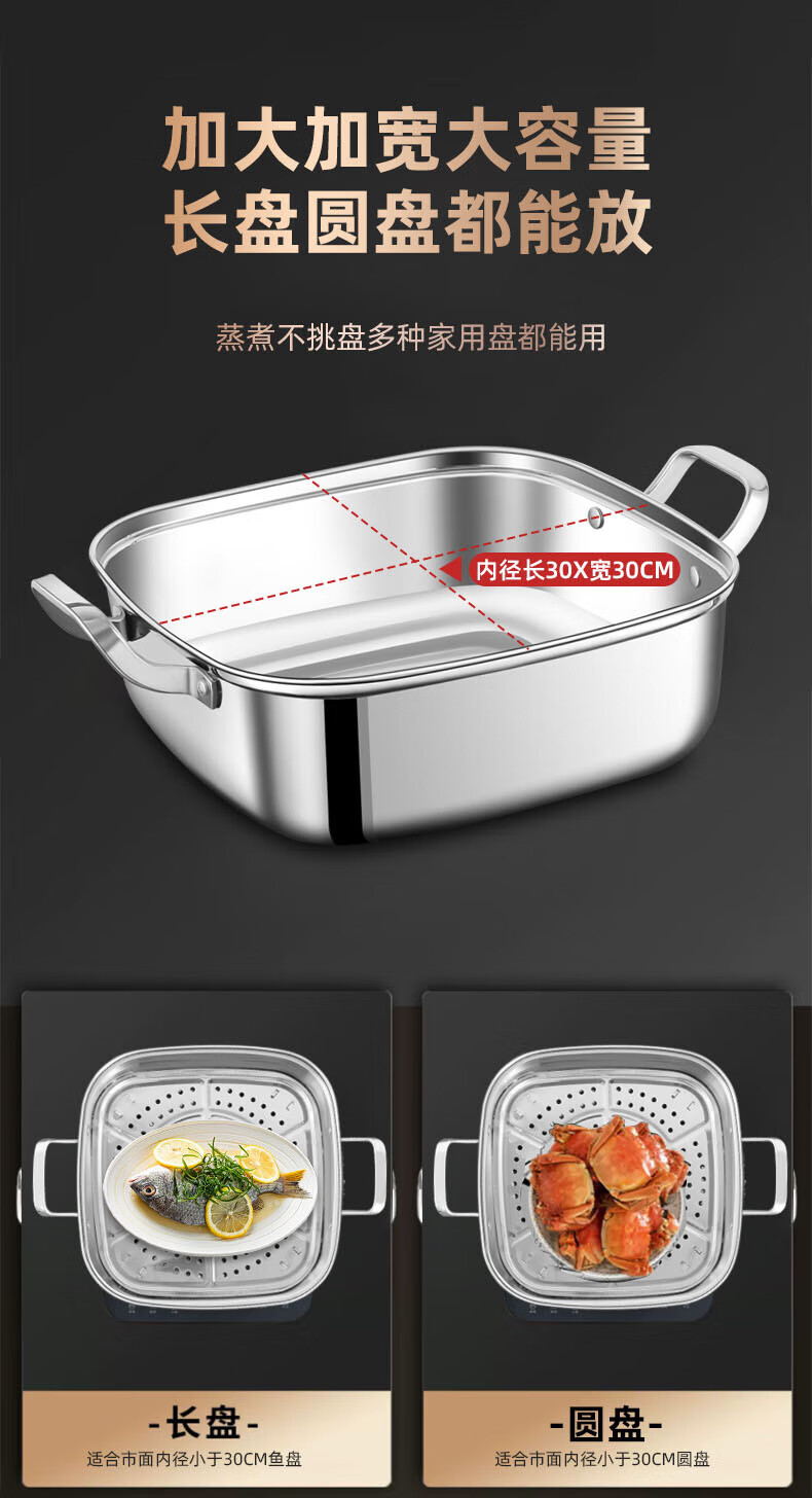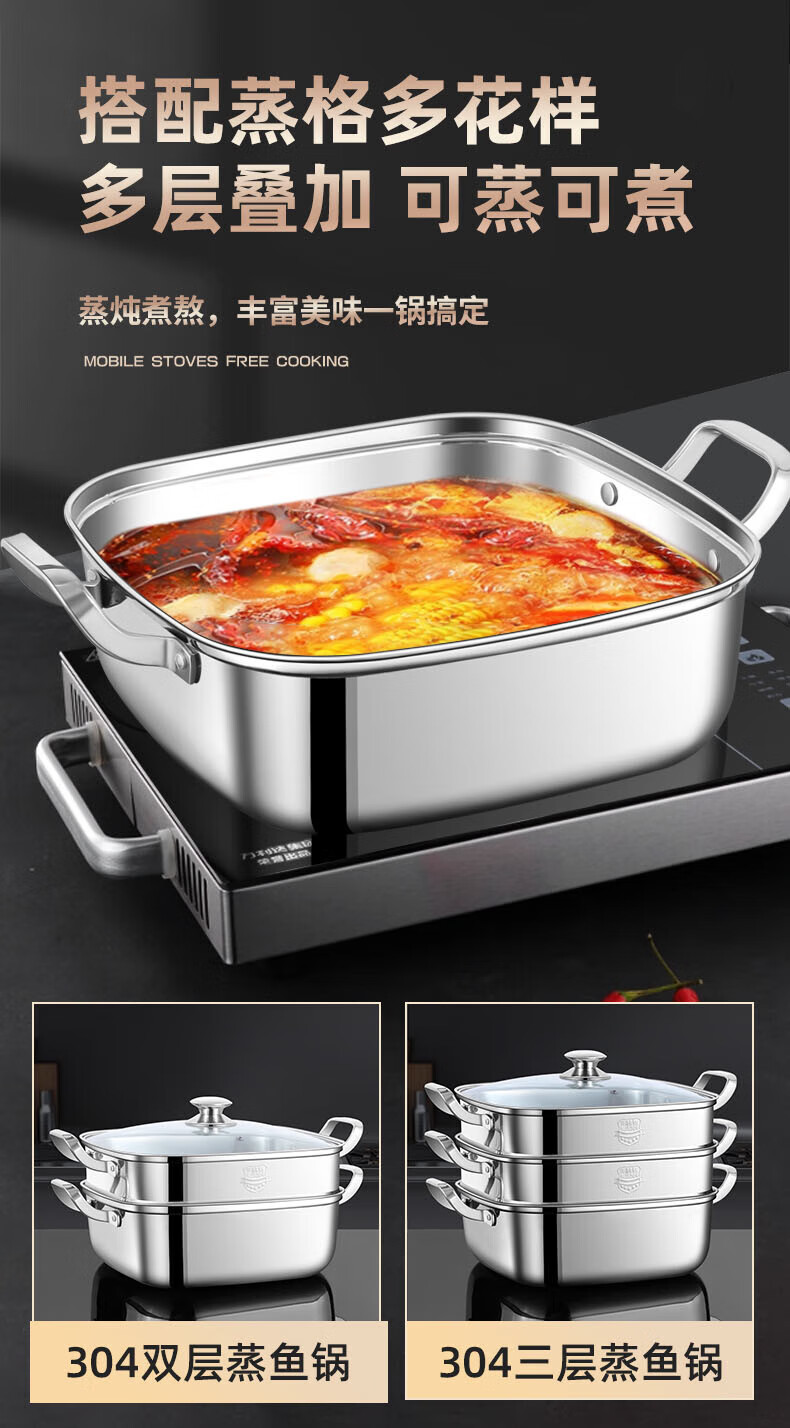Ningbinde household 316 stainless steel square steamer thickened multi-layer steamer drawer multi-functional gas induction cooker universal 316 stainless steel 3 layers 30cm