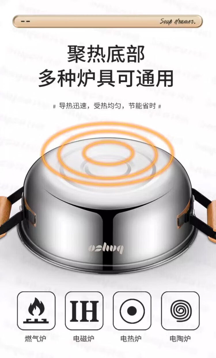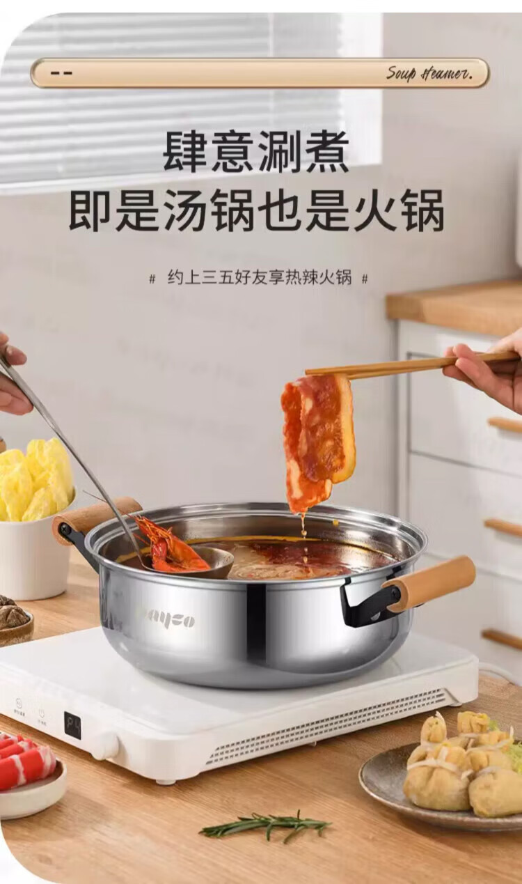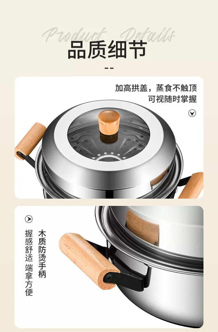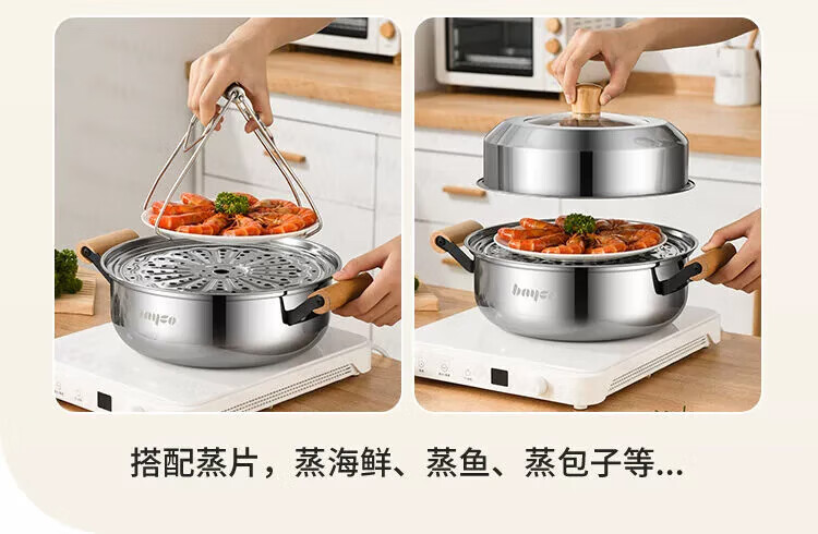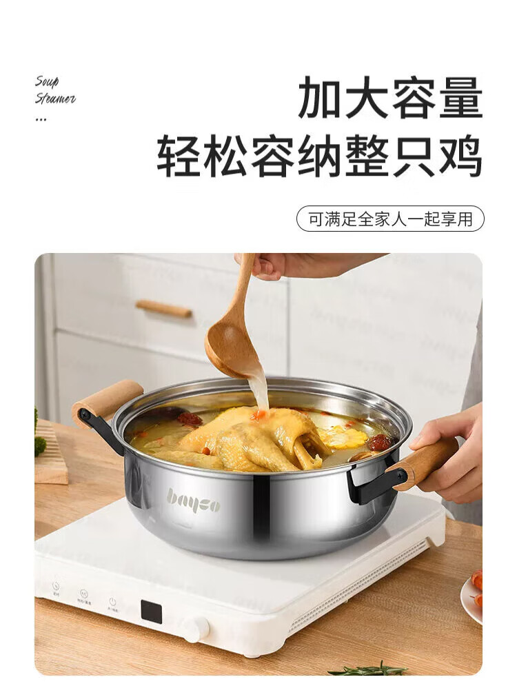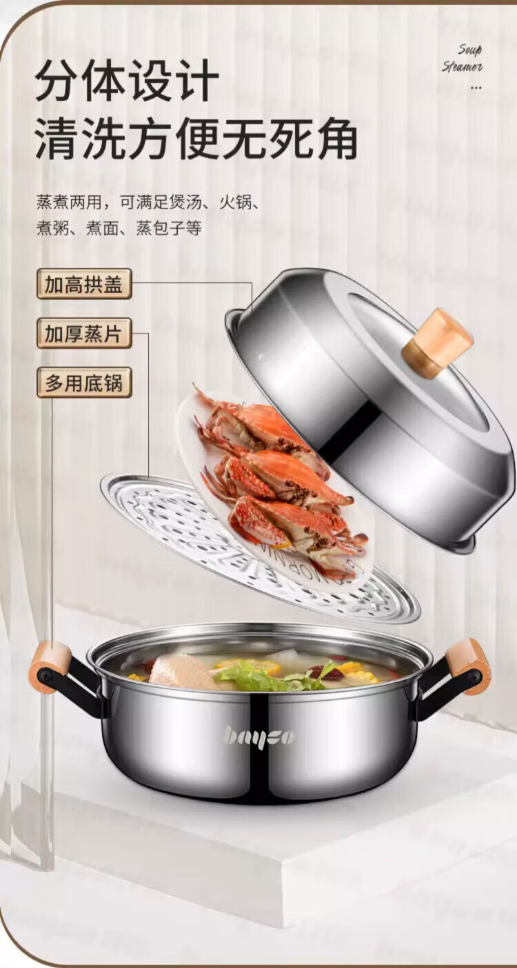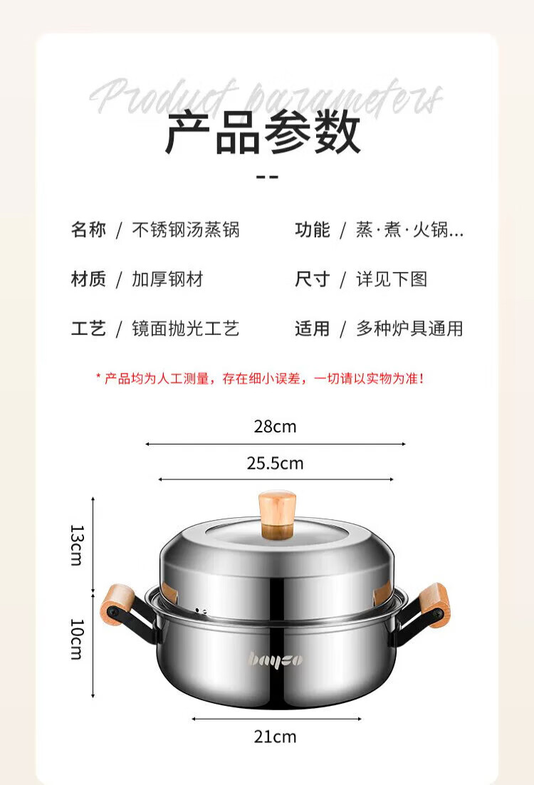 Baige stainless steel steamer household steamer thickened dual-purpose steamed fish steamed bun stew steamer gas induction cooker universal upper steaming and lower cooking dual-purpose soup steamer 1 layer 28cm