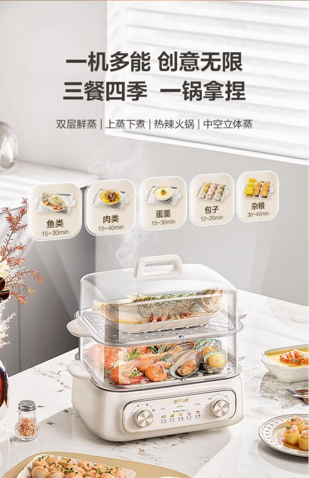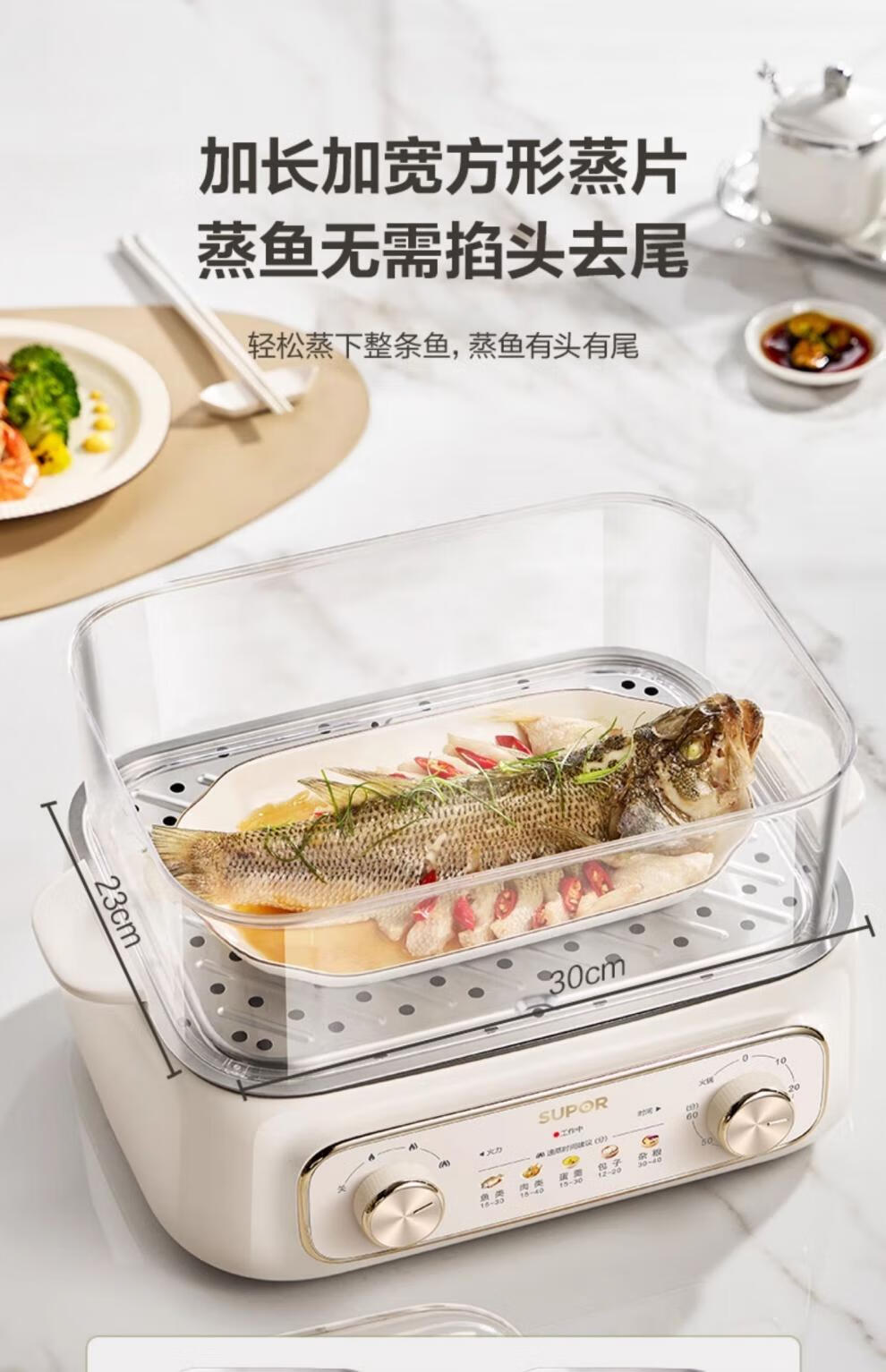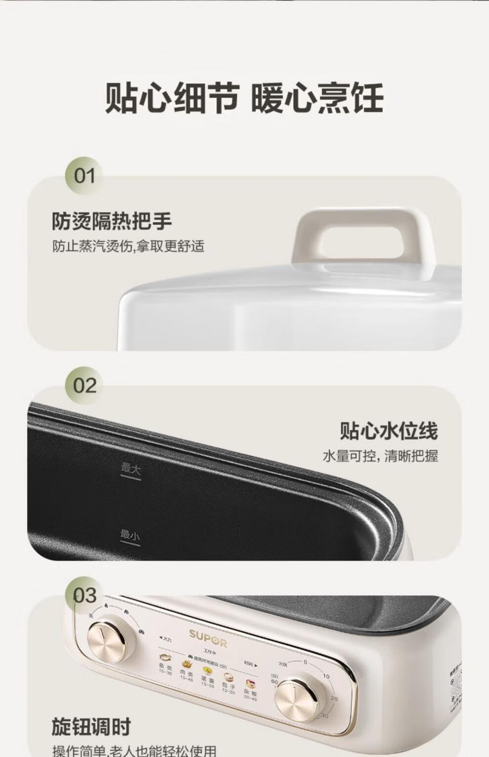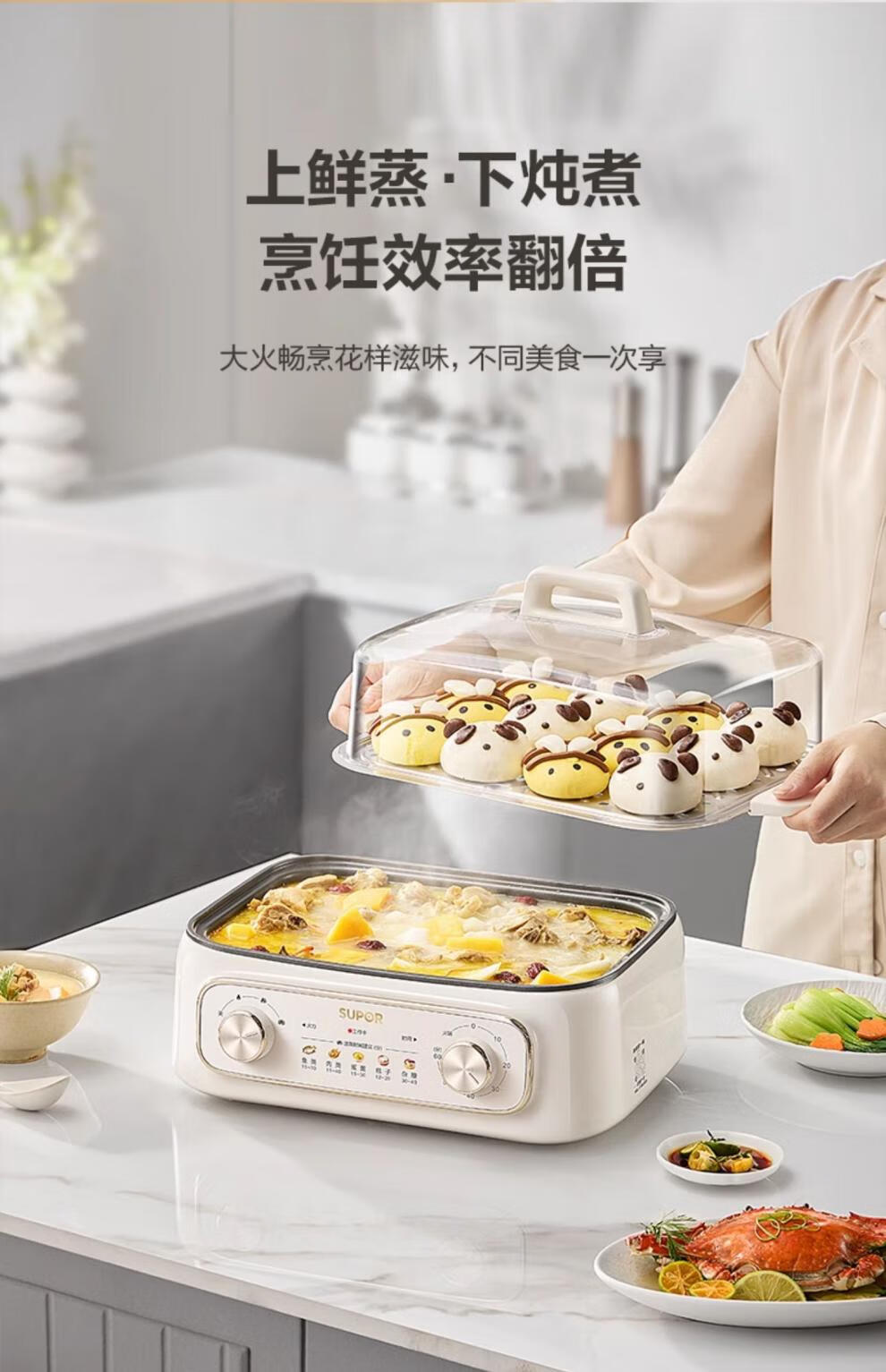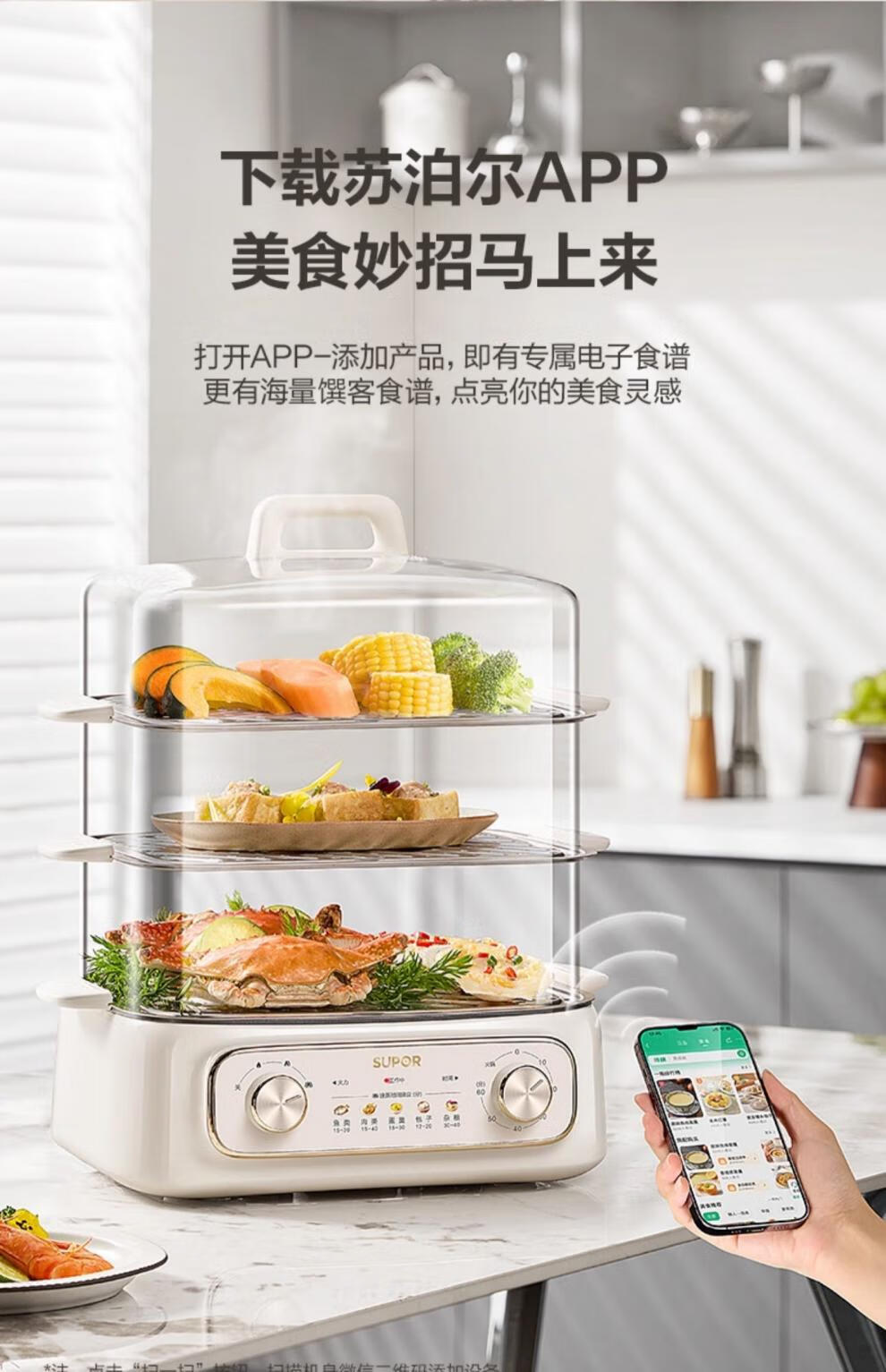 SUPOR electric steamer multi-functional household three-layer breakfast machine multi-layer electric hot pot cooking pot steaming oven all-in-one machine white upgraded model with steamer paper - 50 sheets 23cm 3 layers