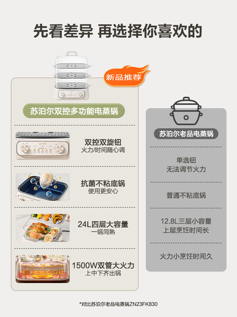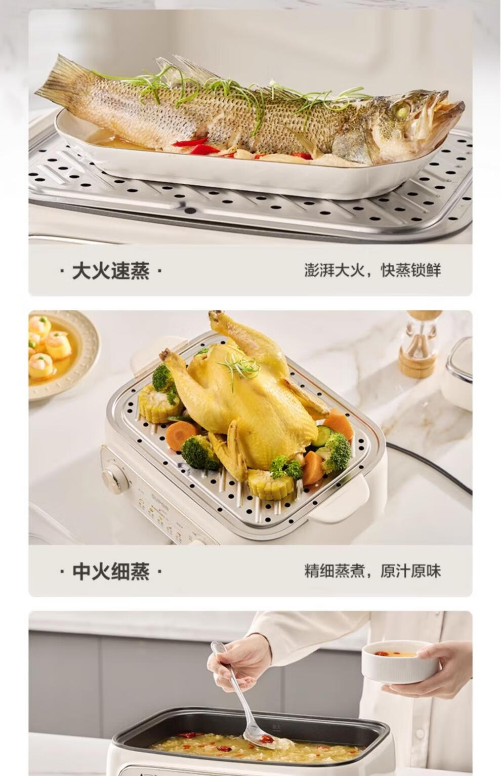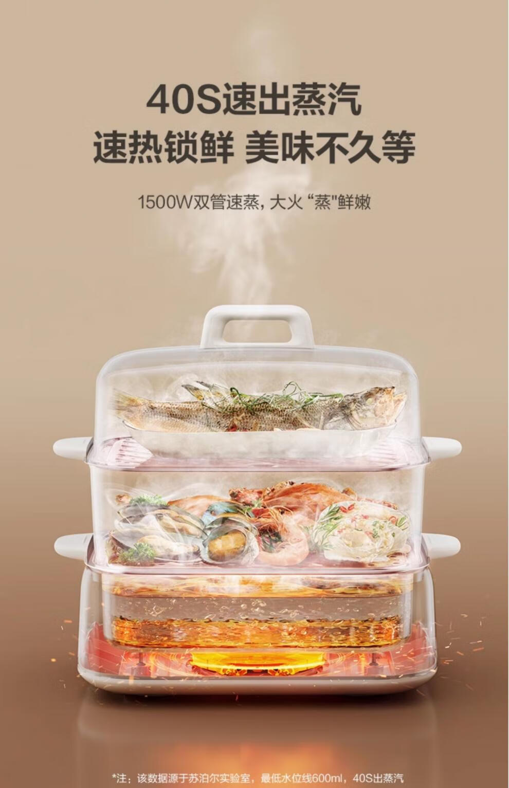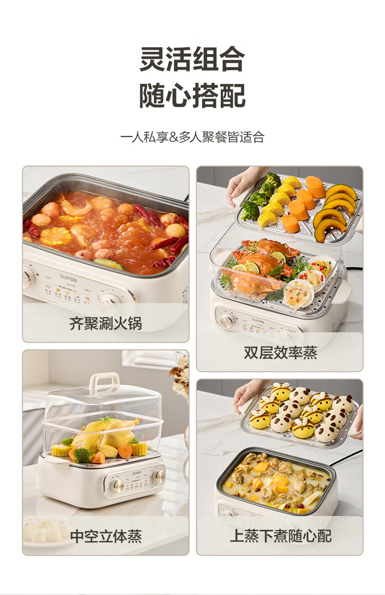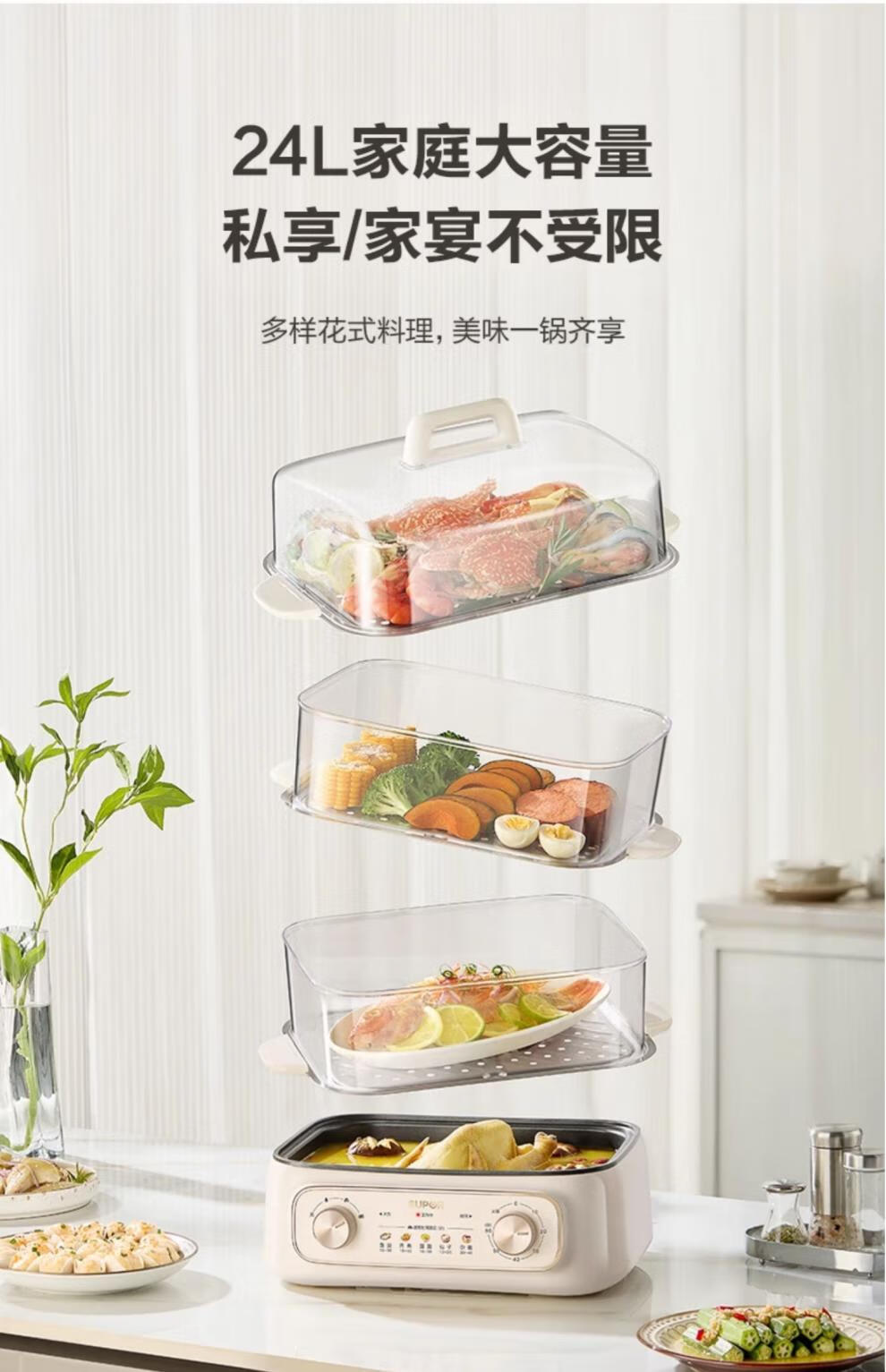 SUPOR electric steamer multi-functional household three-layer breakfast machine multi-layer electric hot pot cooking pot steaming oven all-in-one machine white upgraded model with steamer paper - 50 sheets 23cm 3 layers