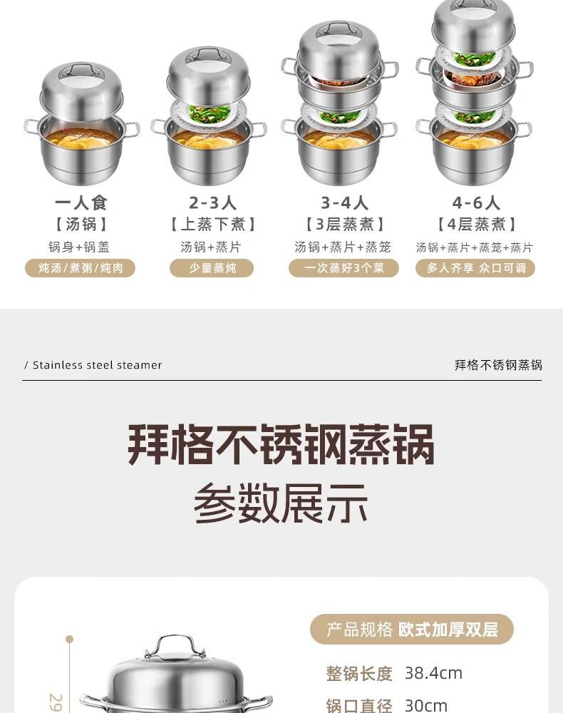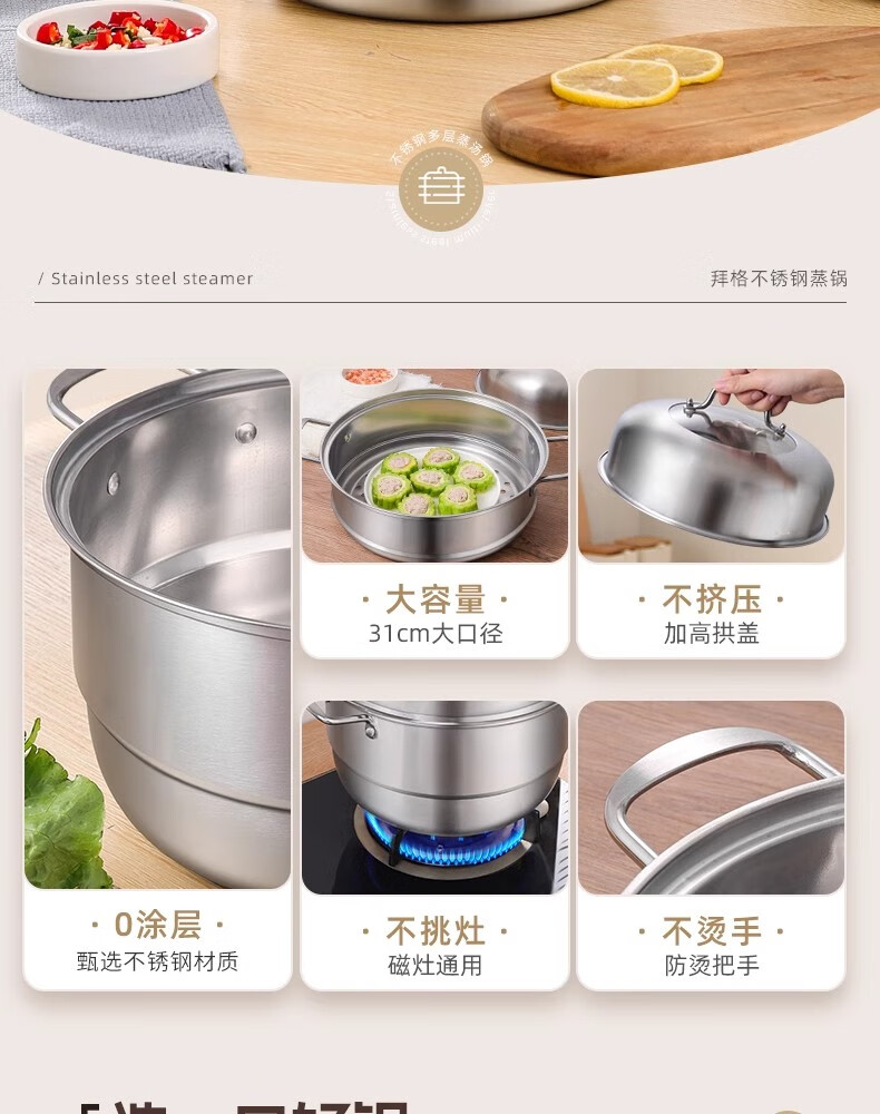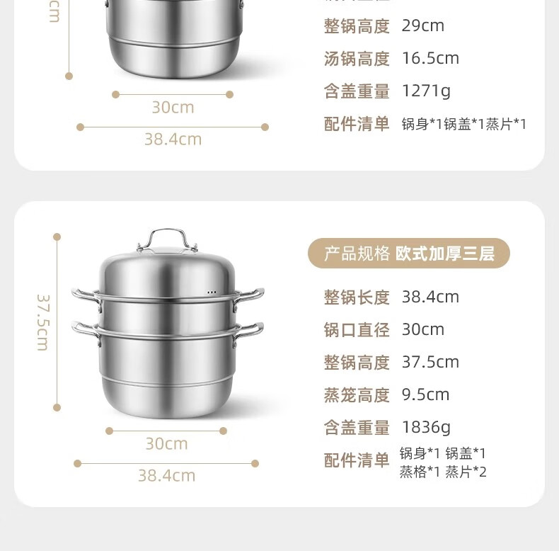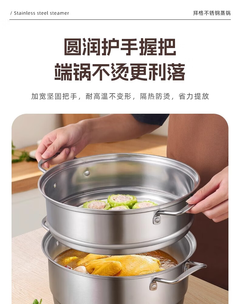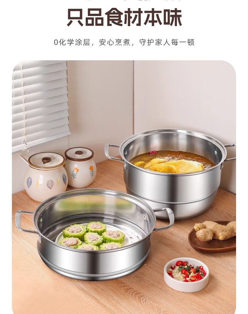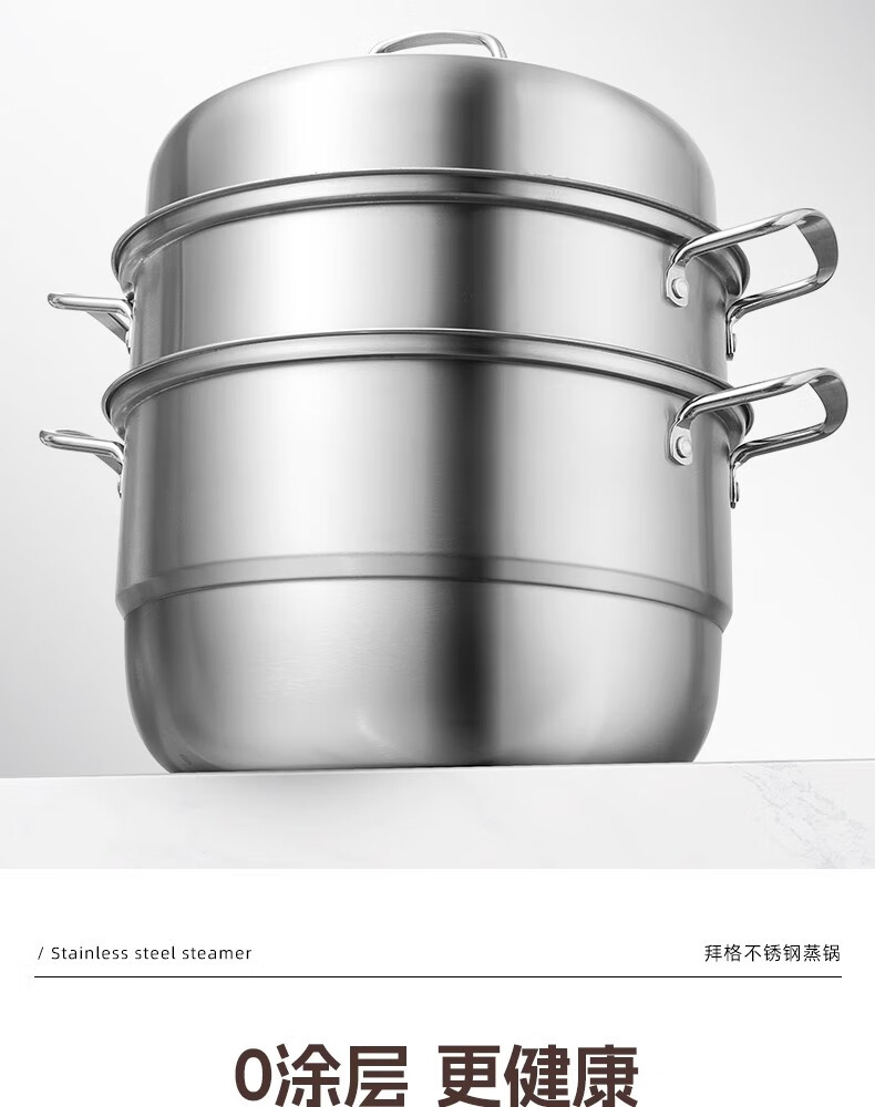 Thickened stainless steel thickened steamer multi-layer steaming stew steamer steamer fish pot steamed buns induction cooker gas stove special thickened soup steamer three layers 28cm