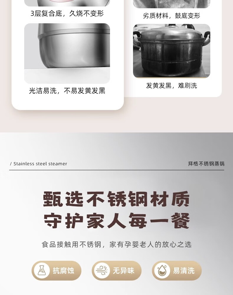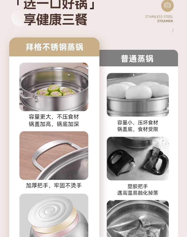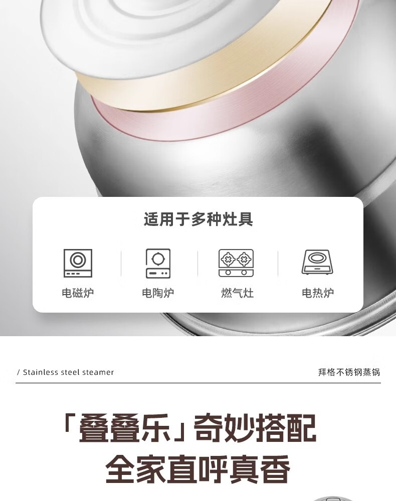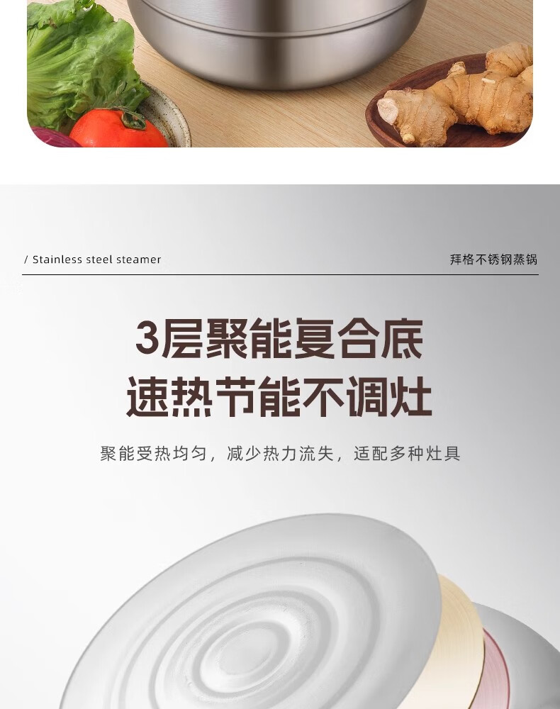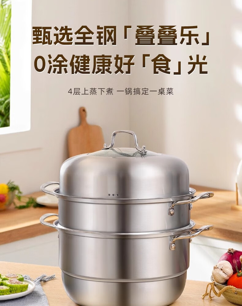 Thickened stainless steel thickened steamer multi-layer steaming stew steamer steamer fish pot steamed buns induction cooker gas stove special thickened soup steamer three layers 28cm
