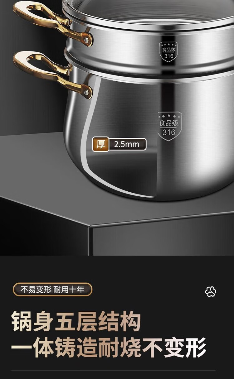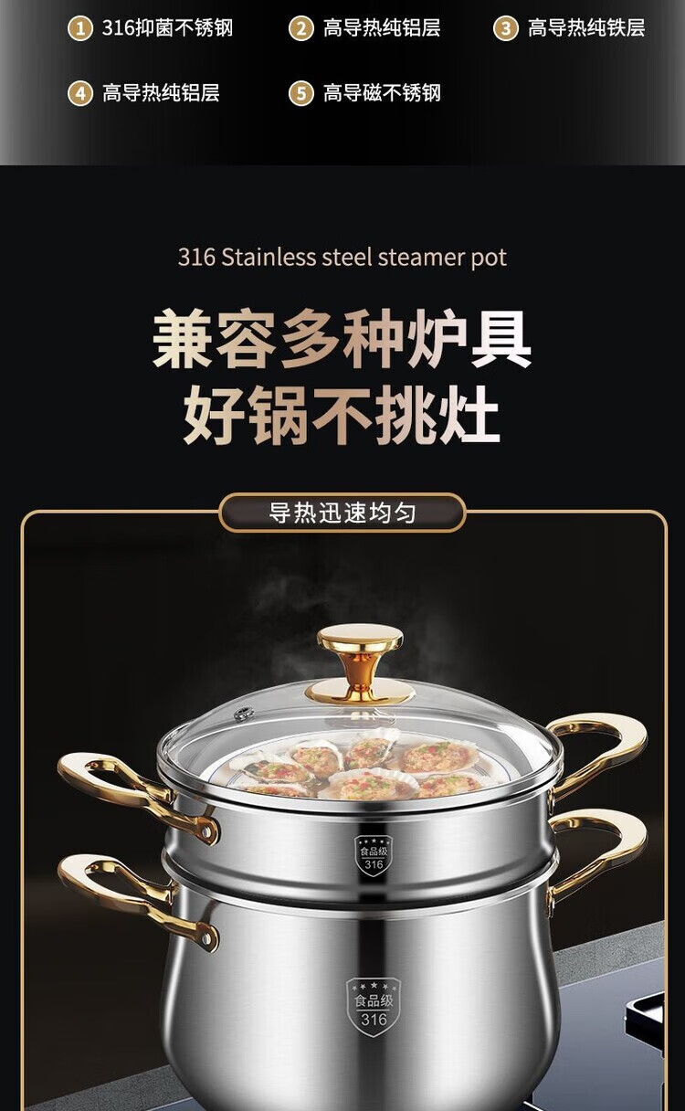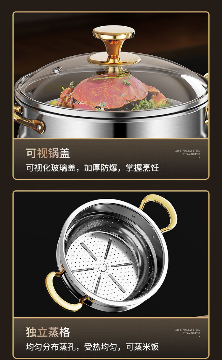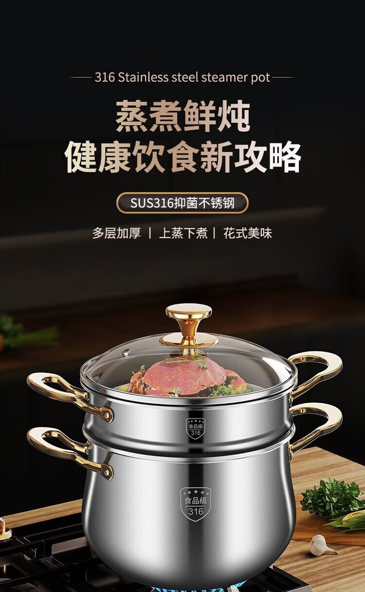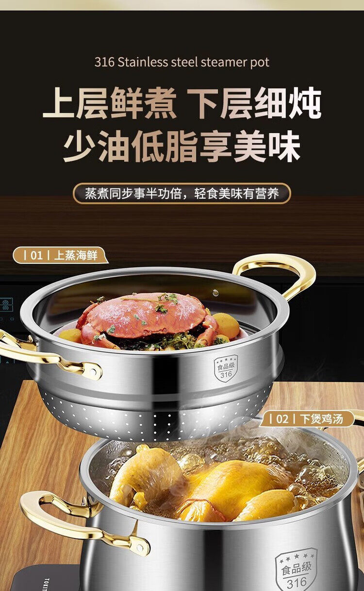 Fat Donglai's same stainless steel steamer 316 Sam 3161729 people praised the country 316 stainless steel soup pot Earl's soup pot 26 with lid and steamer 1cm 26cm