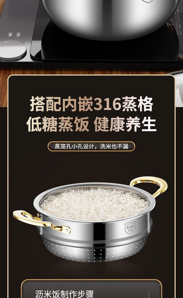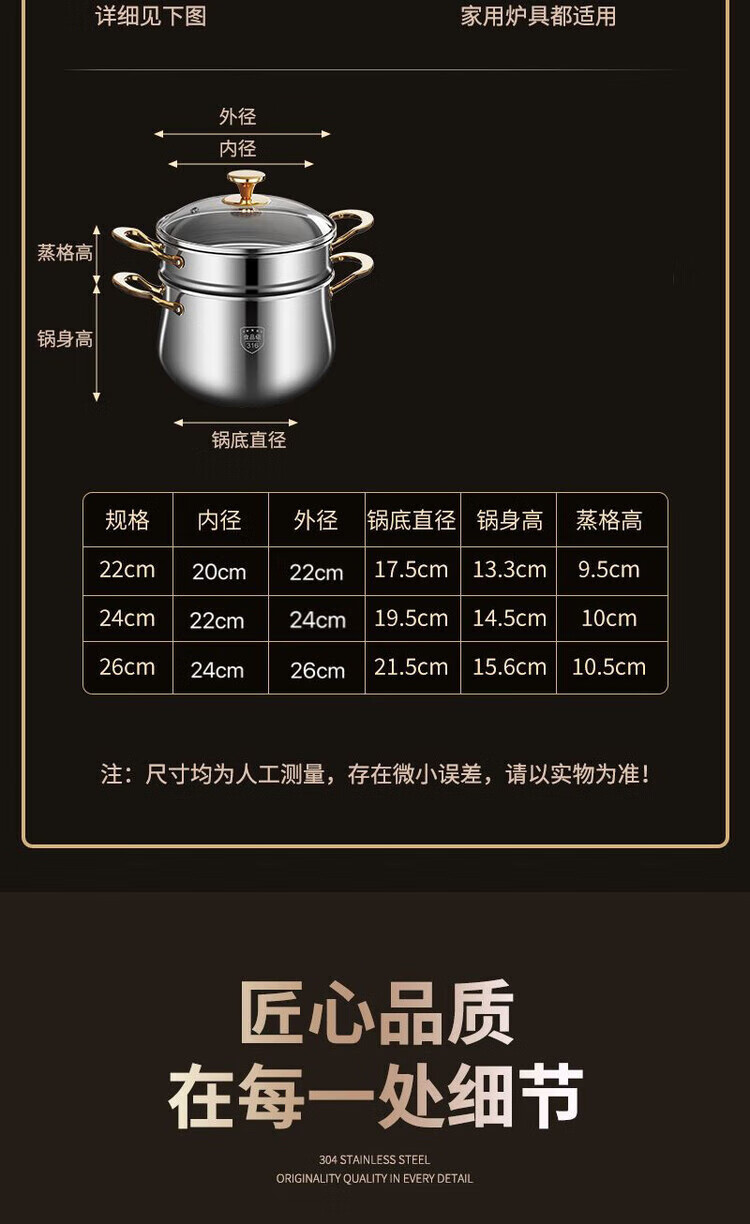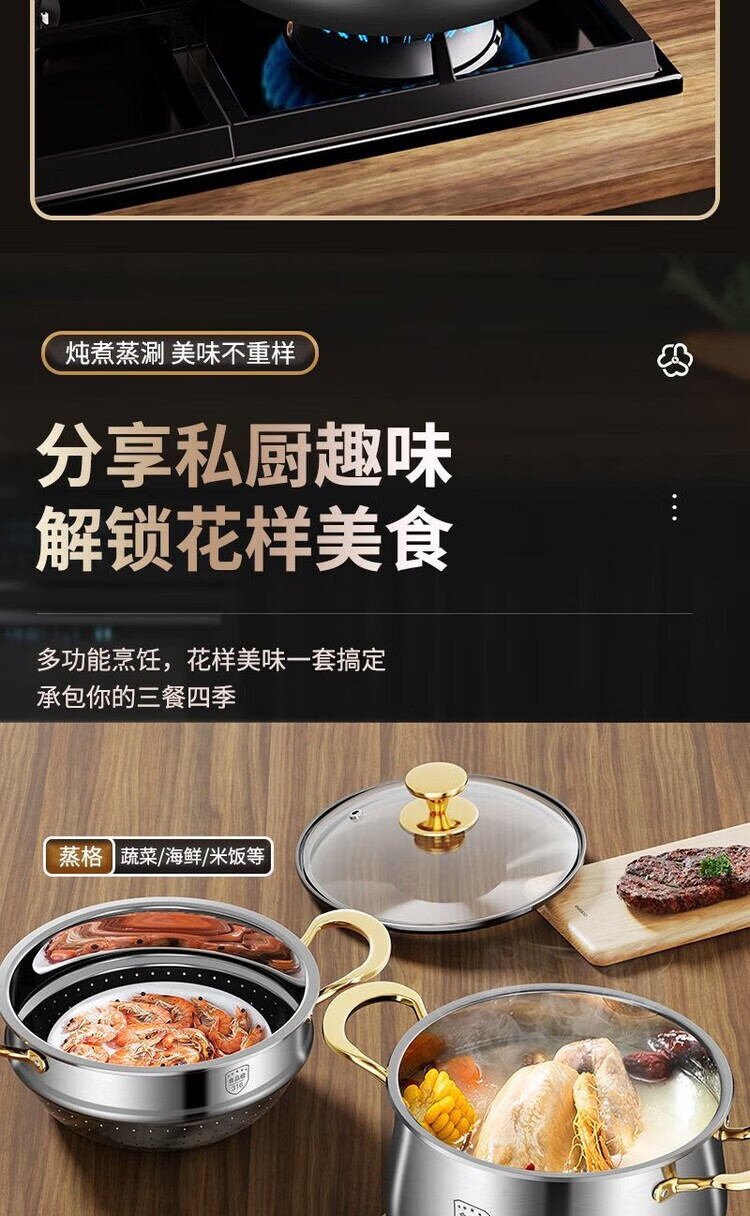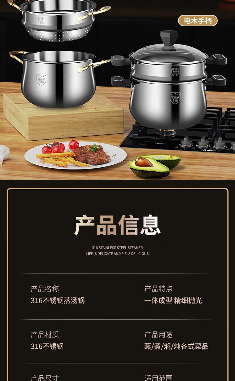 Fat Donglai's same stainless steel steamer 316 Sam 3161729 people praised the country 316 stainless steel soup pot Earl's soup pot 26 with lid and steamer 1cm 26cm