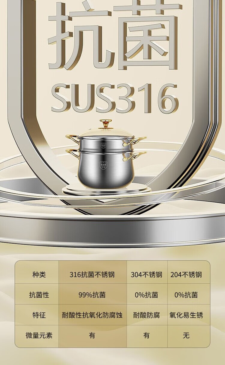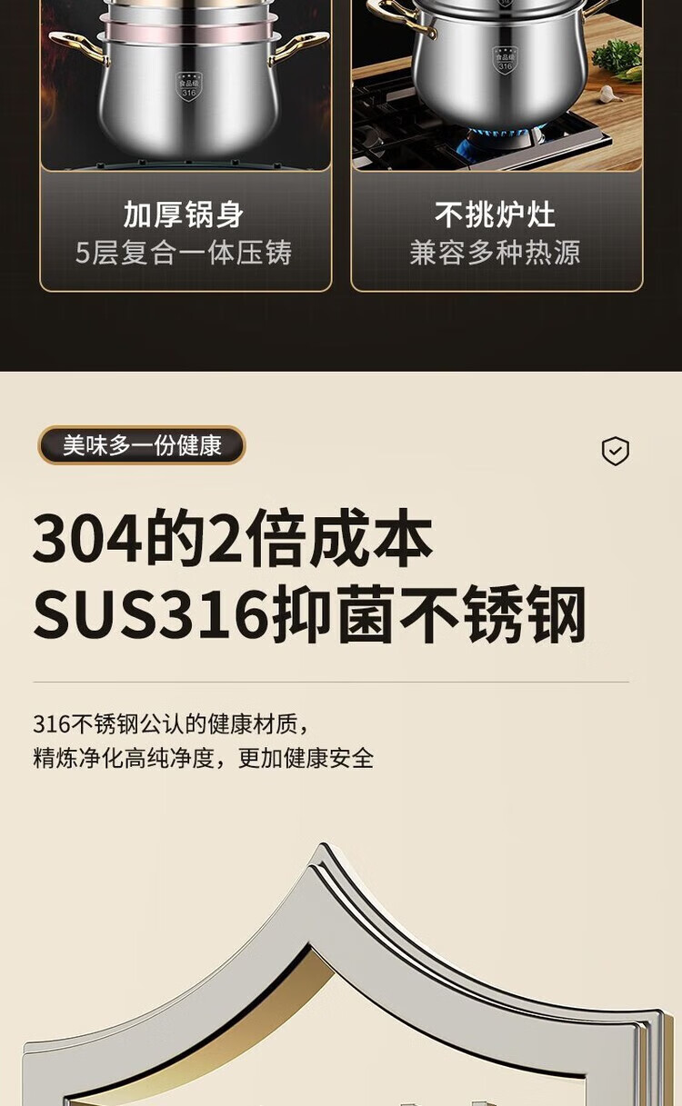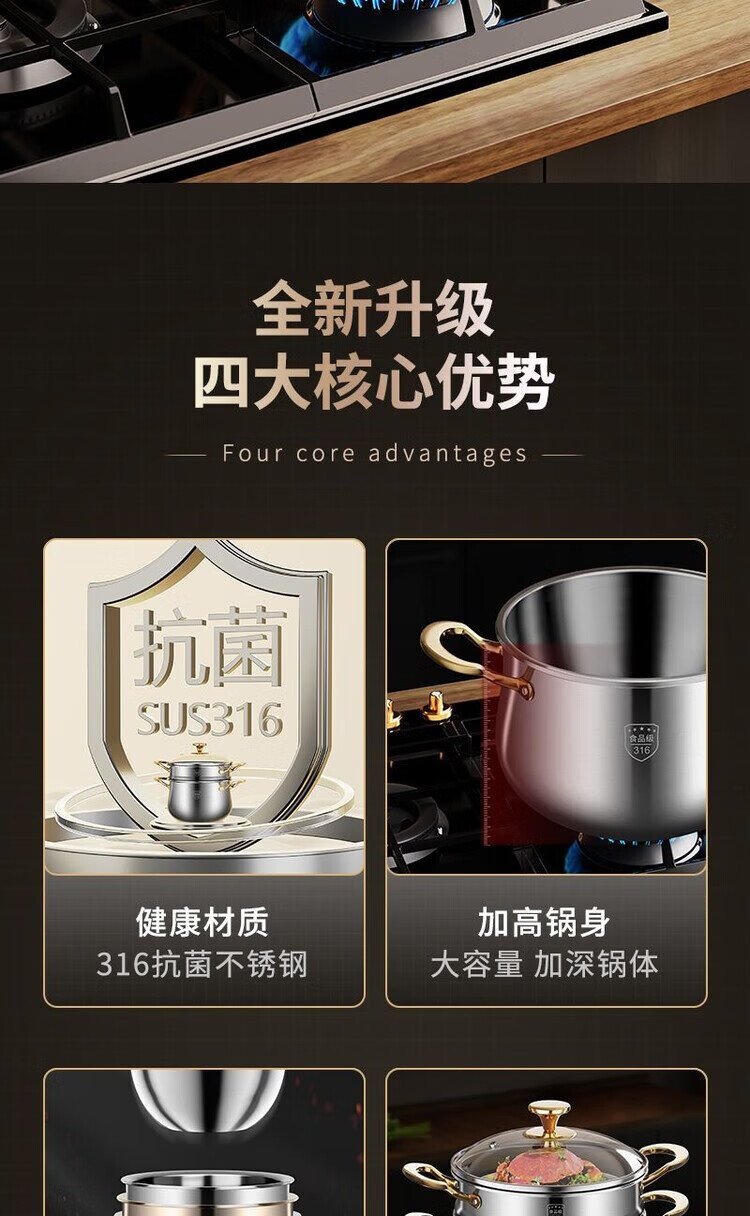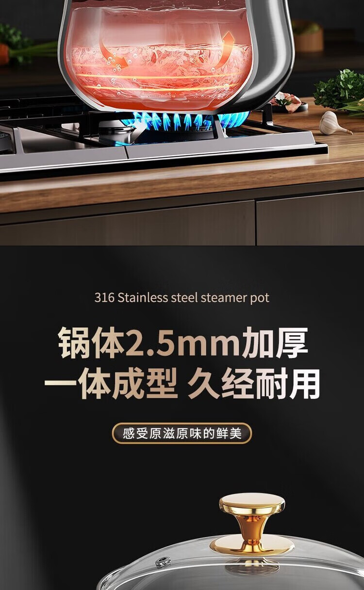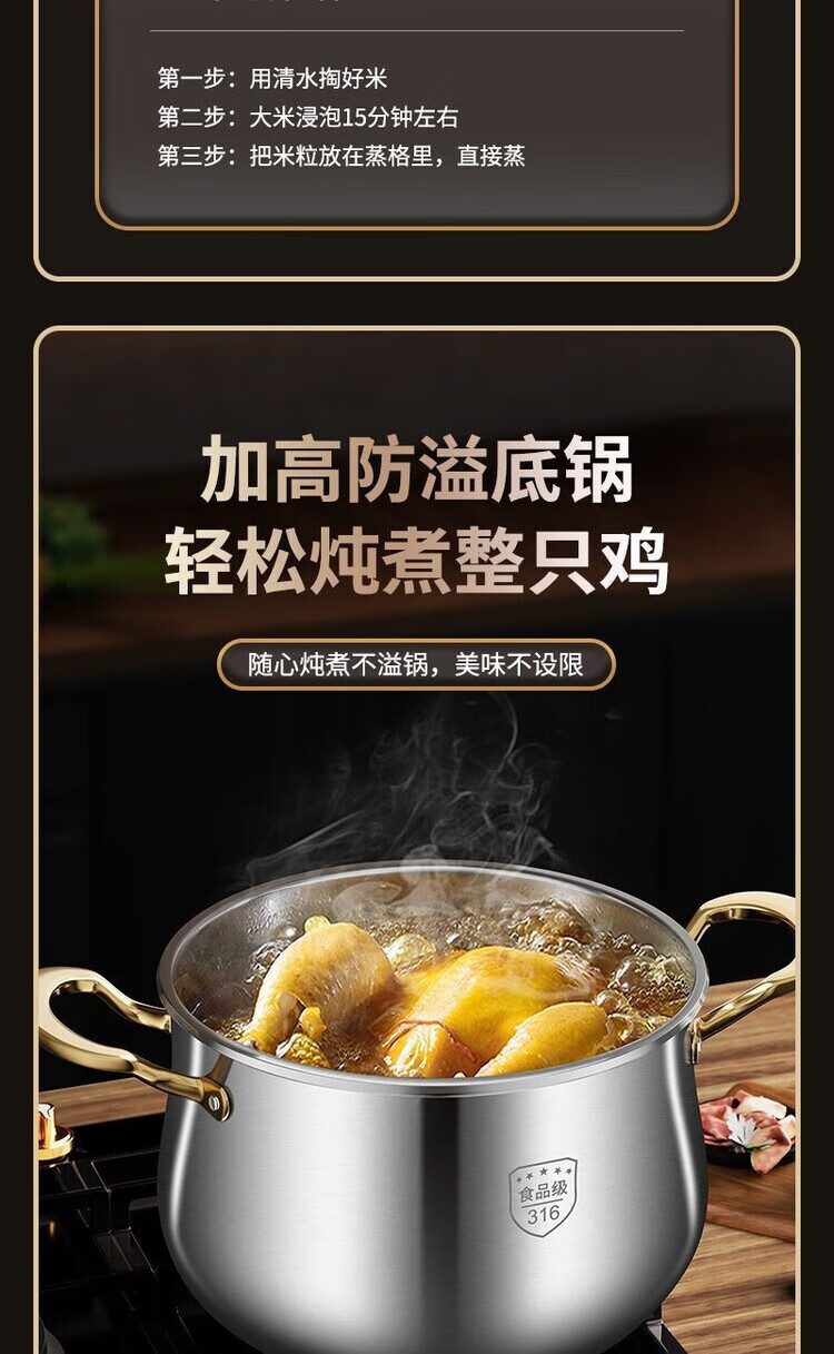 Fat Donglai's same stainless steel steamer 316 Sam 3161729 people praised the country 316 stainless steel soup pot Earl's soup pot 26 with lid and steamer 1cm 26cm