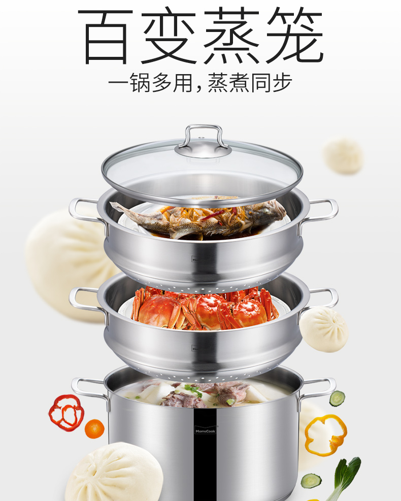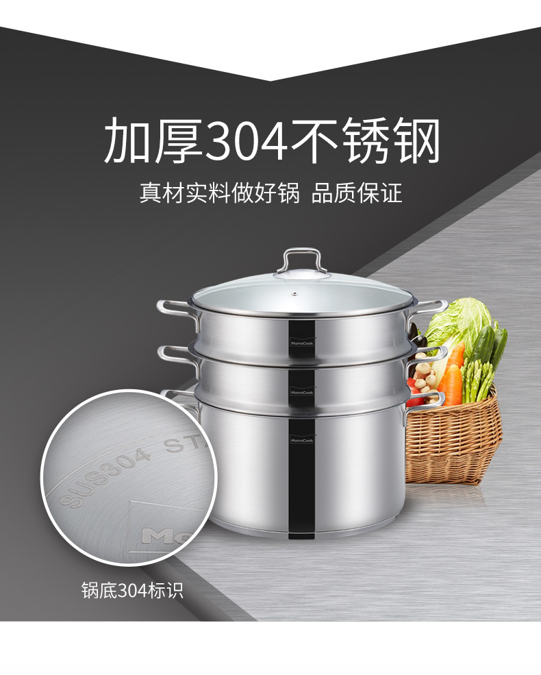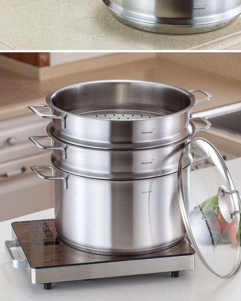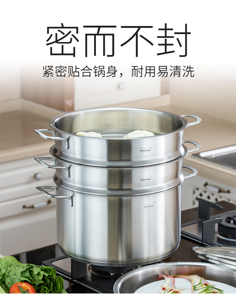 Momscook stainless steel steamer steamer 304 two-layer steamer double bottom thickened gas induction cooker universal soup pot steamer dual-purpose (MT32ST) double-layer steamer 32cm