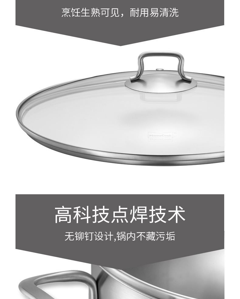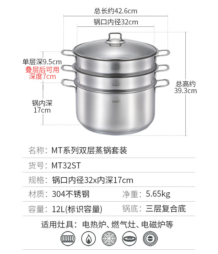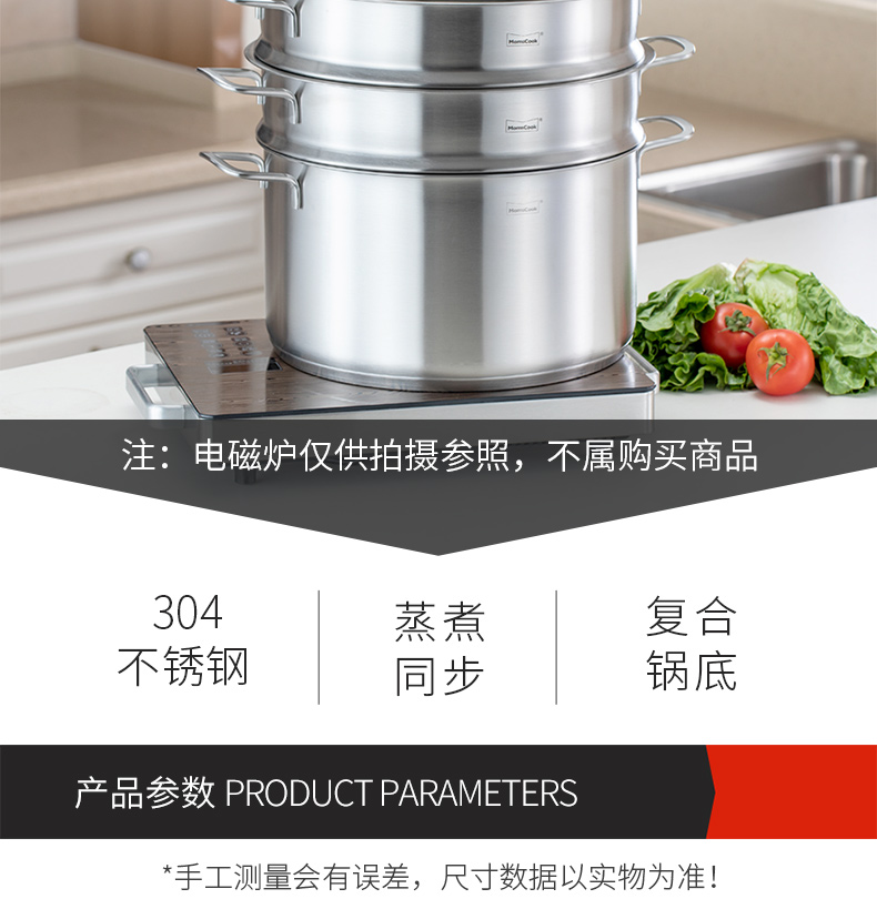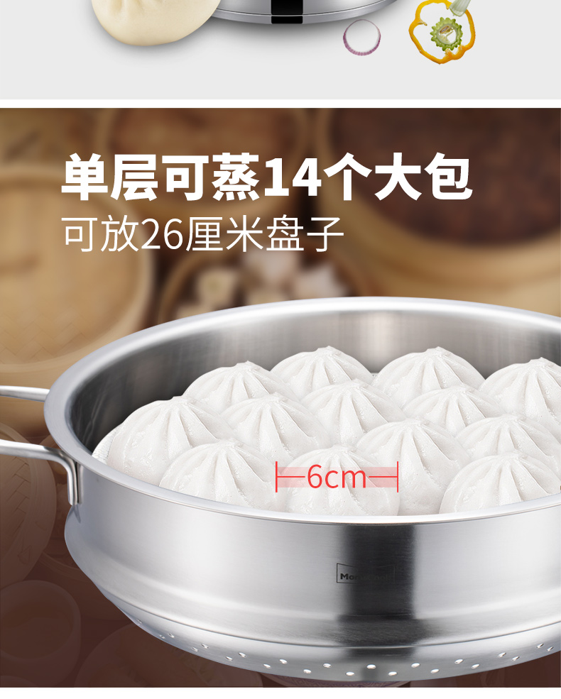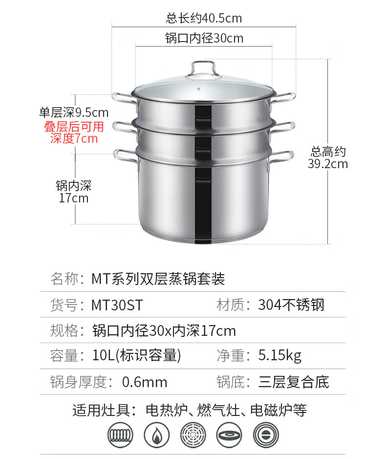 Momscook stainless steel steamer steamer 304 two-layer steamer double bottom thickened gas induction cooker universal soup pot steamer dual-purpose (MT32ST) double-layer steamer 32cm