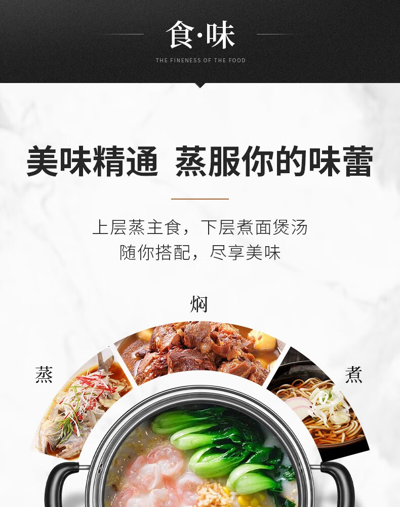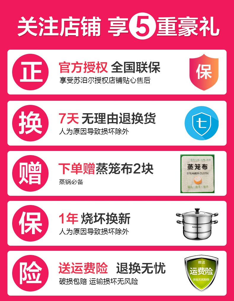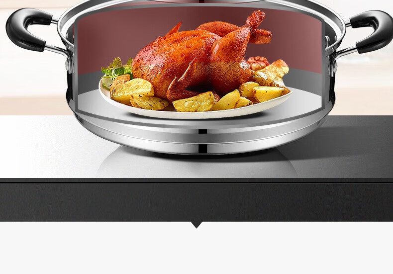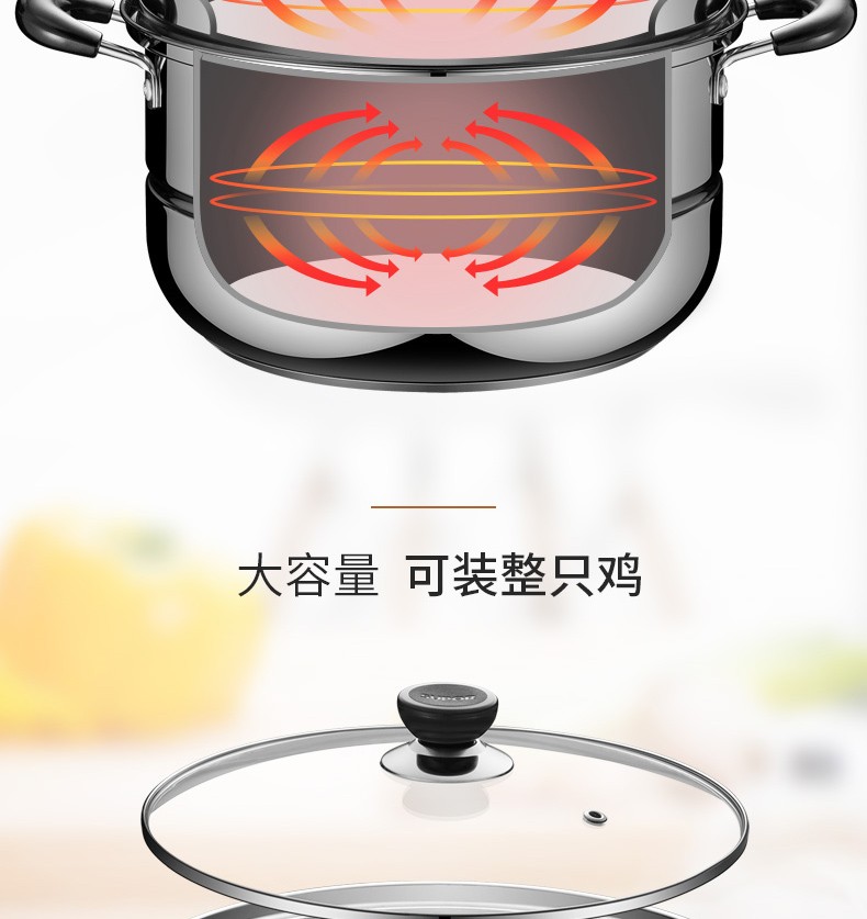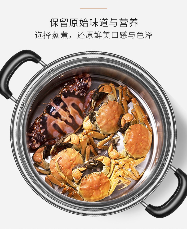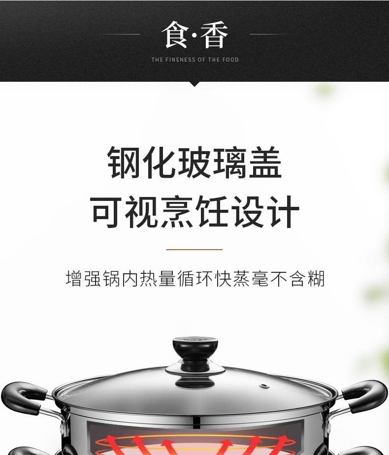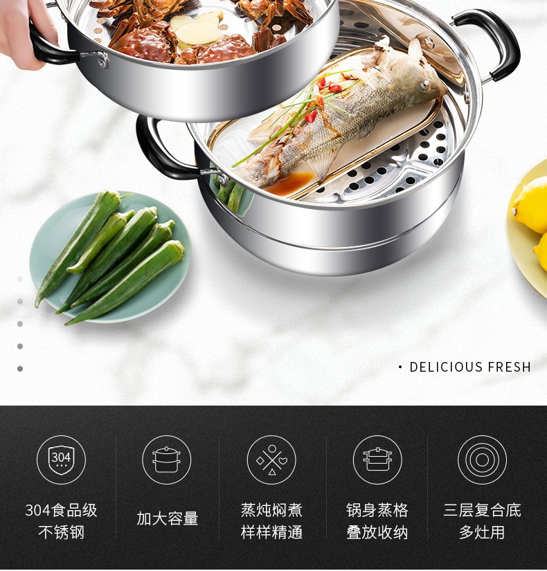 SUPOR steamer 304 stainless steel double-layer thickened large-capacity household double-bottomed two-layer steamer induction cooker gas universal pot steamer free steaming cloth 2 layers 28cm