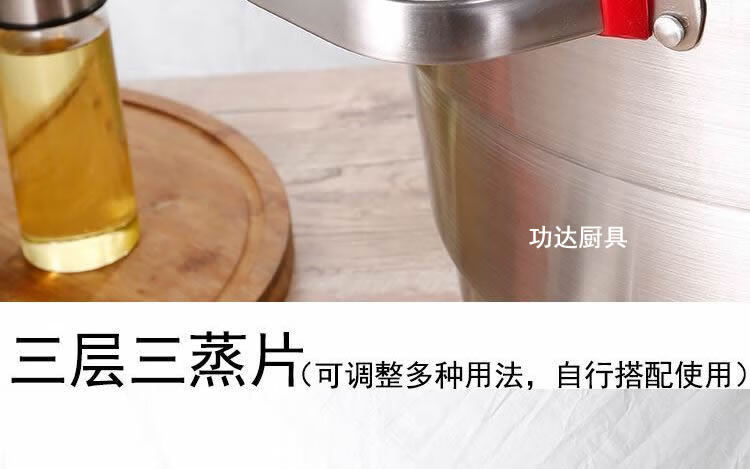 Gongda stainless steel large steamer household three-layer thickened large soup pot commercial large-capacity large steamer steamer buns seafood household steamer 6-8 people 3 layers 40cm
