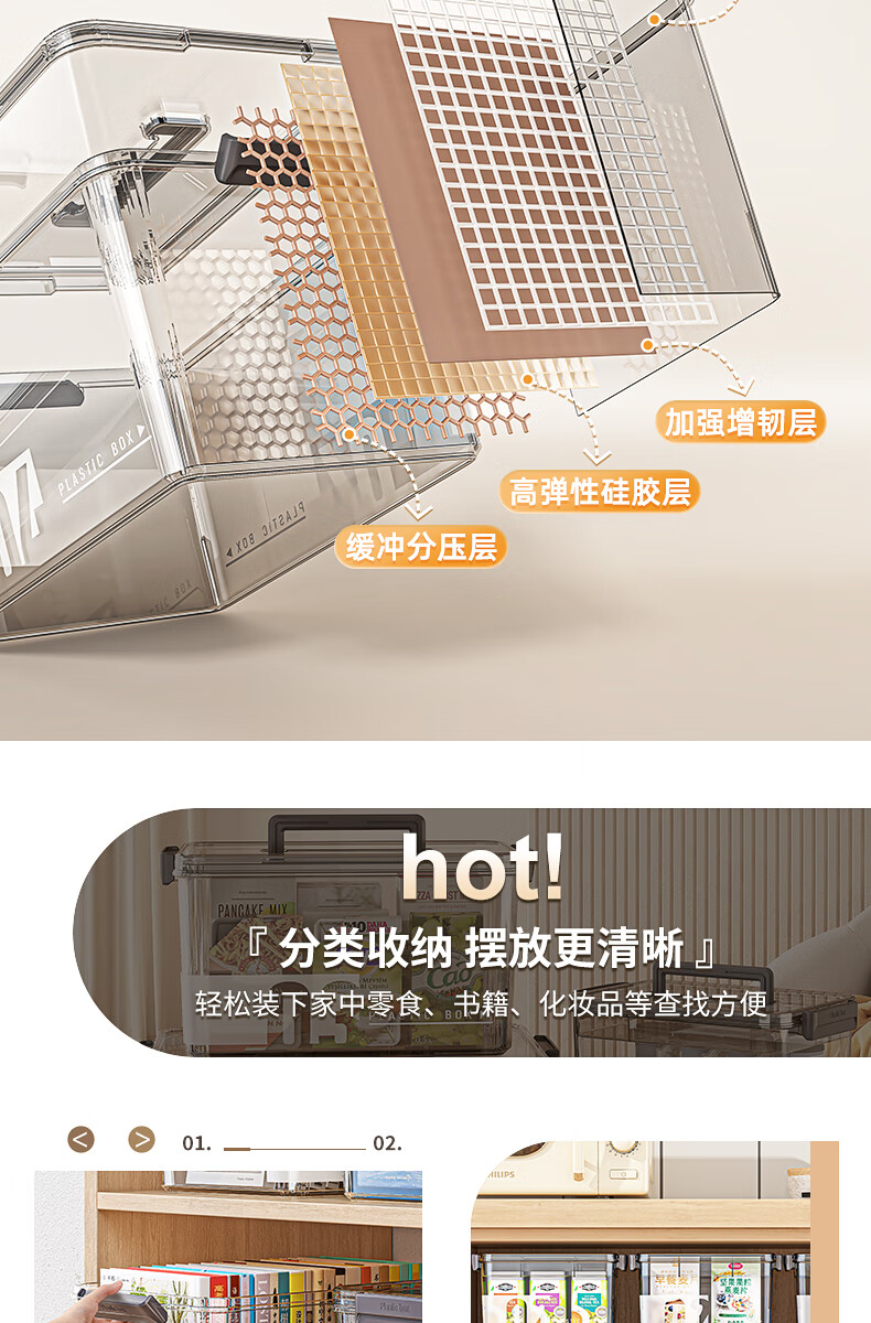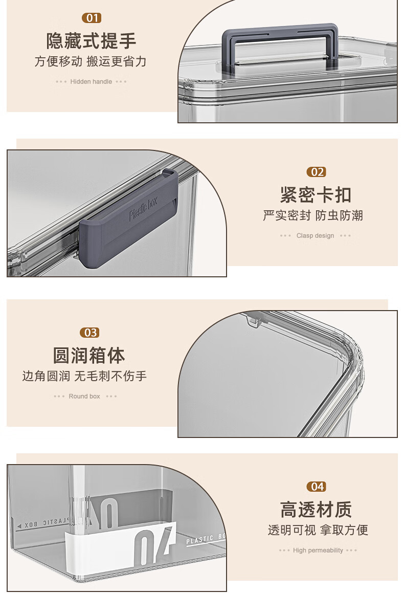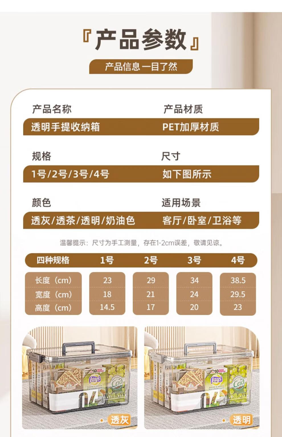 Wiayunuo transparent storage box portable transparent storage box household toys books plastic thickening storage box snacks desktop storage transparent gray - PET material four suitcases No. 1 + No. 2 + No. 3 + No. 4