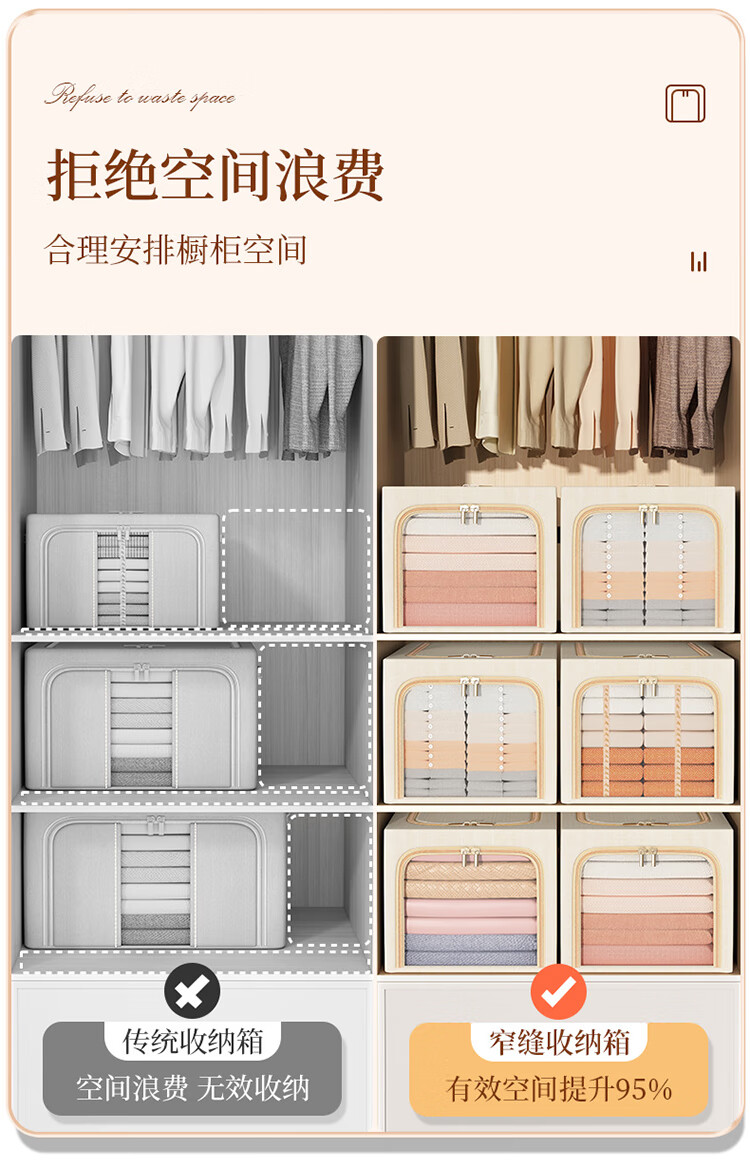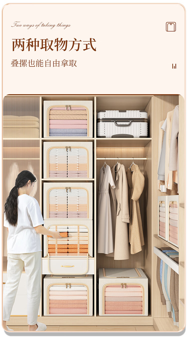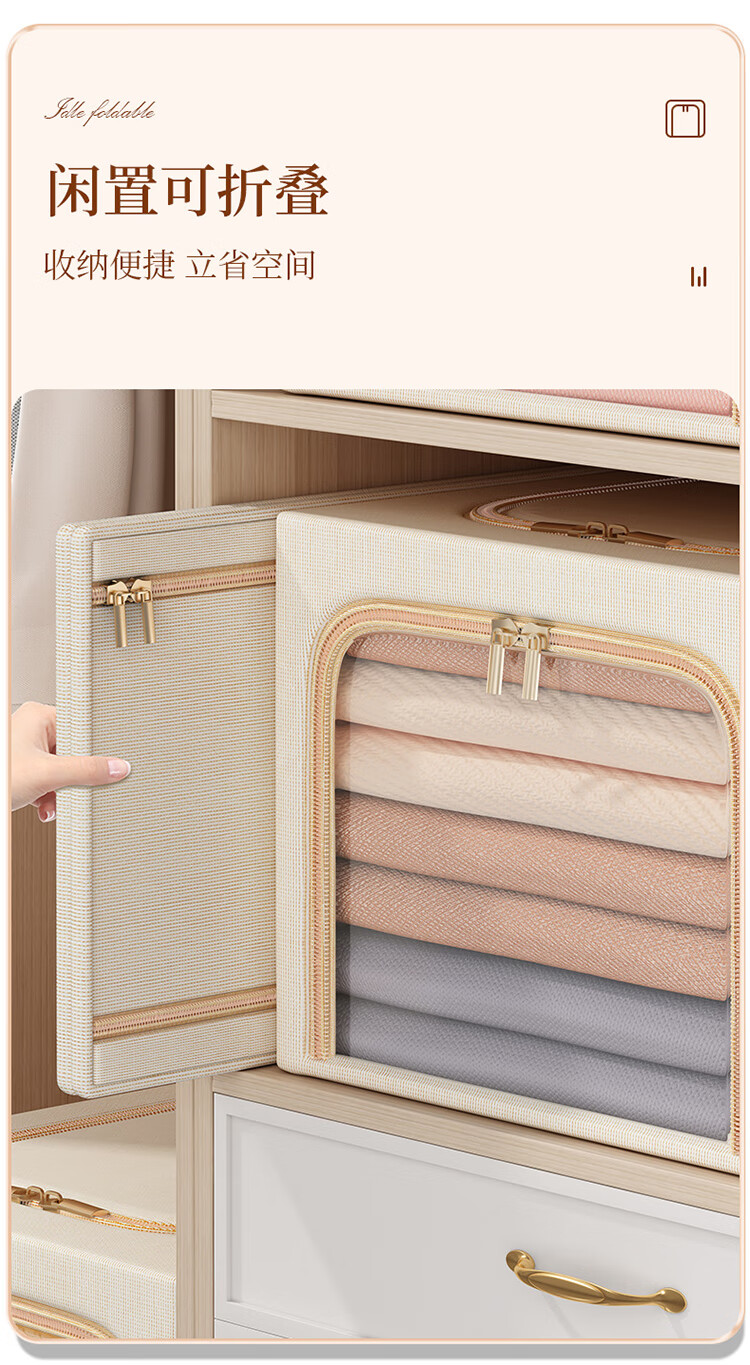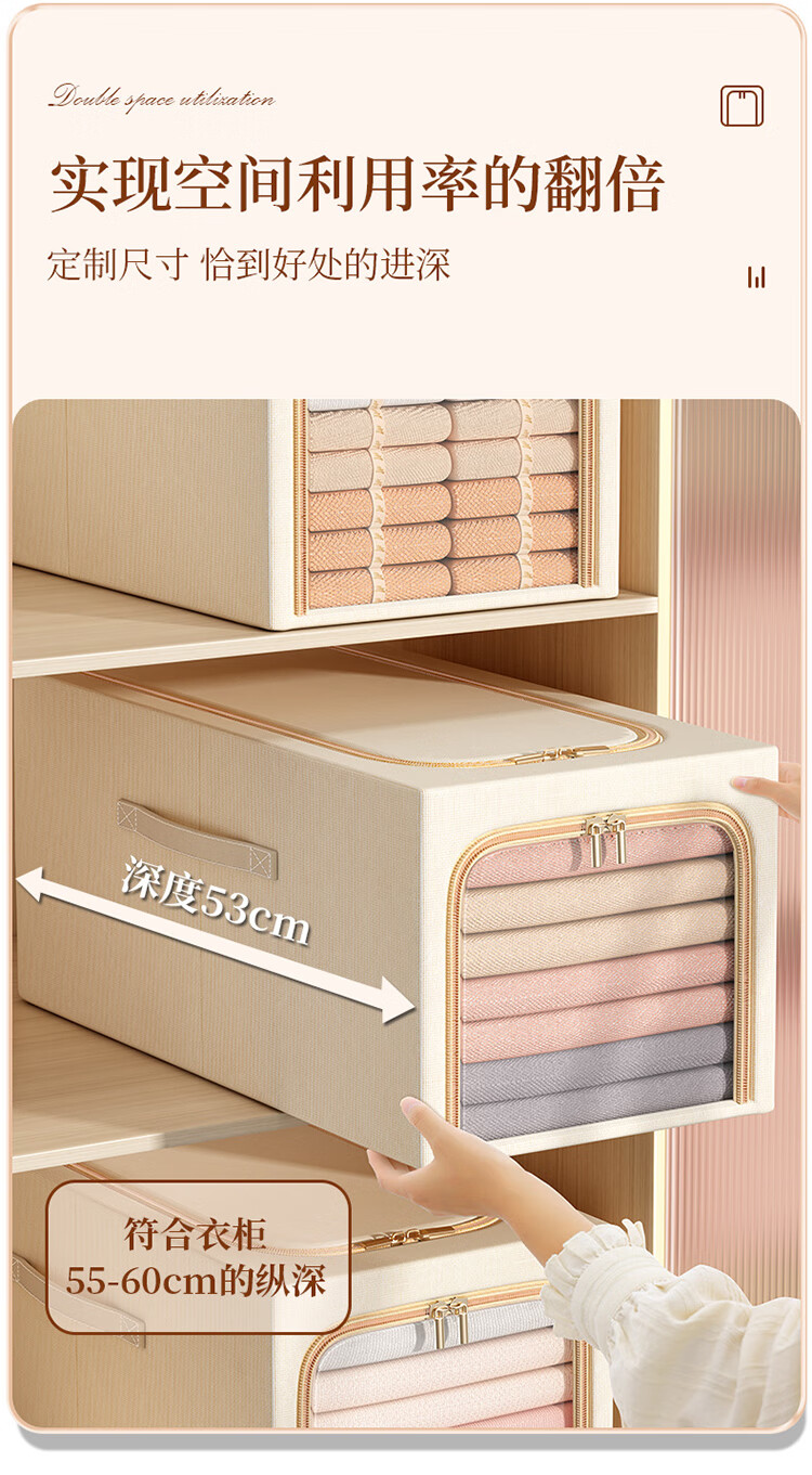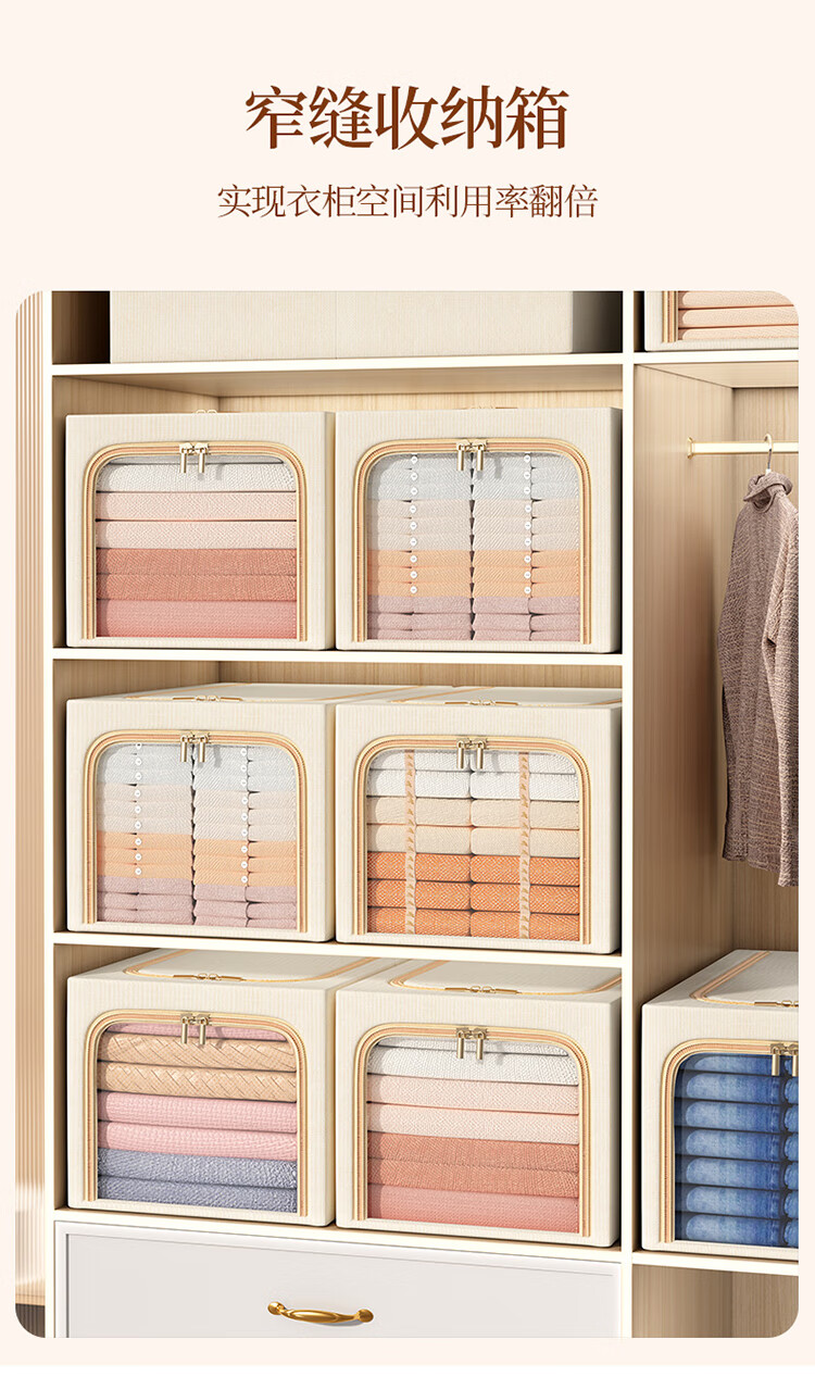 Wanyue Large Window Clothes Cabinet Storage Box 56L Beige