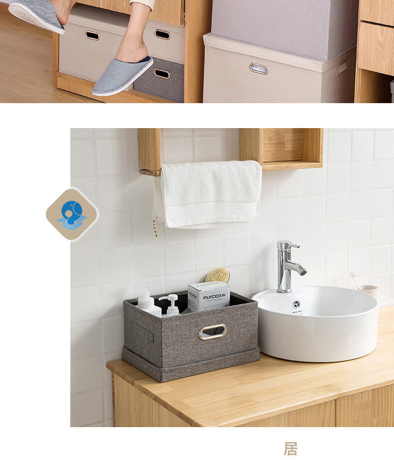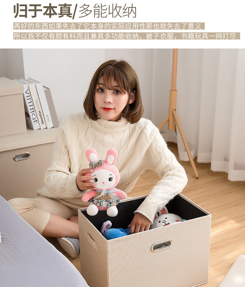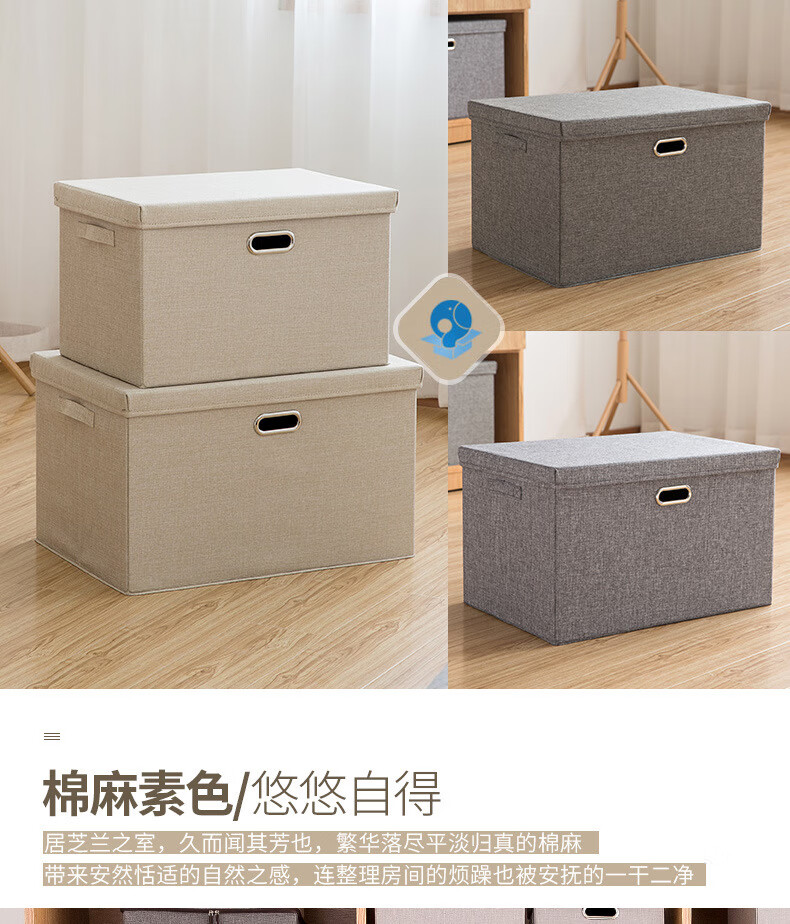 Jungle Deer Clothes Storage Box Home Wardrobe Layered Organizing Box for Clothes and Pants Fabric Cotton and Linen Folding Storage Basket Artifact Gray Medium (32*27*26cm)