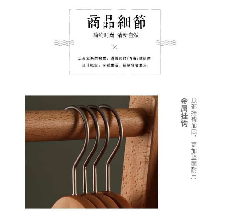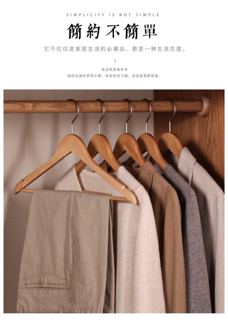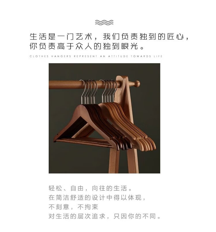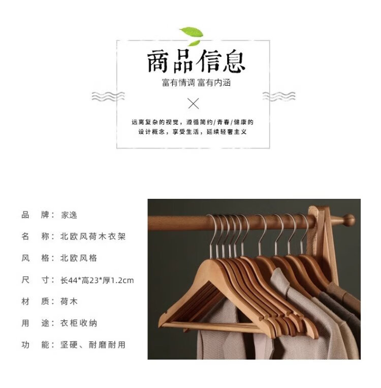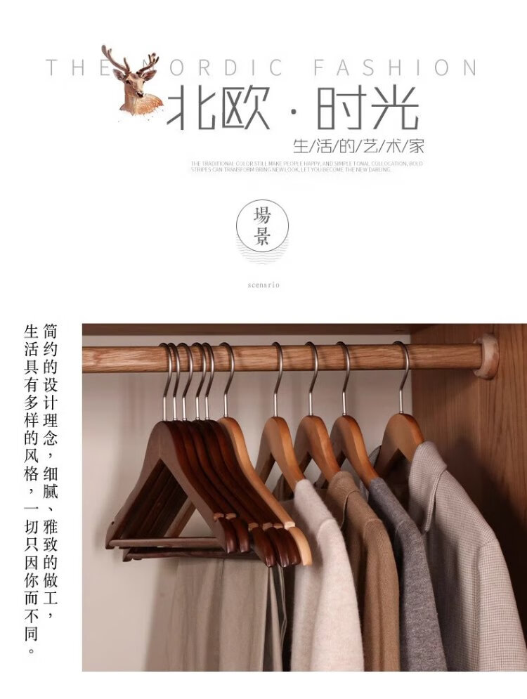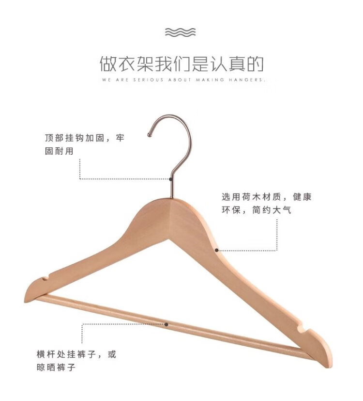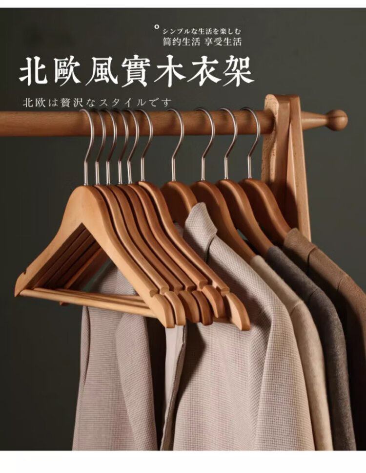 Jiayi solid wood clothes hanger suit clothes support dry and wet dual-use clothes hanger drying clothes rack solid wood color 10 pieces