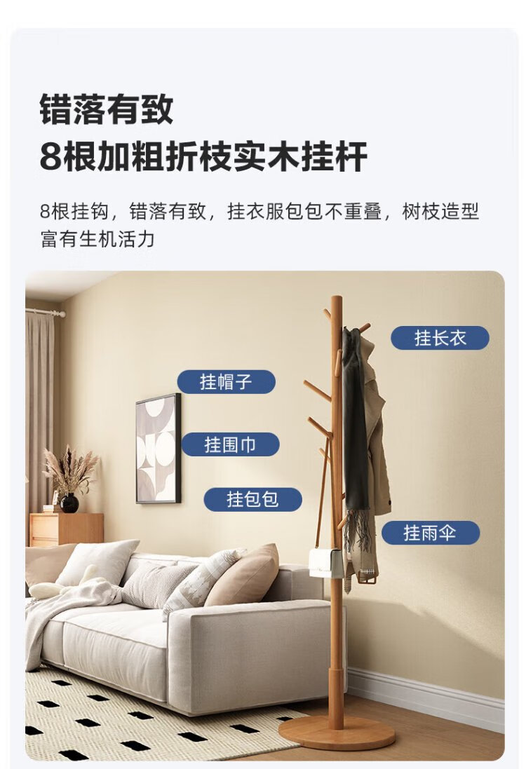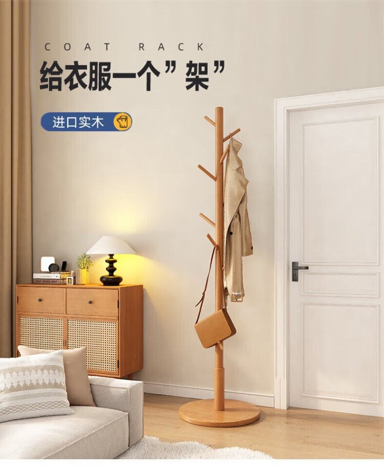 Jiayi coat rack, bedroom clothes rack, floor-standing solid wood clothes rack, office clothes rack, living room clothes drying rack