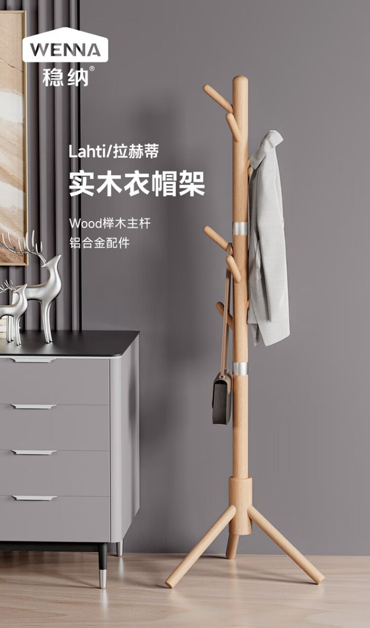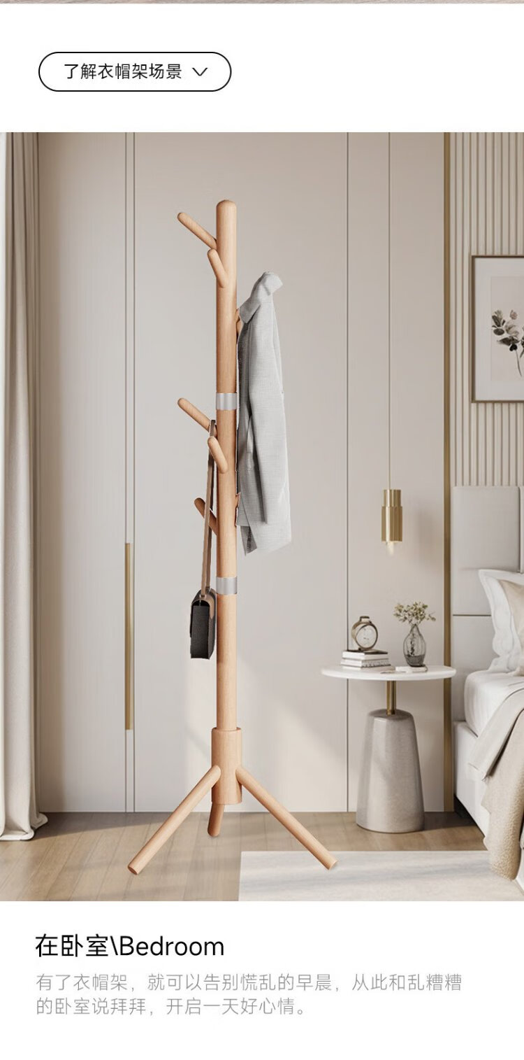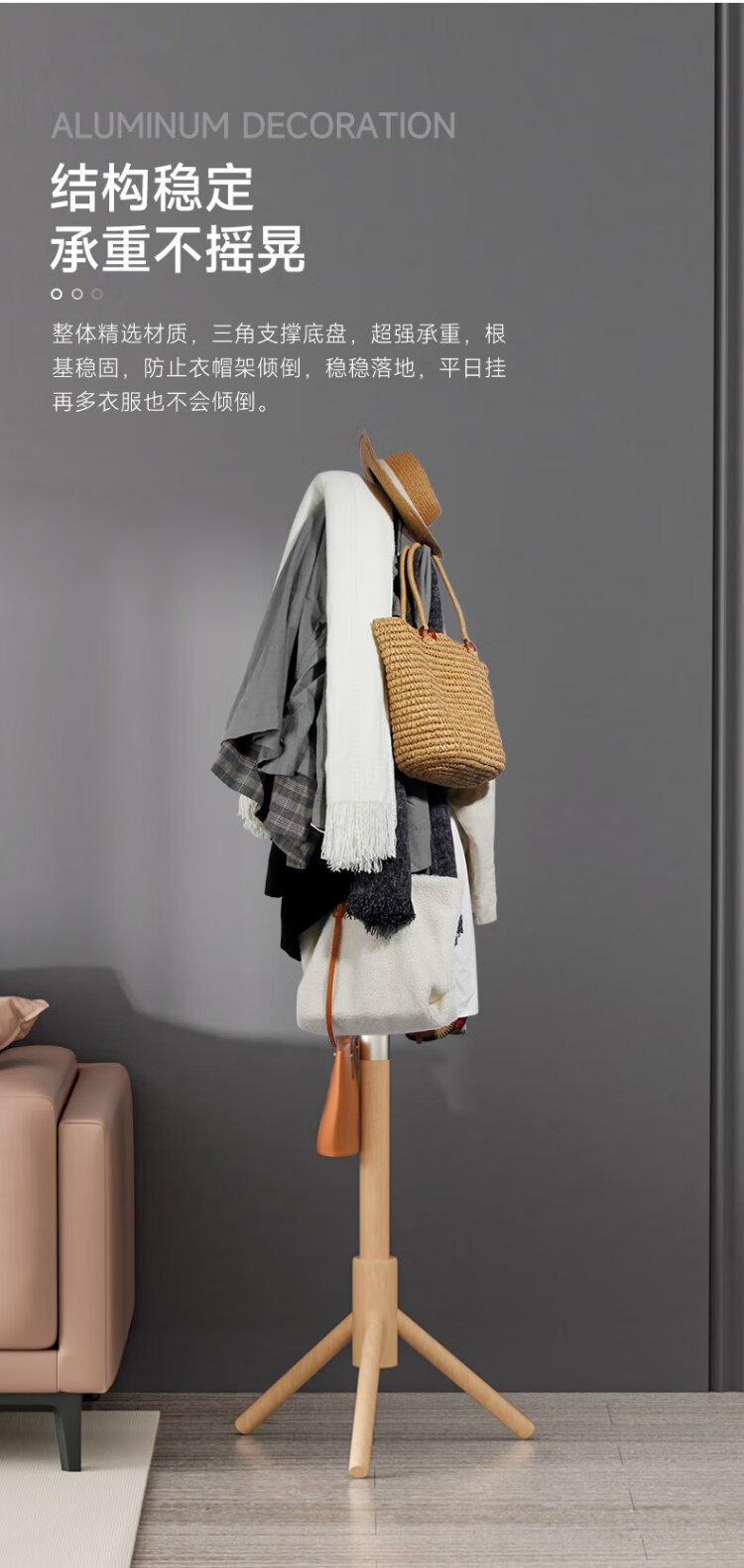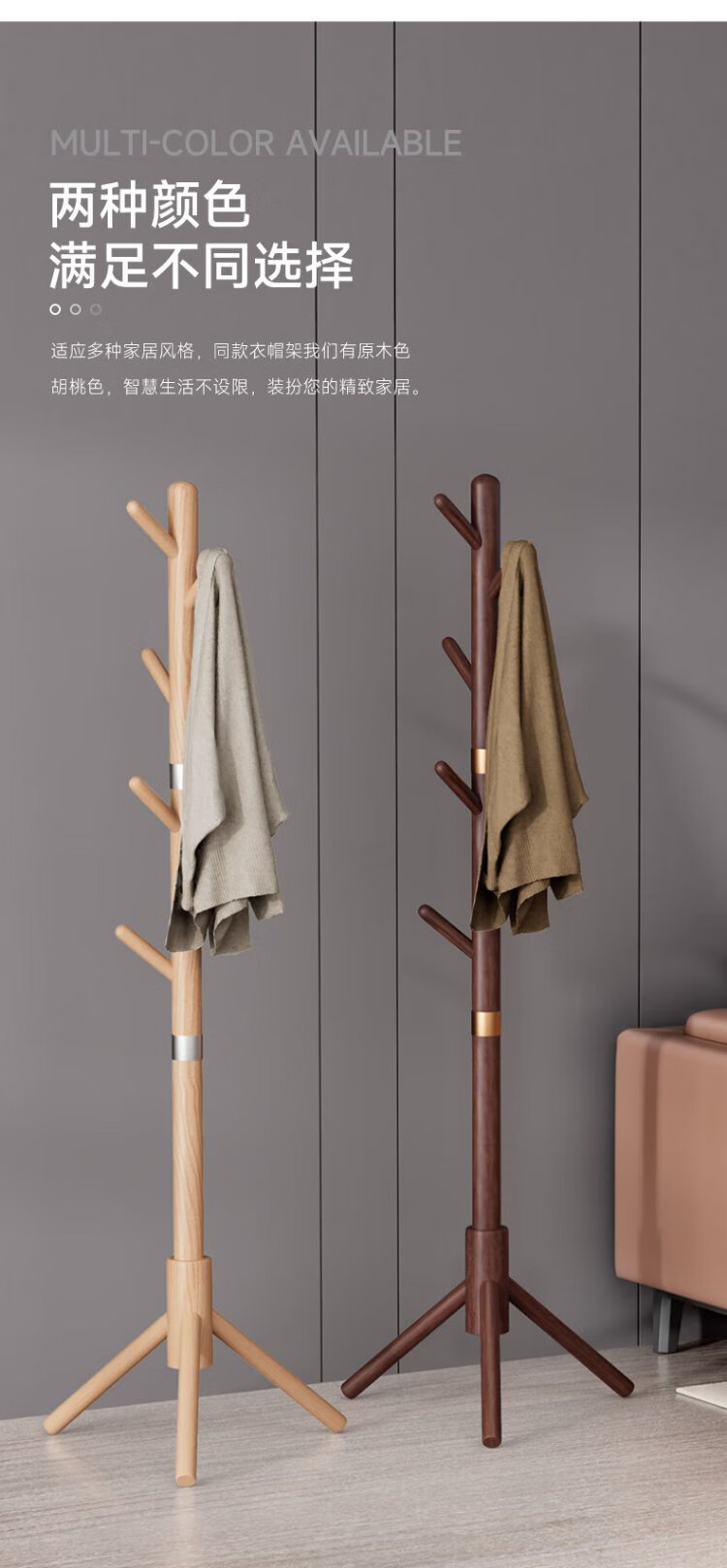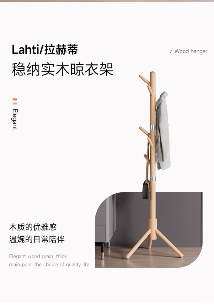 Wenna coat rack, floor-standing clothes hanger, solid wood clothes hanger, balcony bedroom clothes rack, solid wood color triangle style 3176Q