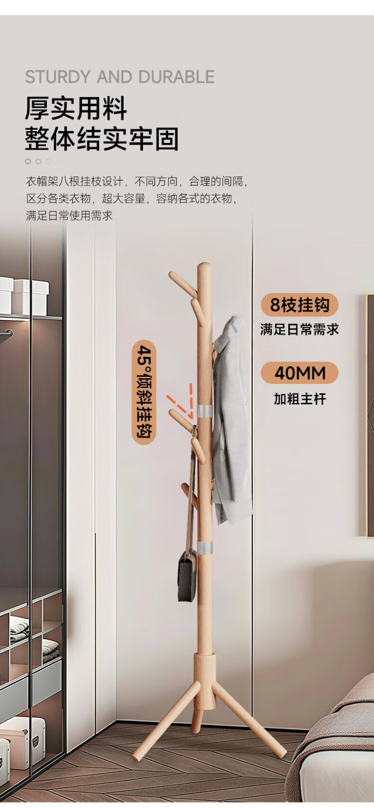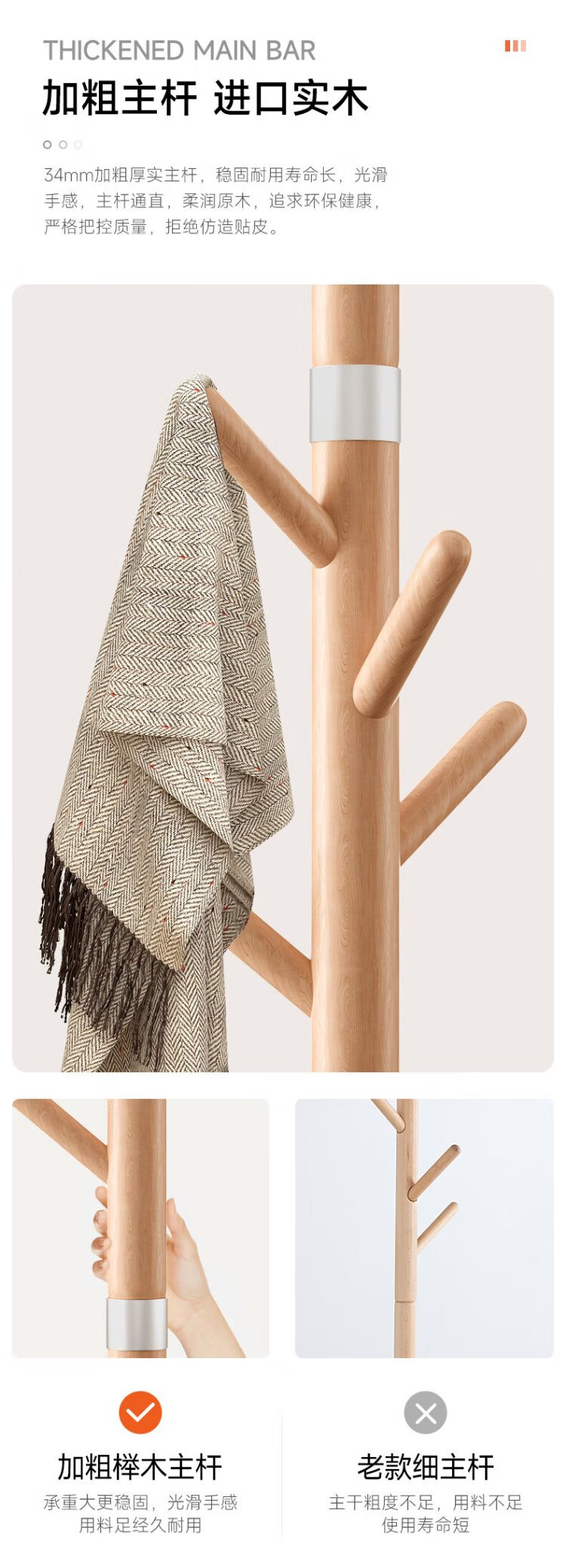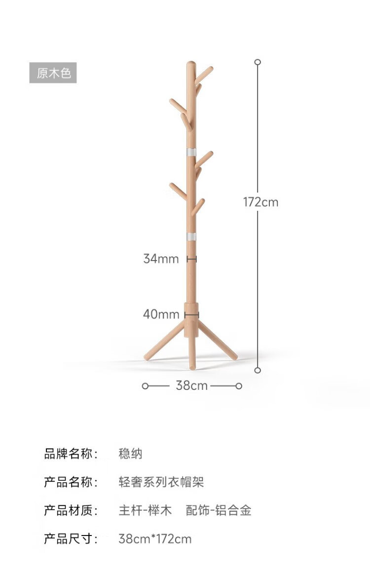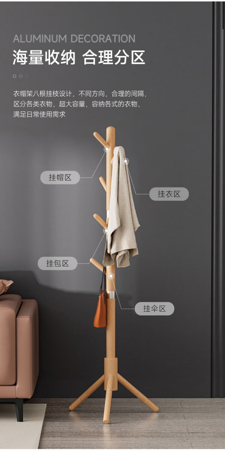 Wenna coat rack, floor-standing clothes hanger, solid wood clothes hanger, balcony bedroom clothes rack, solid wood color triangle style 3176Q