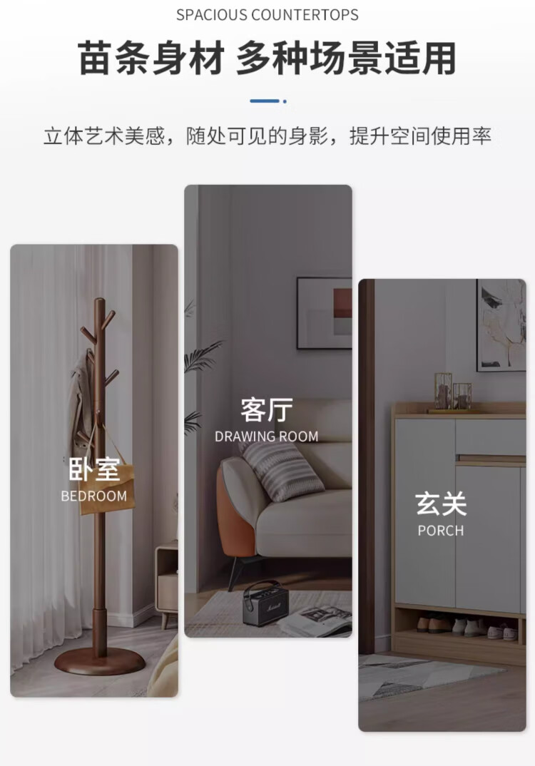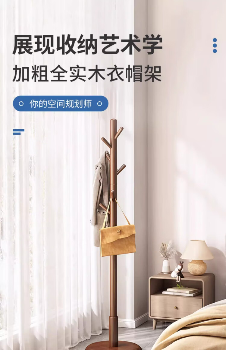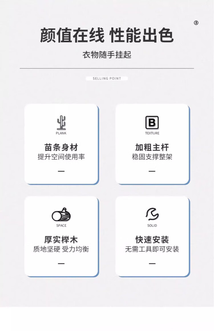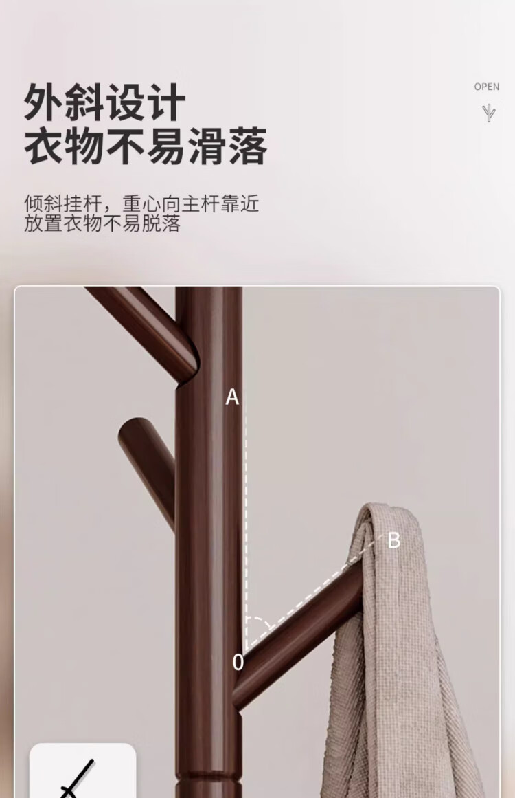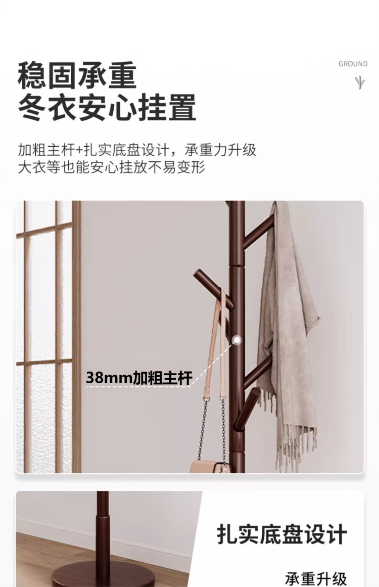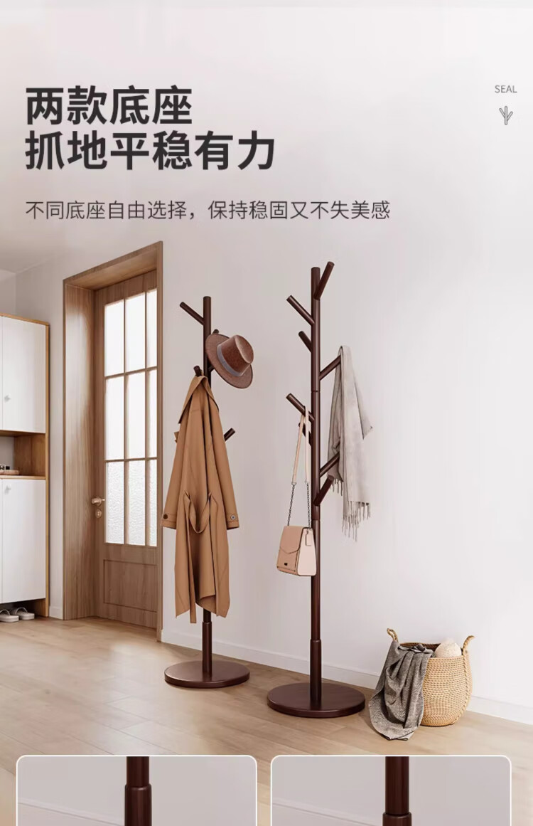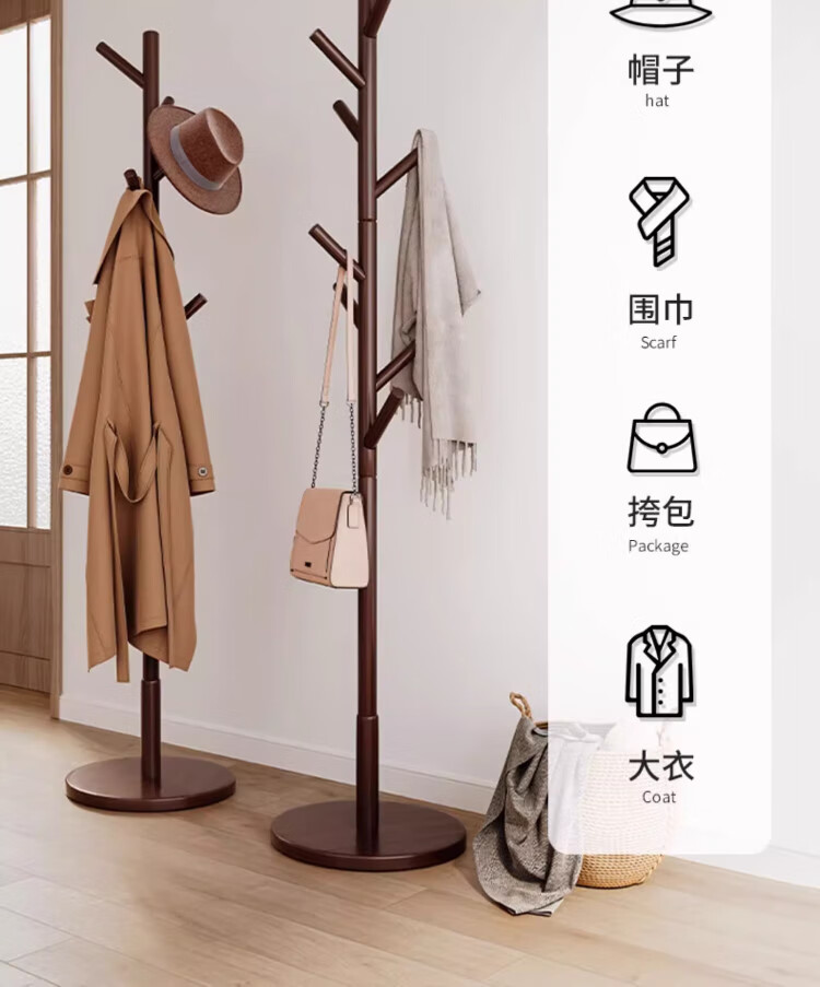 Quanpinwu beech solid wood coat rack floor-standing bedroom office clothes rack simple clothes hanger simple multi-hook clothes rack