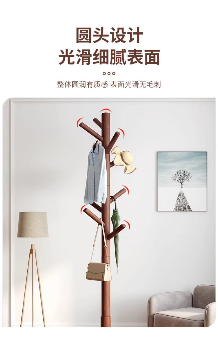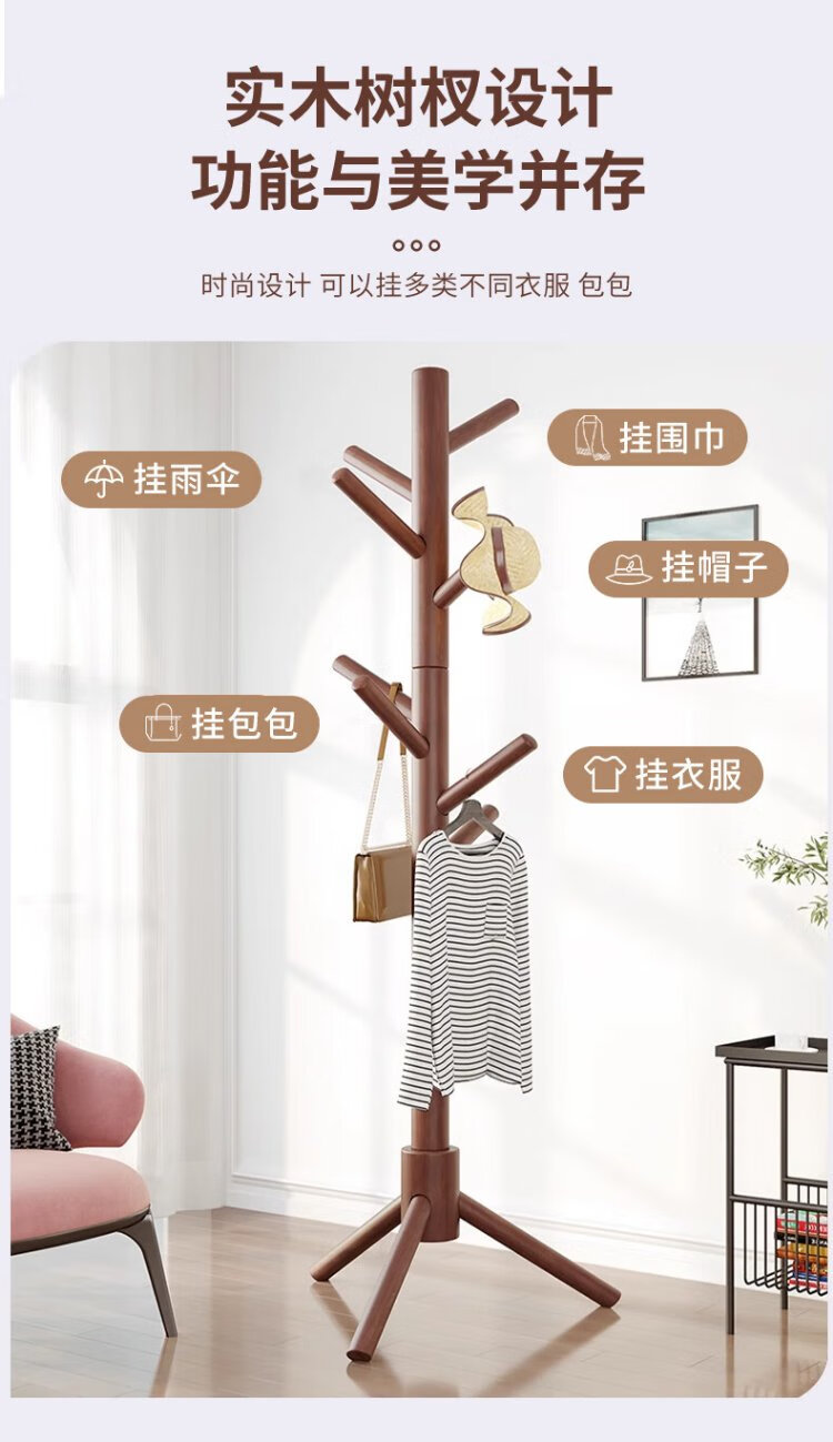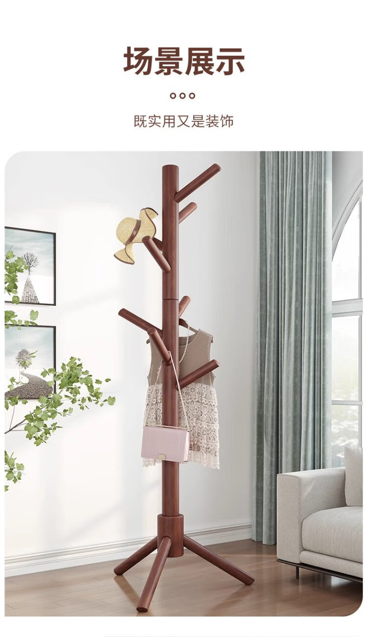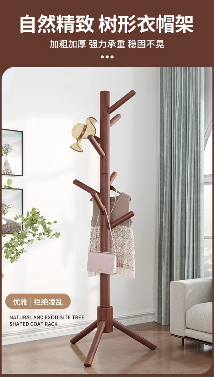 Jiuqiangu floor-standing coat rack beech solid wood coat rack bedroom living room office coat rack clothes rack simple vertical rack