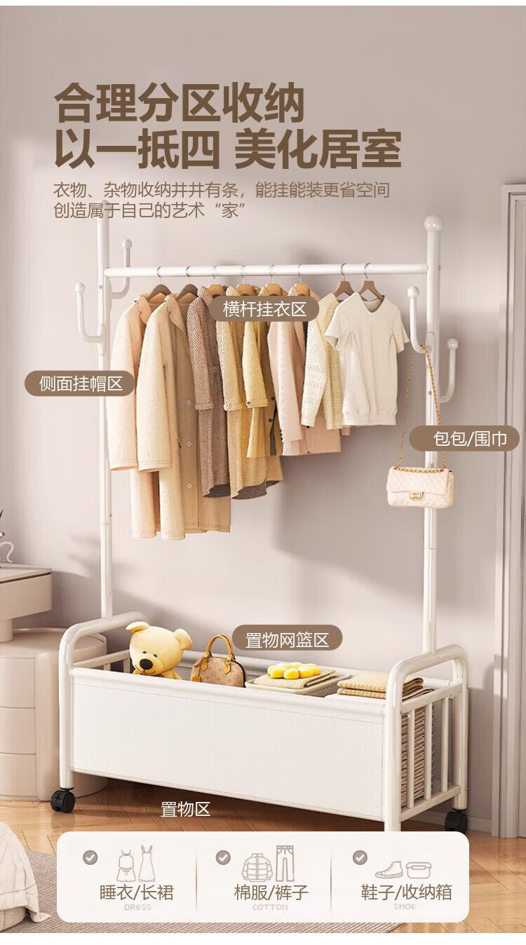 Yupin clothes hanger floor-standing coat rack hanging clothes rack bedroom living room removable clothes storage rack YJ139 white 80