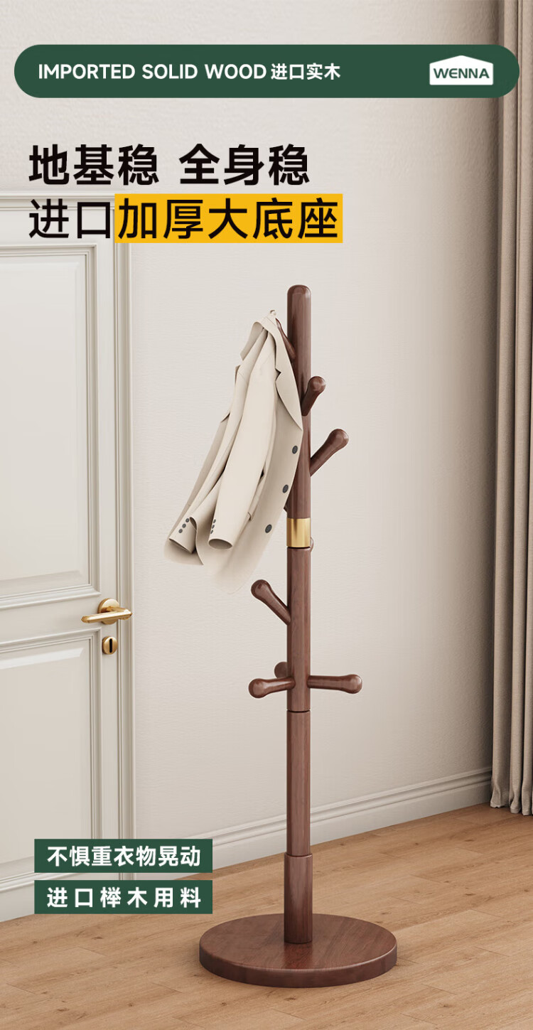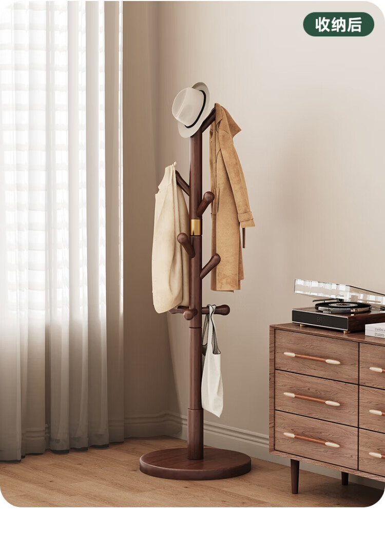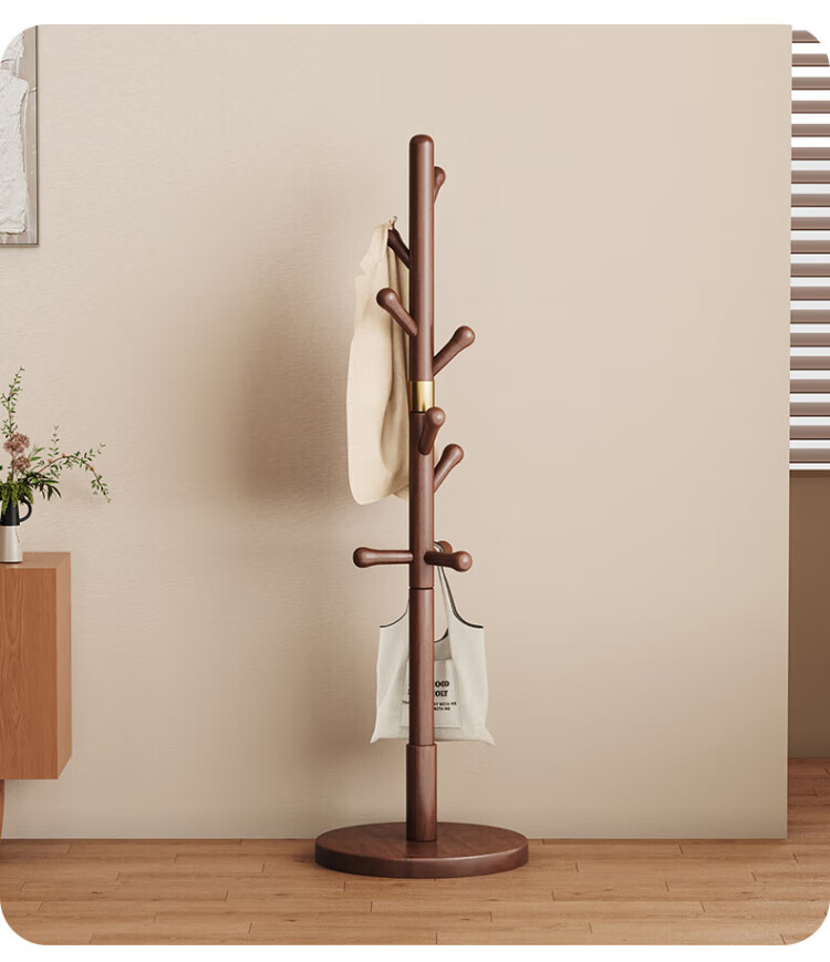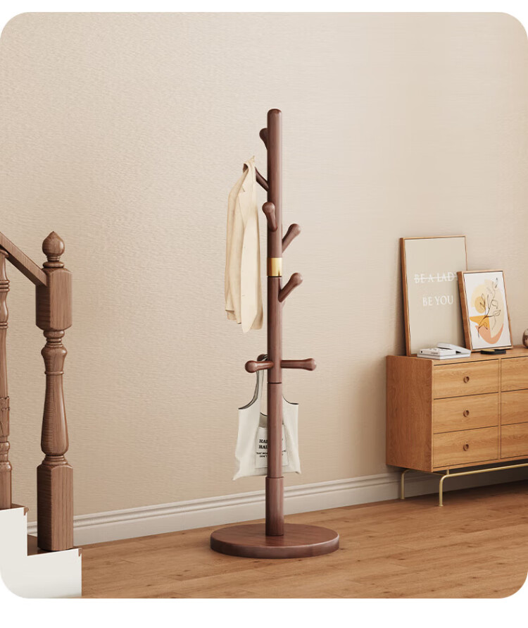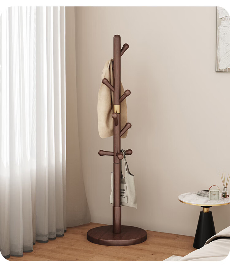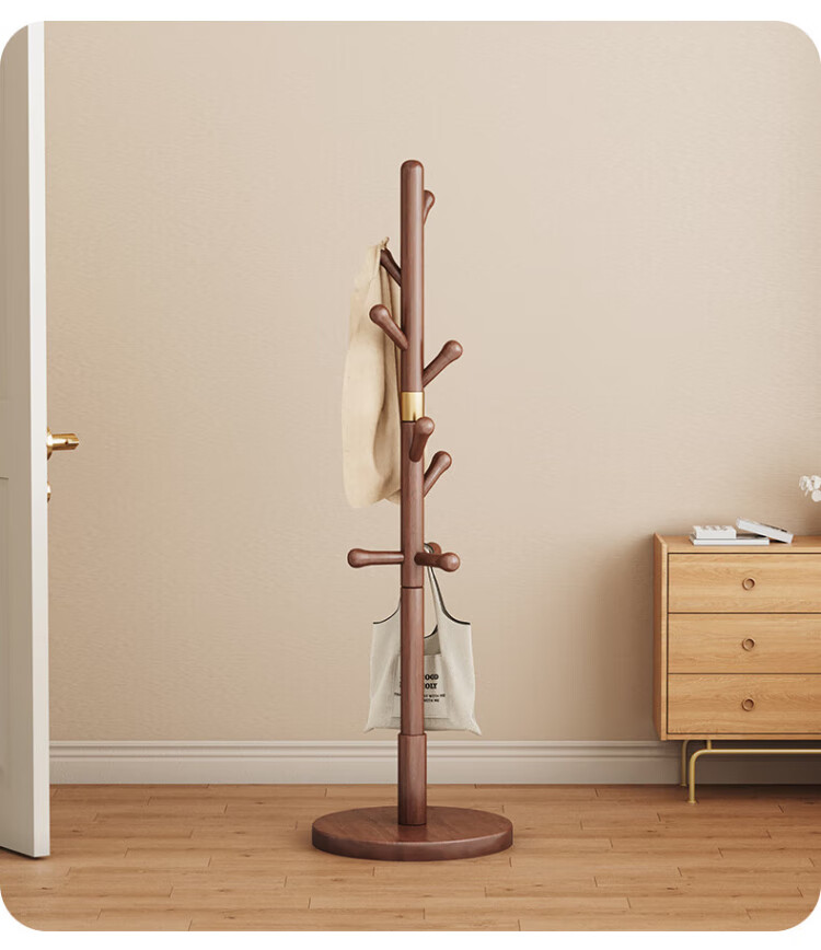 Wenna solid wood coat rack solid wood floor hanging clothes rack bedroom clothes rack walnut color round bottom