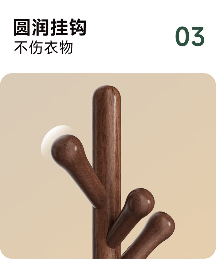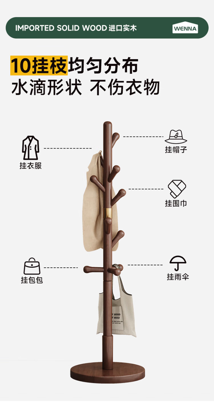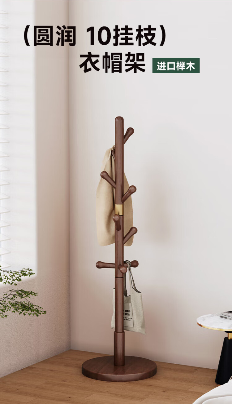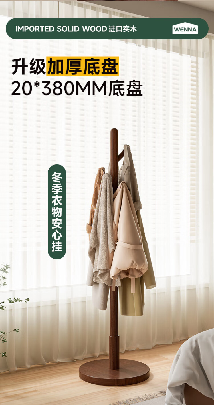Wenna solid wood coat rack solid wood floor hanging clothes rack bedroom clothes rack walnut color round bottom
