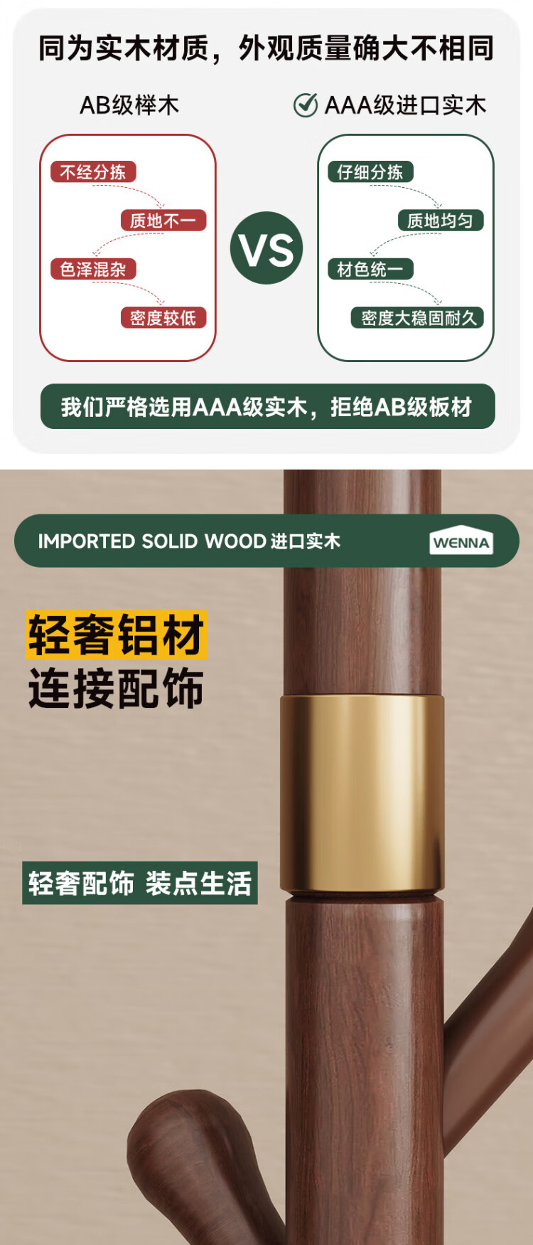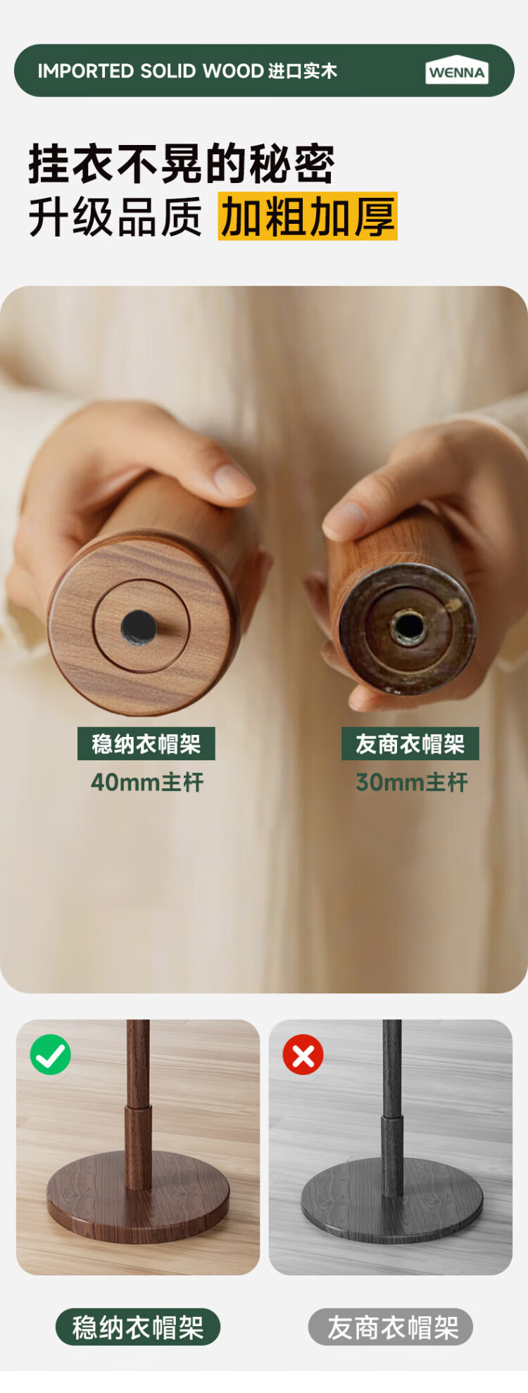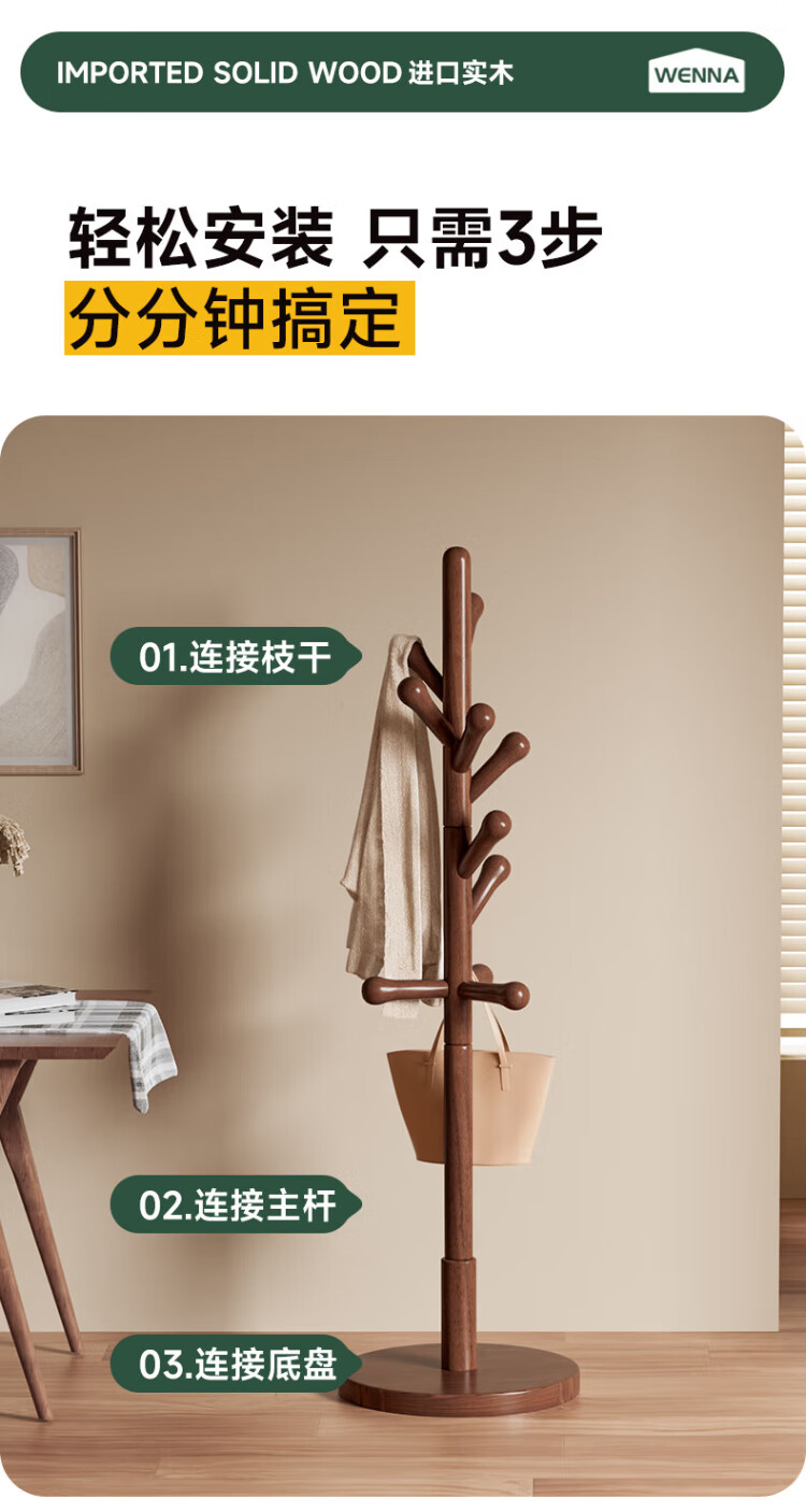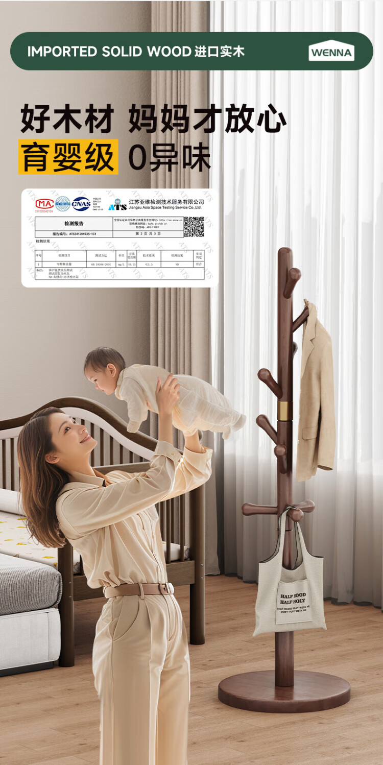 Wenna solid wood coat rack solid wood floor hanging clothes rack bedroom clothes rack walnut color round bottom