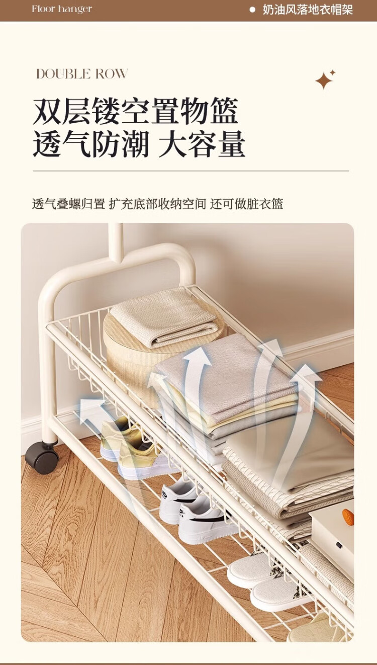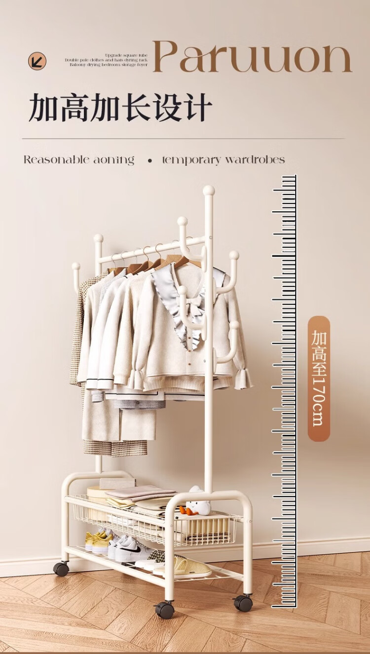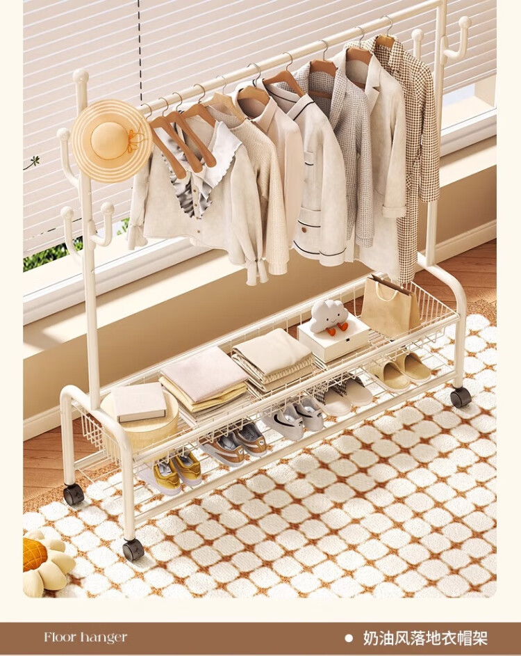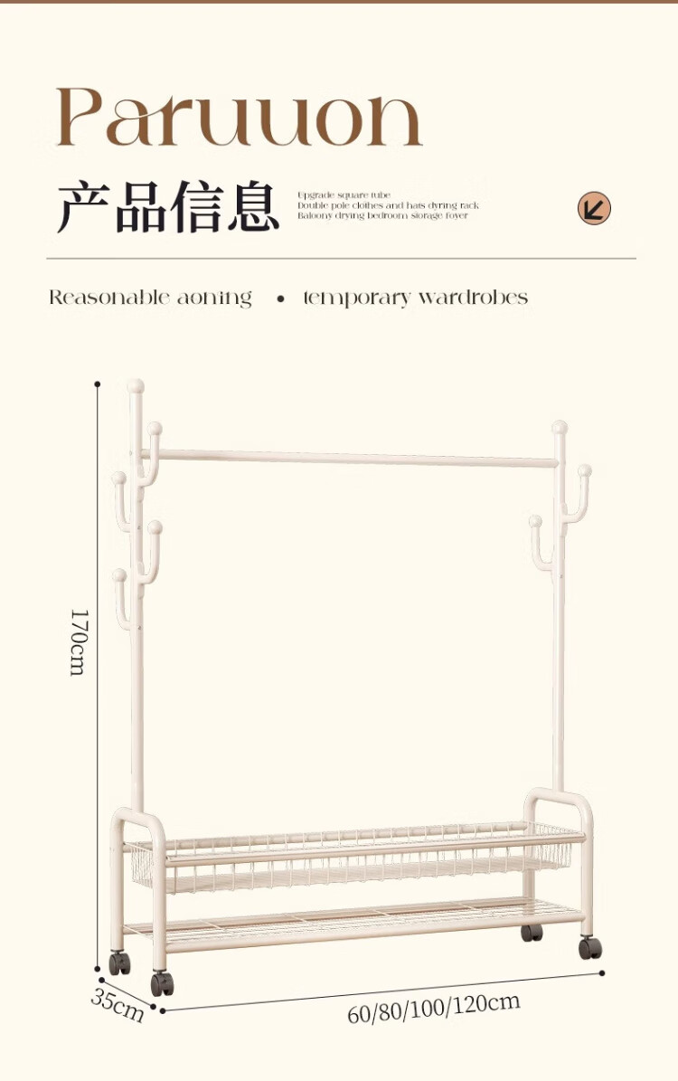 Yimo coat rack movable floor-standing home bedroom iron storage shoe and hat hanging clothes rack 60 double layers - white