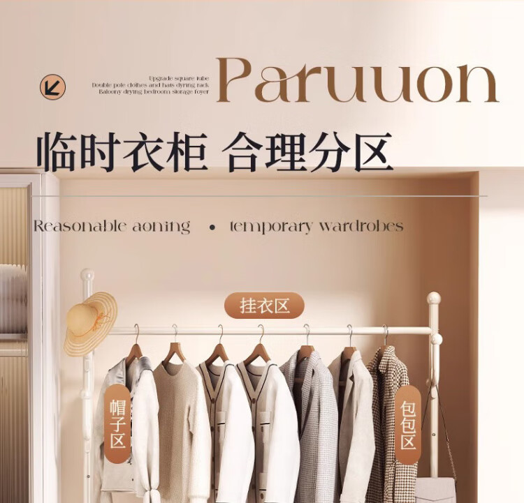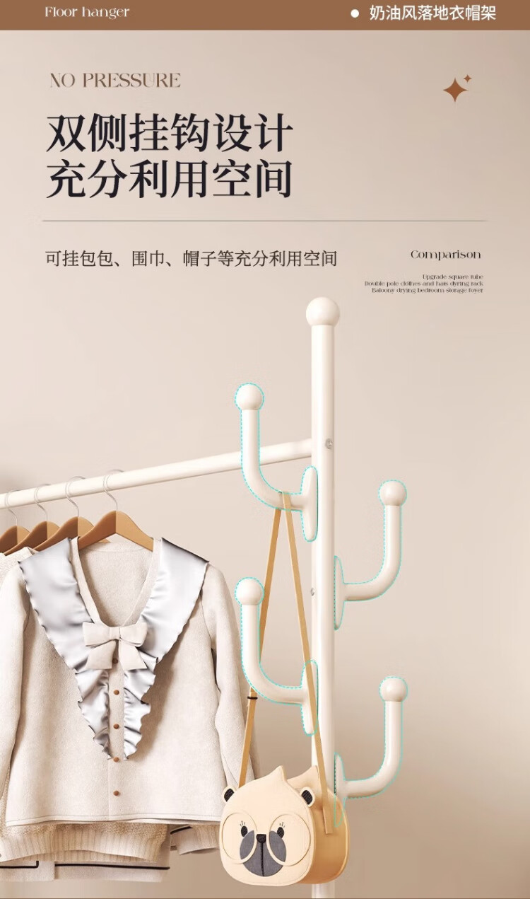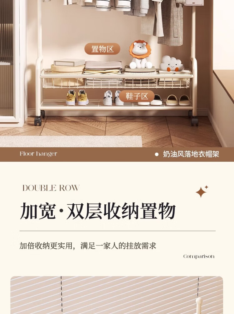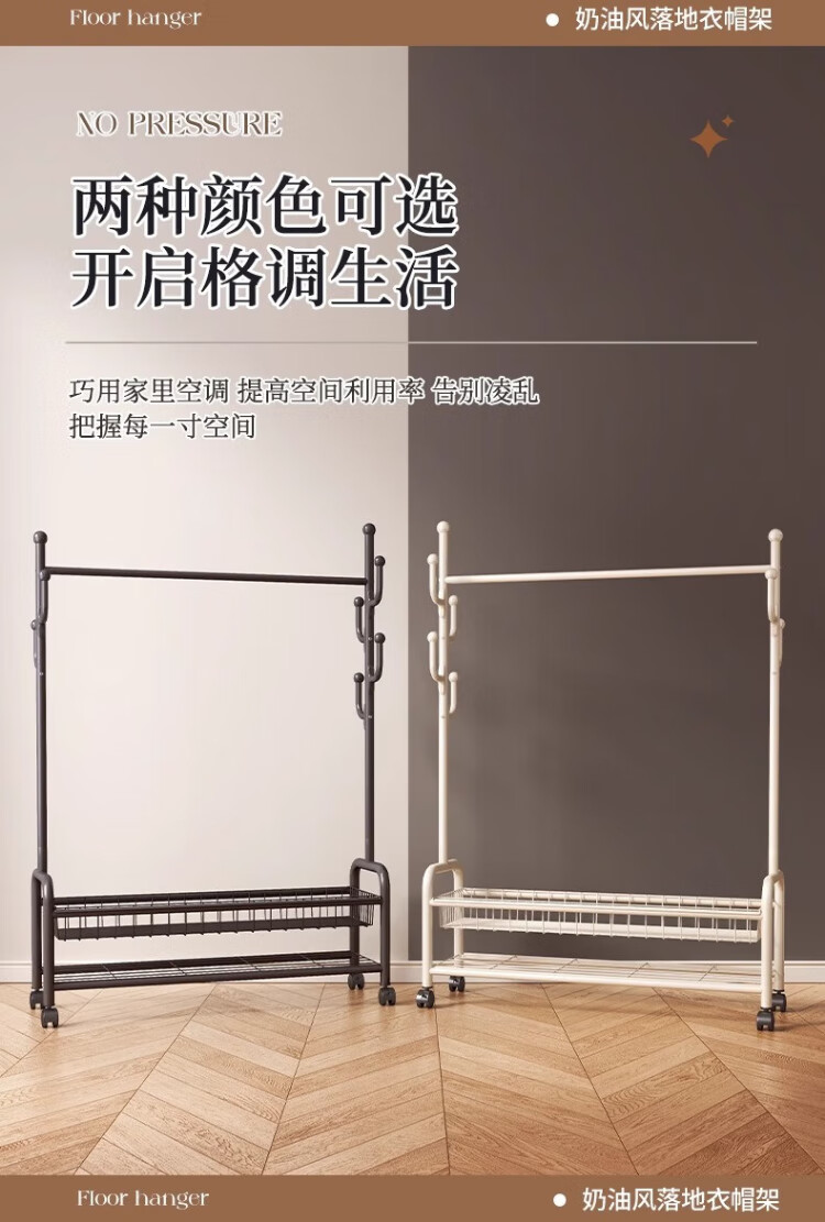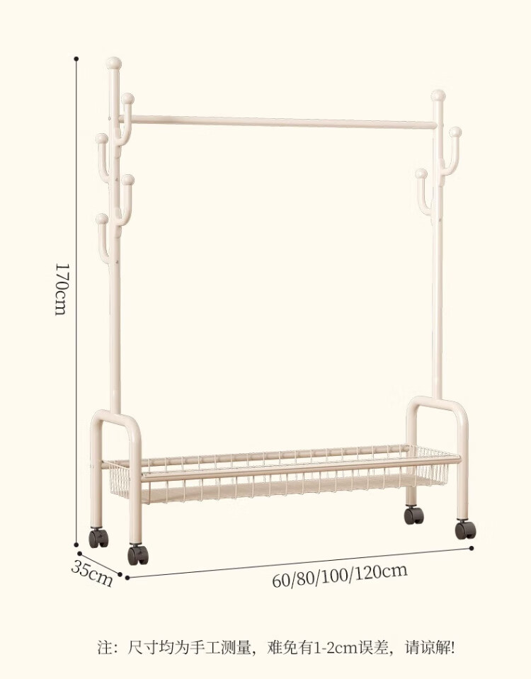 Yimo coat rack movable floor-standing home bedroom iron storage shoe and hat hanging clothes rack 60 double layers - white