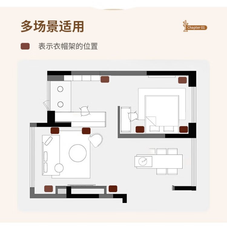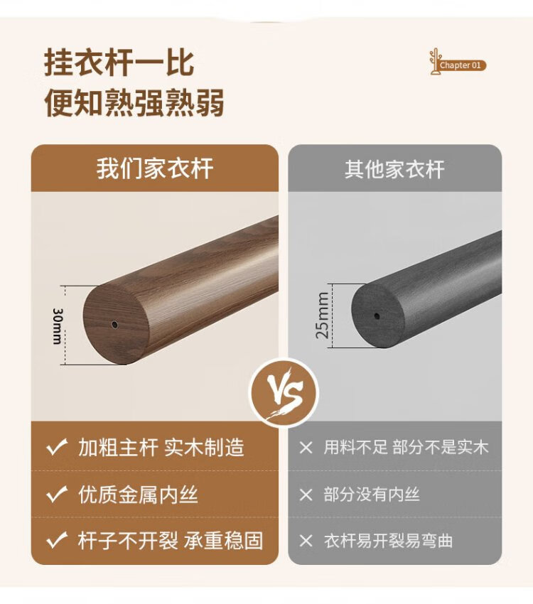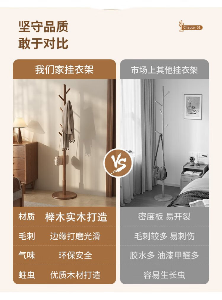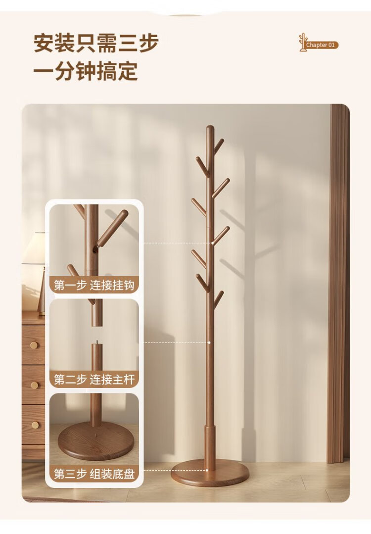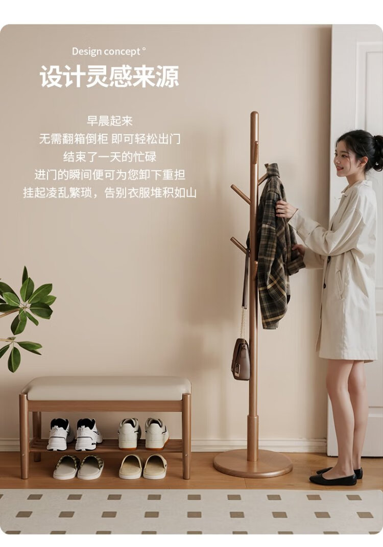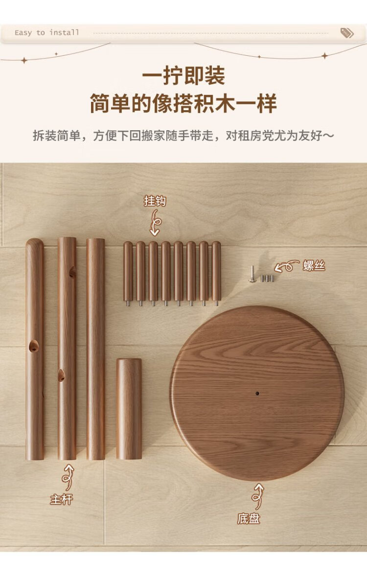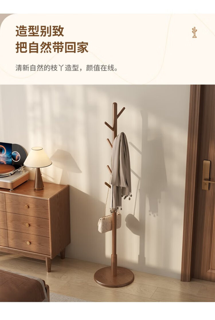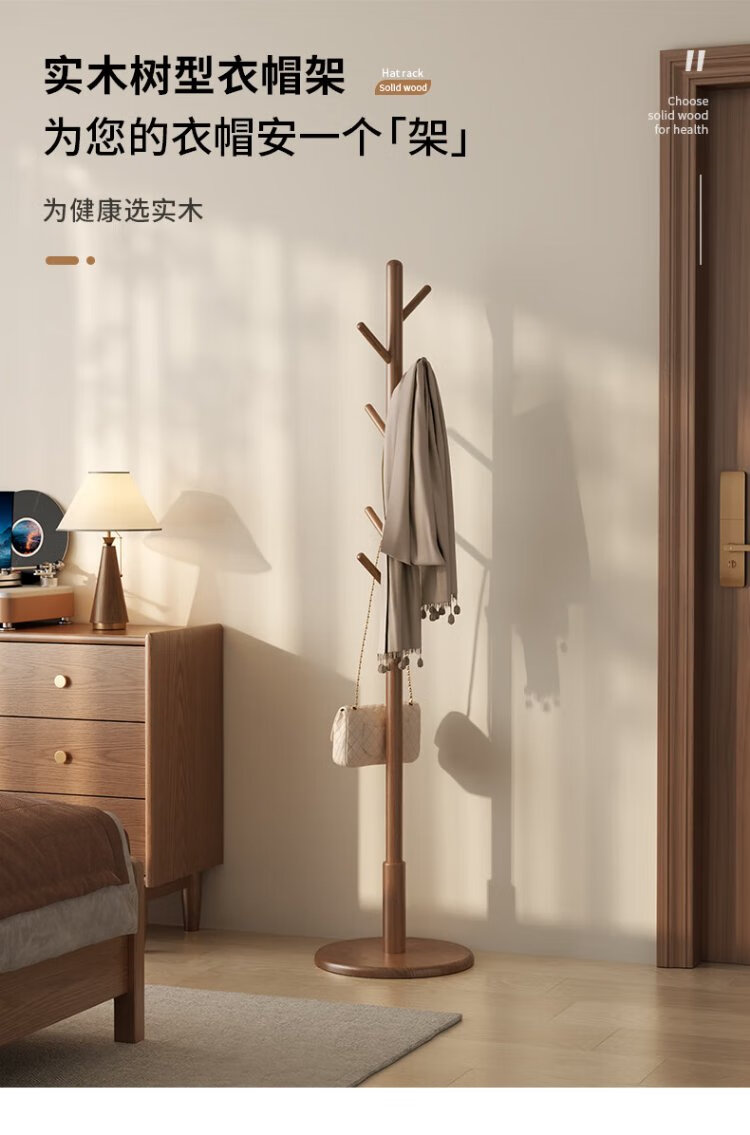 Editor-in-chief Xiang's coat rack solid wood clothes rack floor-standing vertical living room and bedroom special hanging clothes bag storage rack disc walnut