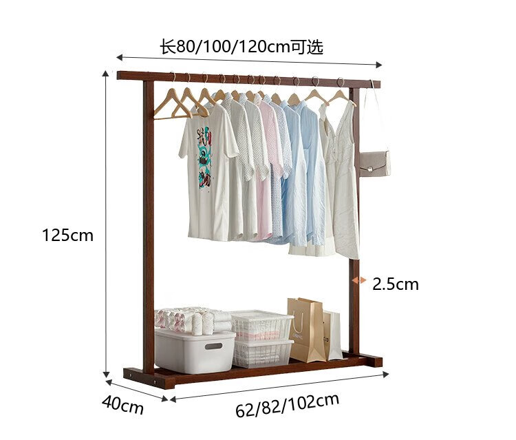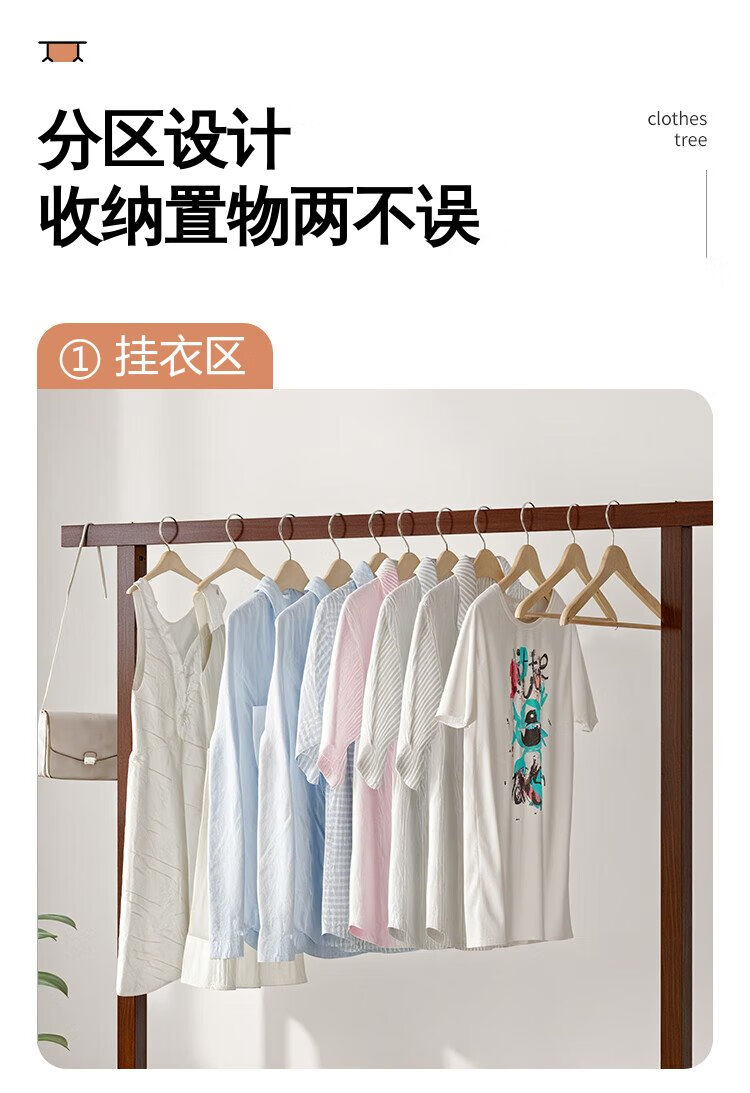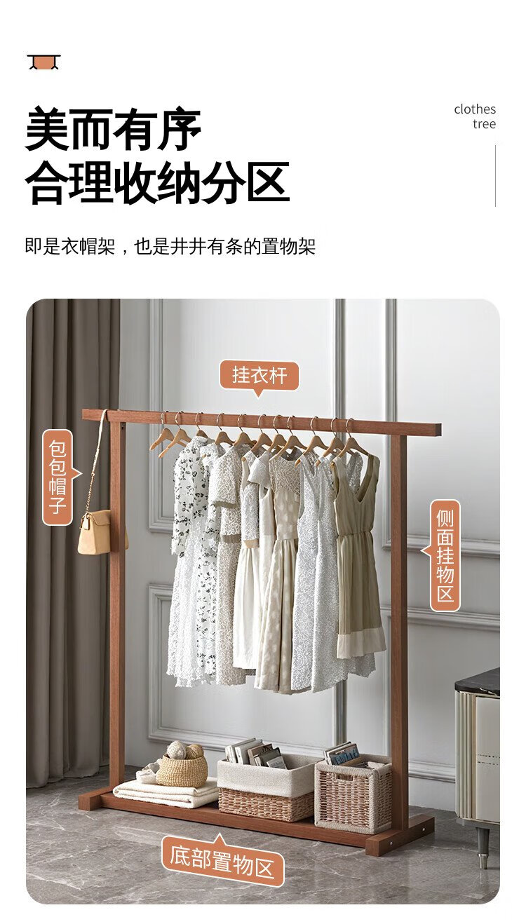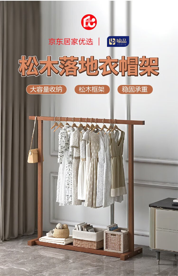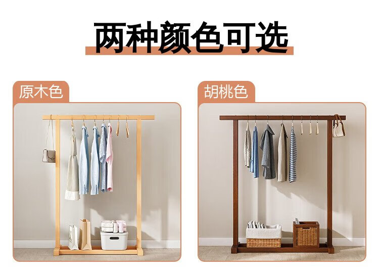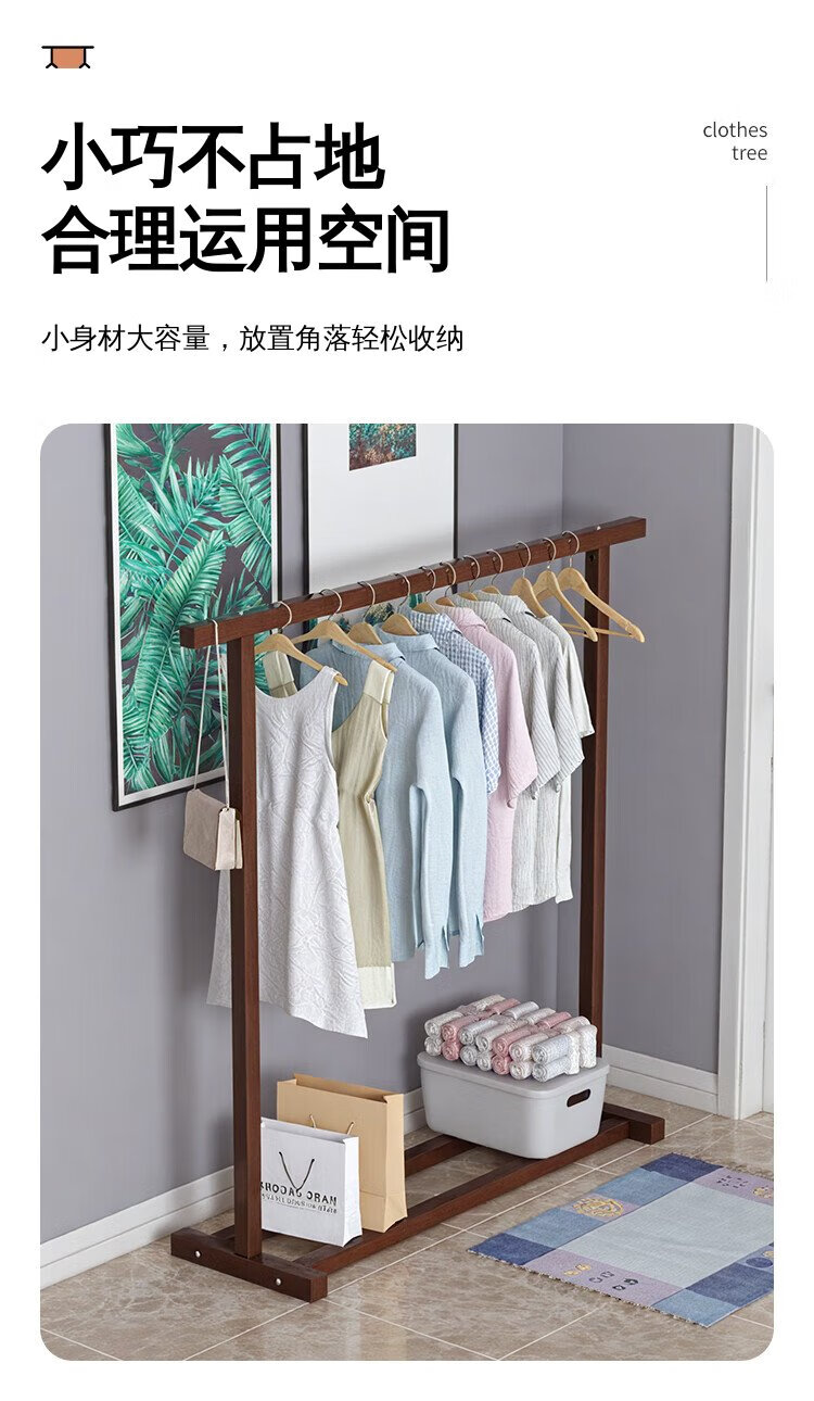 Yupin solid wood clothes hanger floor-standing bedroom coat rack single pole clothes drying rack simple indoor clothes rack MJ139 walnut color 120