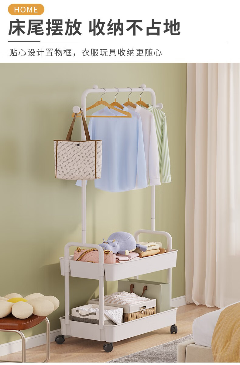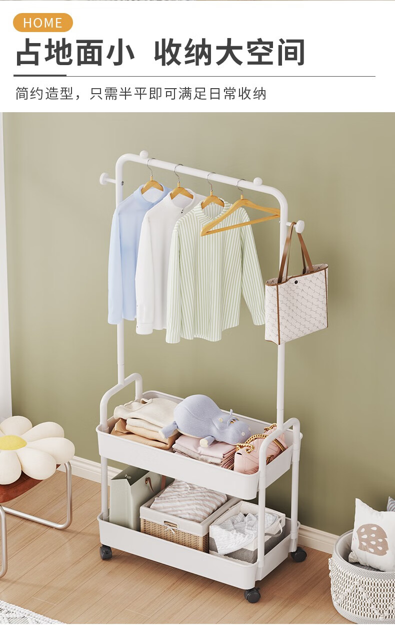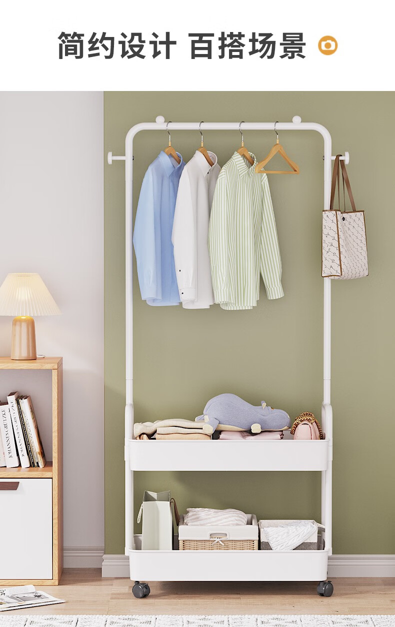 Lohas Time Double Layer Simple Clothes Rack Floor Standing Bedroom Clothes Rack Removable Coat Rack Home Multifunctional Clothes Rack Pearl White