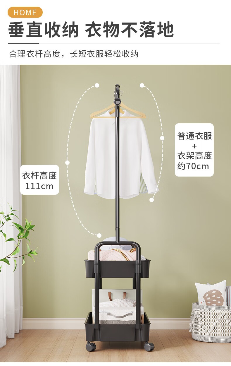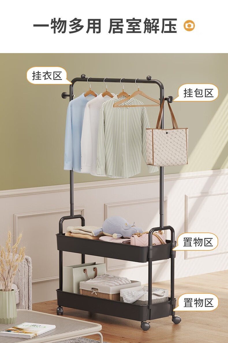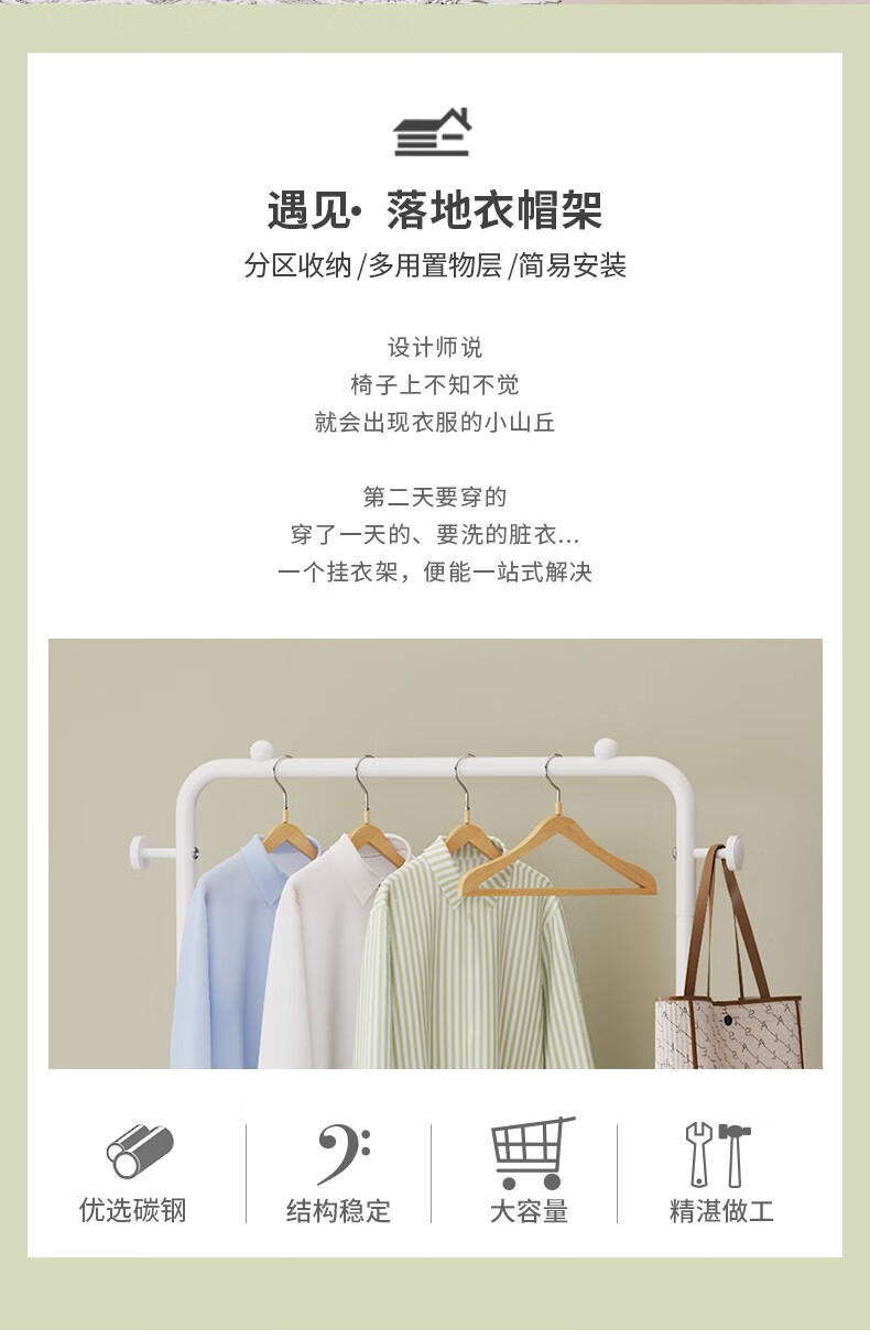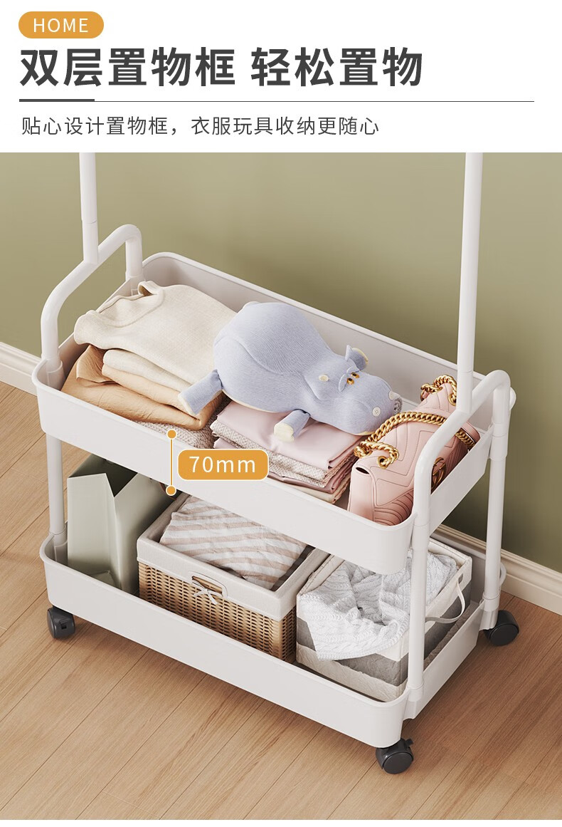 Lohas Time Double Layer Simple Clothes Rack Floor Standing Bedroom Clothes Rack Removable Coat Rack Home Multifunctional Clothes Rack Pearl White