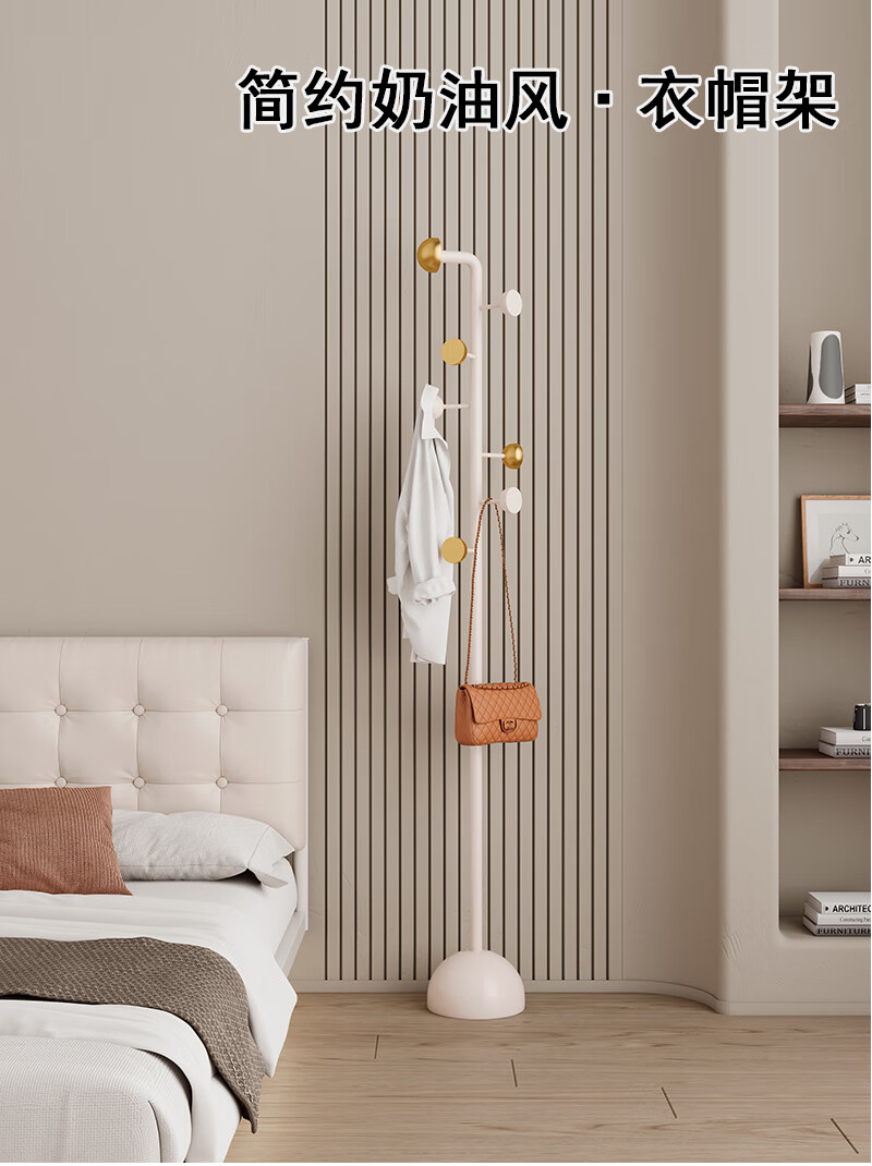 Yongqian simple modern clothes hanger floor-standing bedroom small clothes hanger Italian home coat rack entrance door clothes hanger cream style coat rack - milk white (semi-round bottom)
