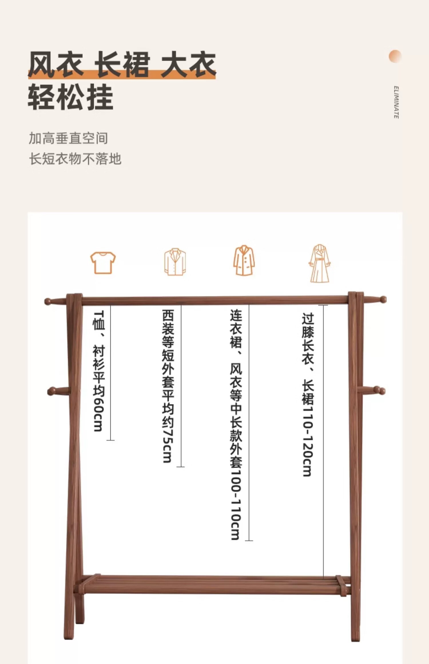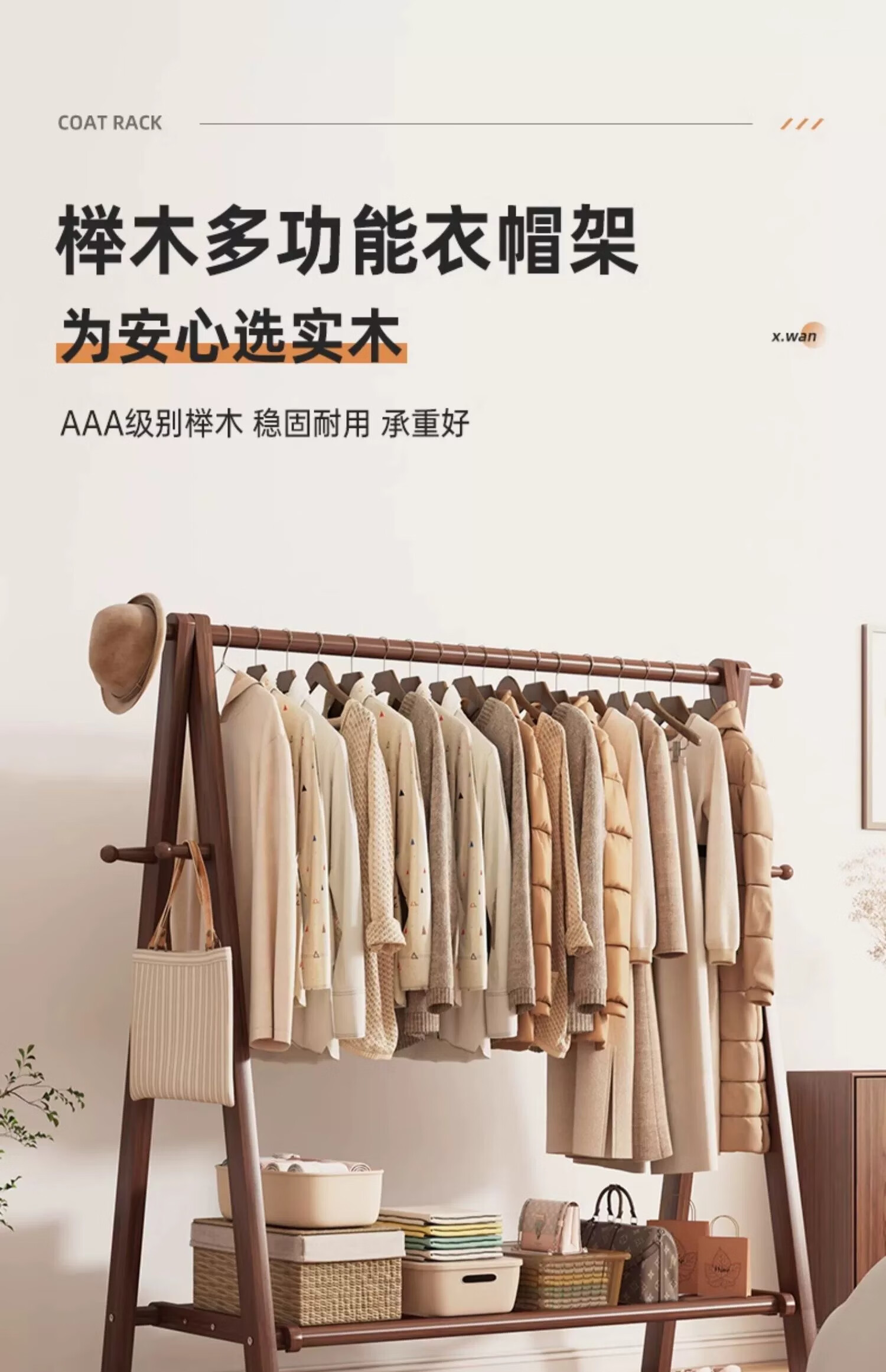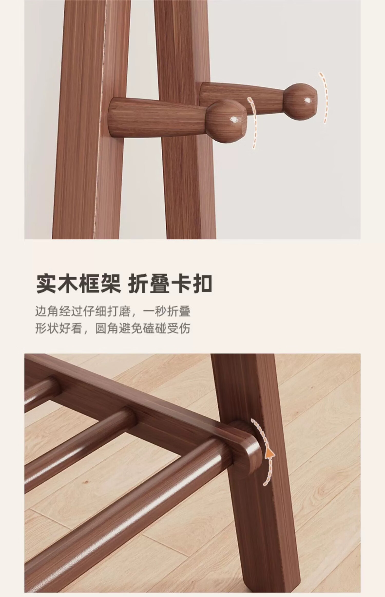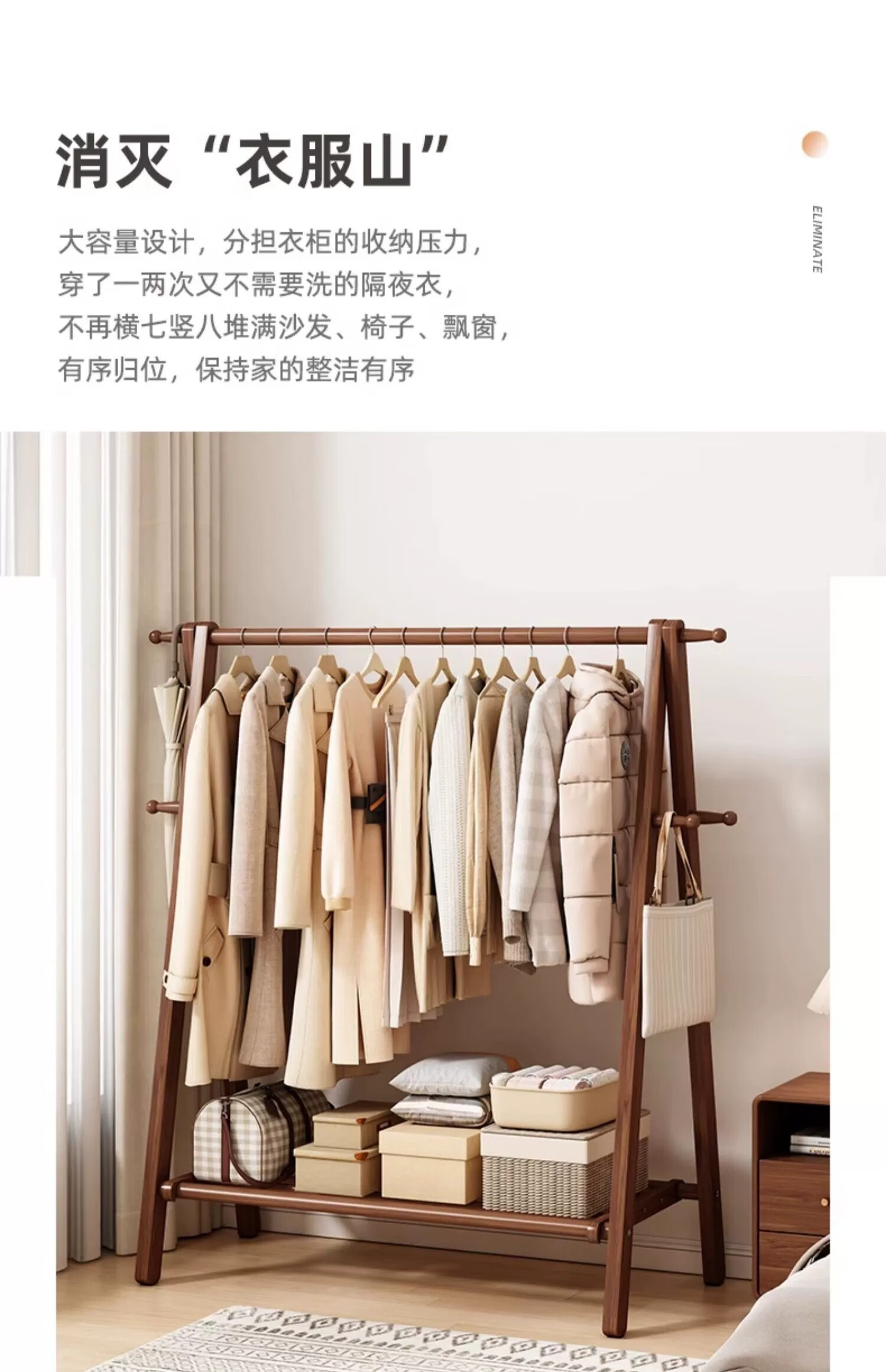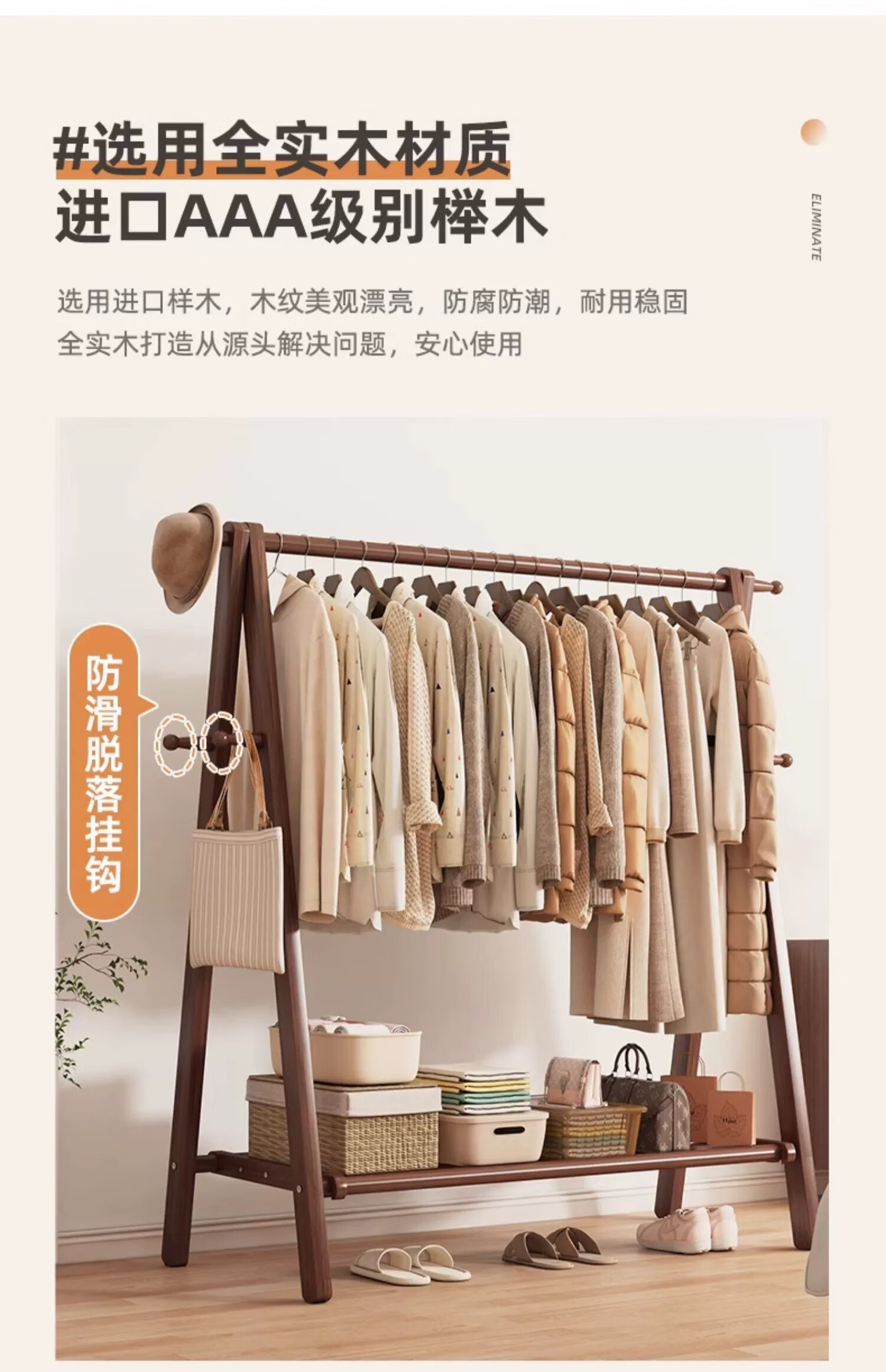 Zhuohe solid wood clothes hanger floor-standing clothes hanger bedroom coat rack household clothes drying rack indoor clothes storage rack wooden bold imported solid wood walnut color 120cm
