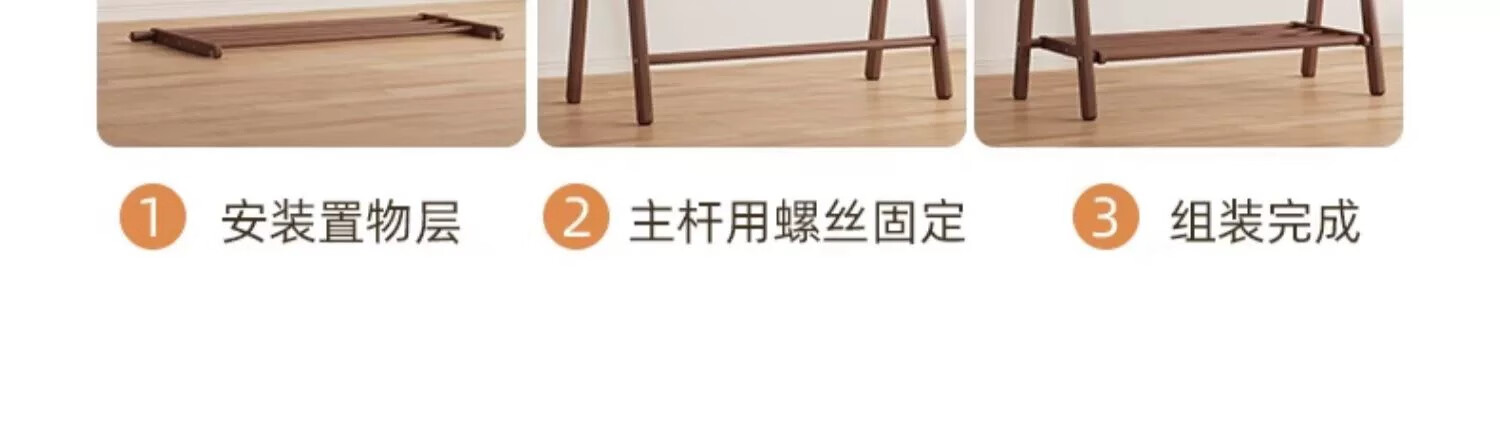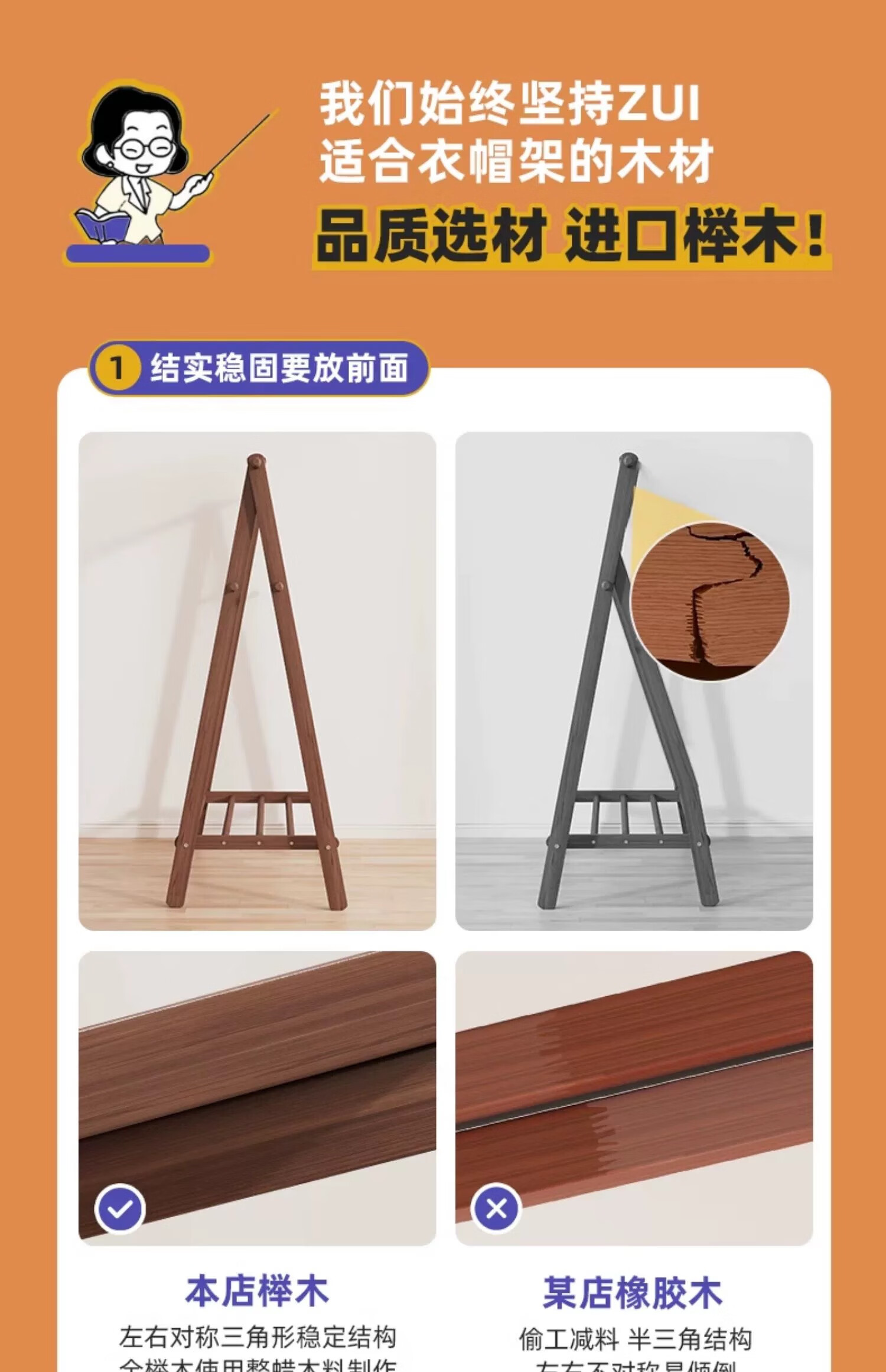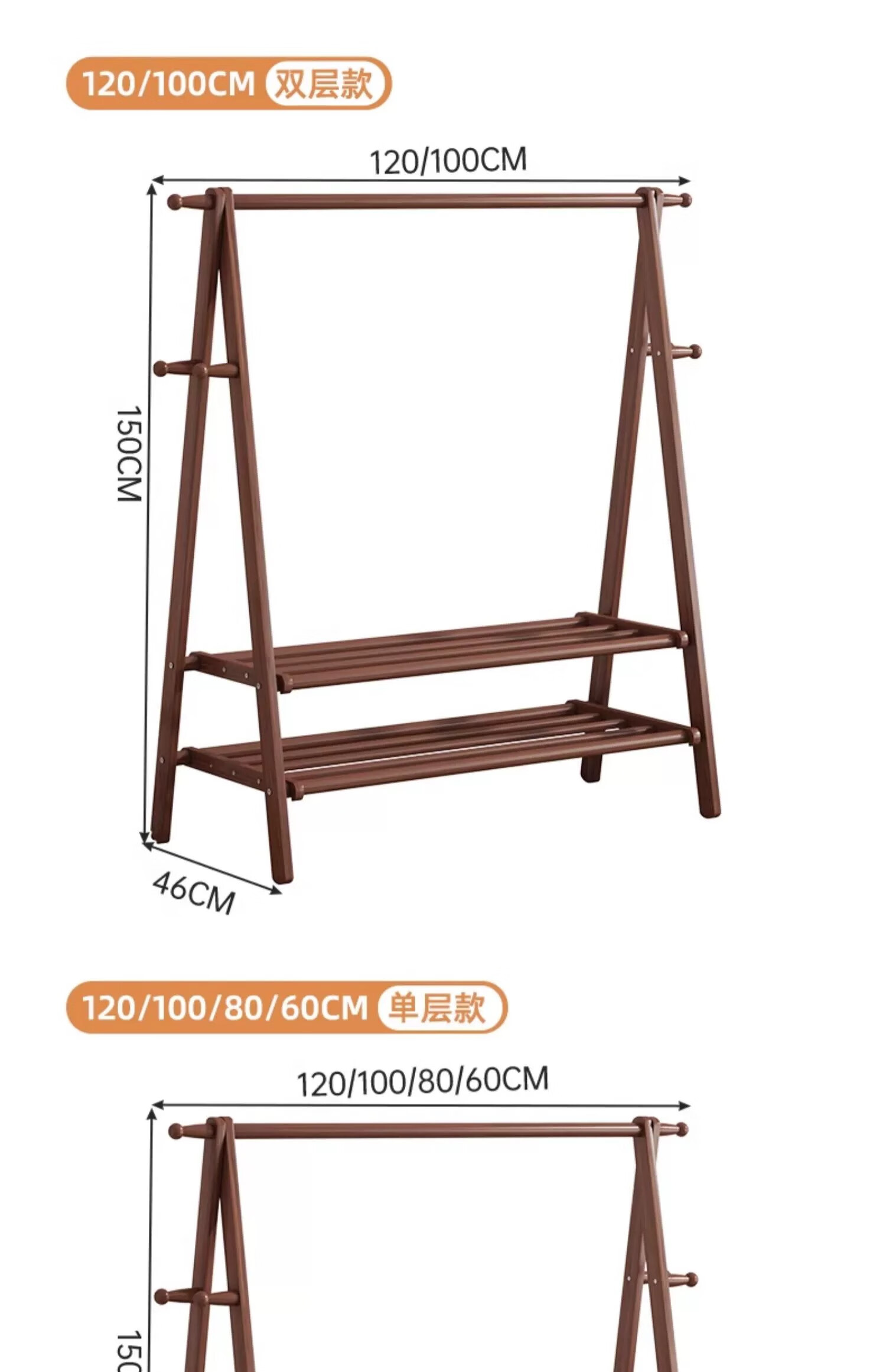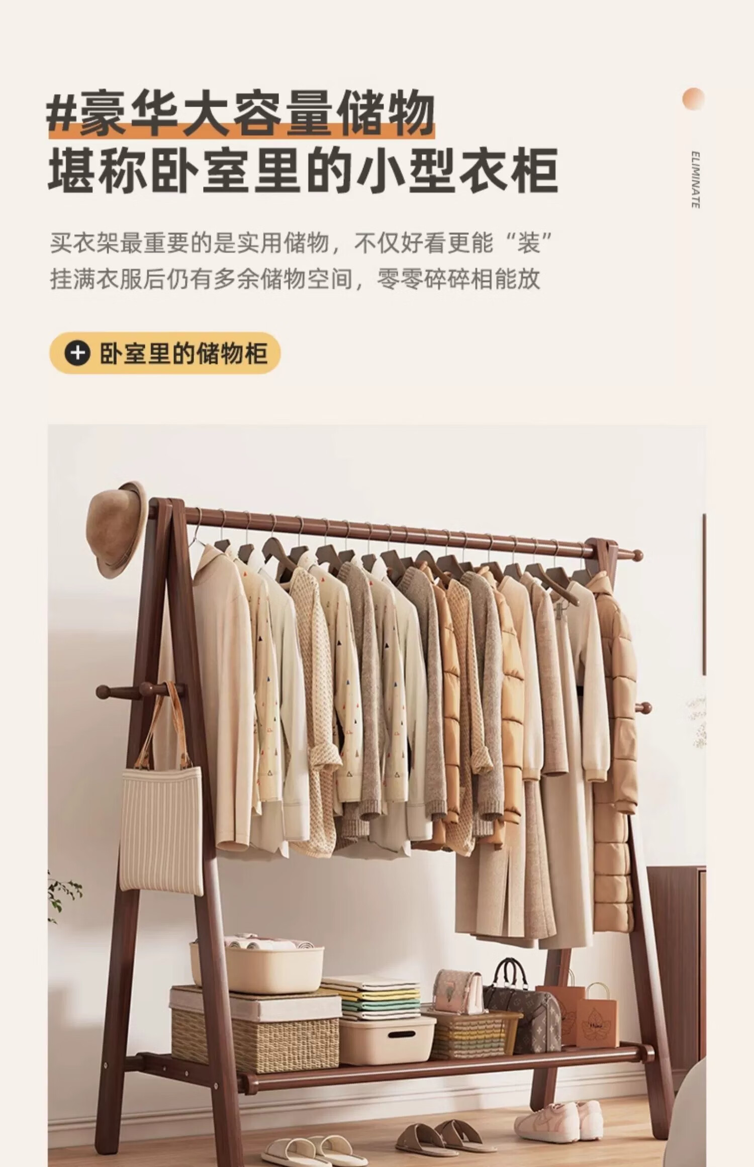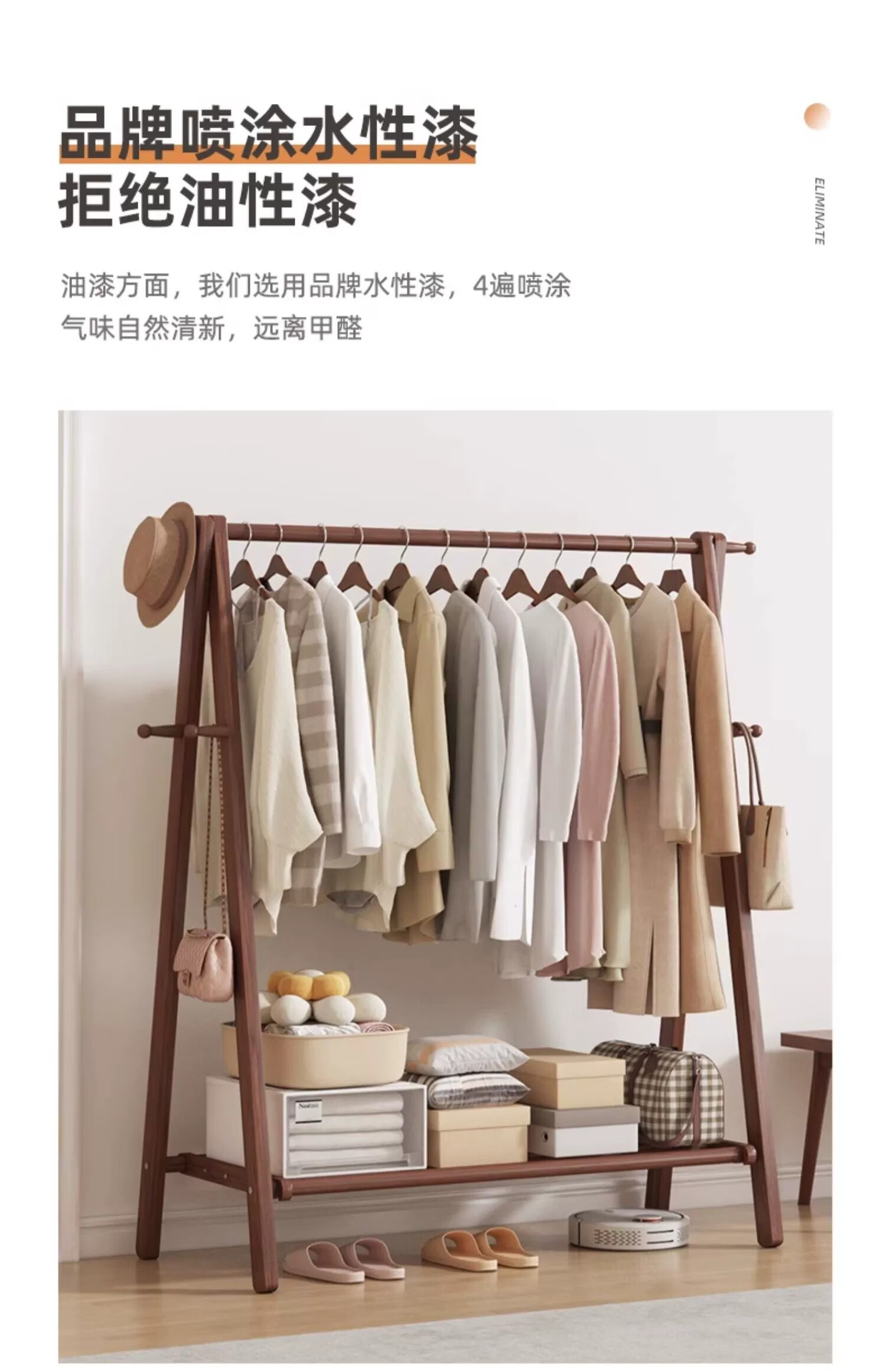 Zhuohe solid wood clothes hanger floor-standing clothes hanger bedroom coat rack household clothes drying rack indoor clothes storage rack wooden bold imported solid wood walnut color 120cm