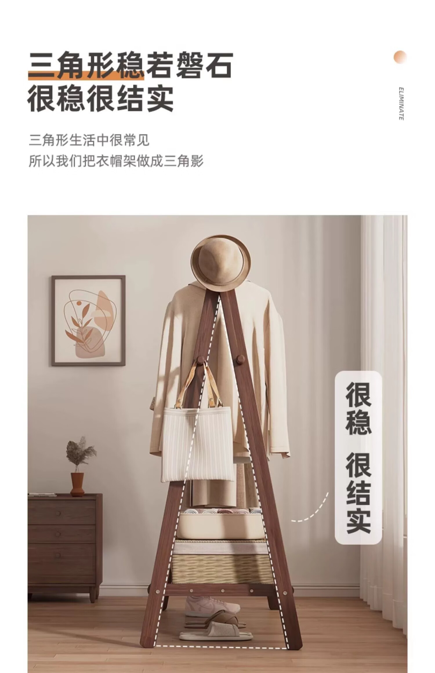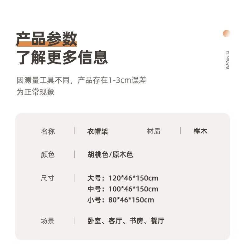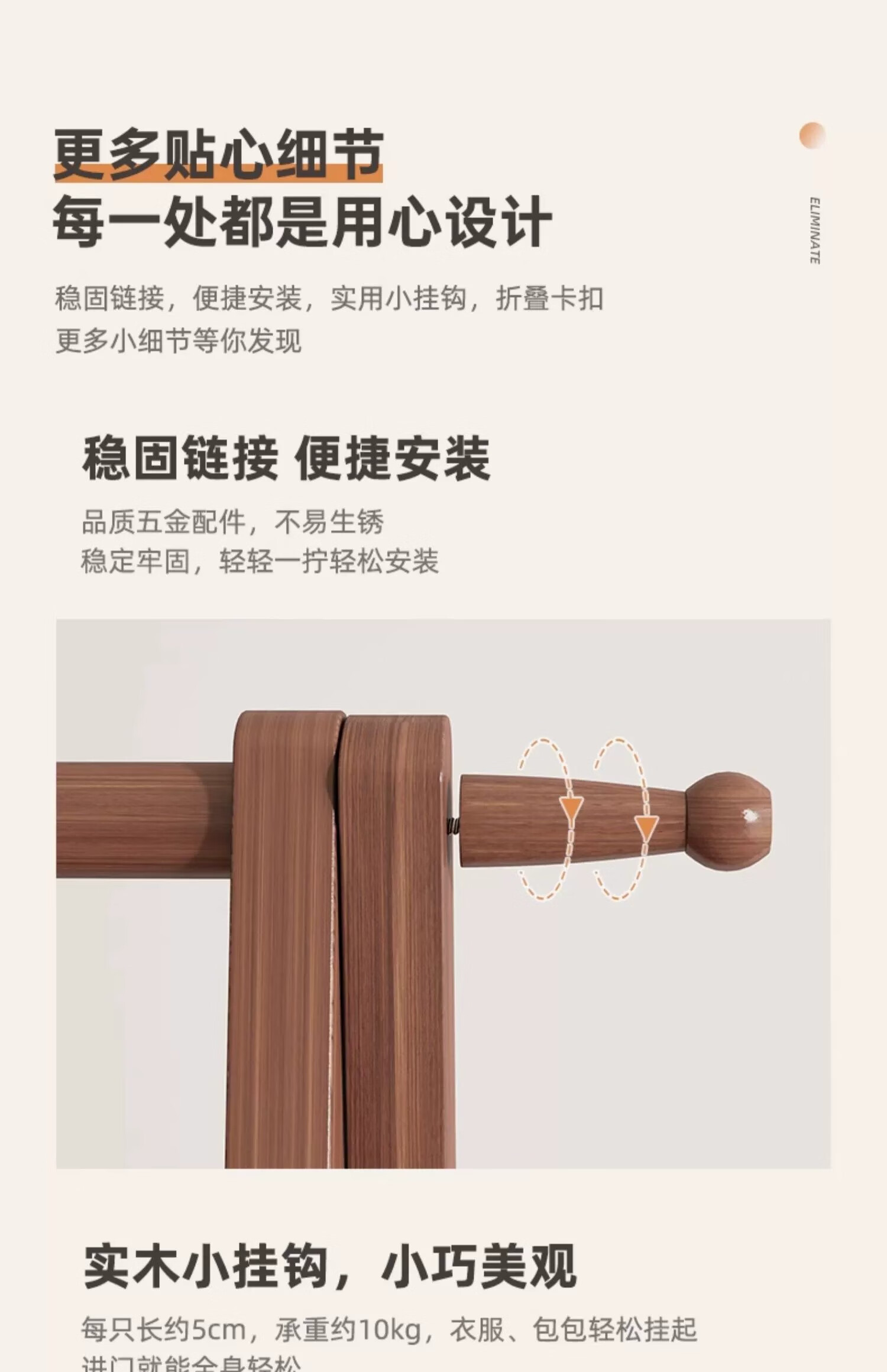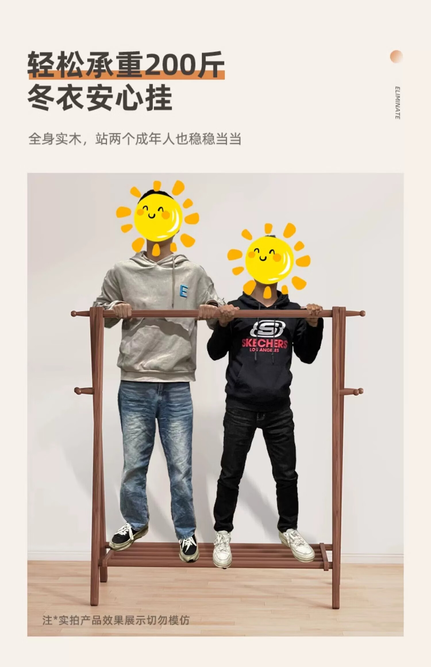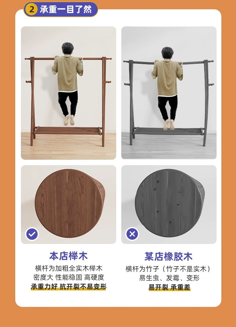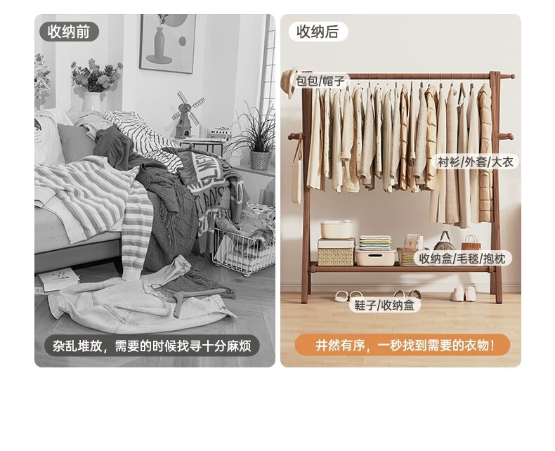 Zhuohe solid wood clothes hanger floor-standing clothes hanger bedroom coat rack household clothes drying rack indoor clothes storage rack wooden bold imported solid wood walnut color 120cm
